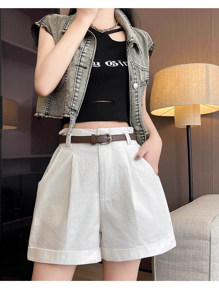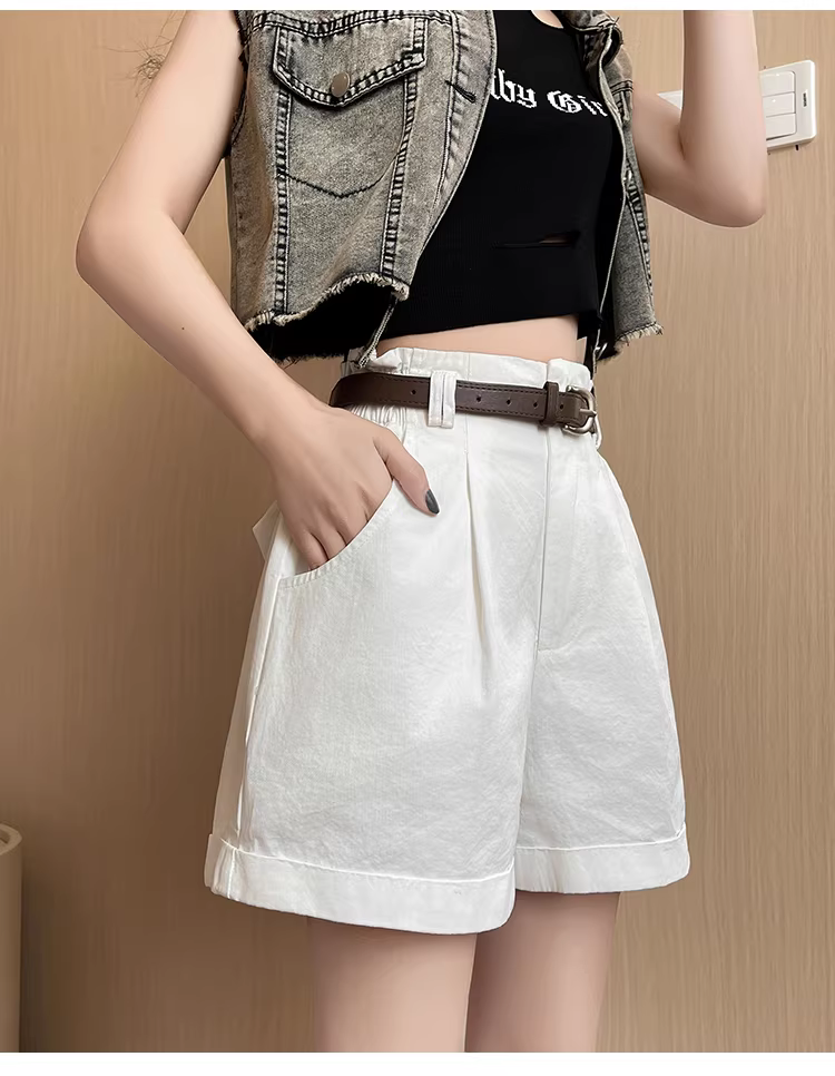 - Quần short nữ vạt xéo, quần kaki mùa hè, quần ống rộng cạp cao kiểu mới hot trend 2025, quần short thời trang cho các cô gái sành điệu.