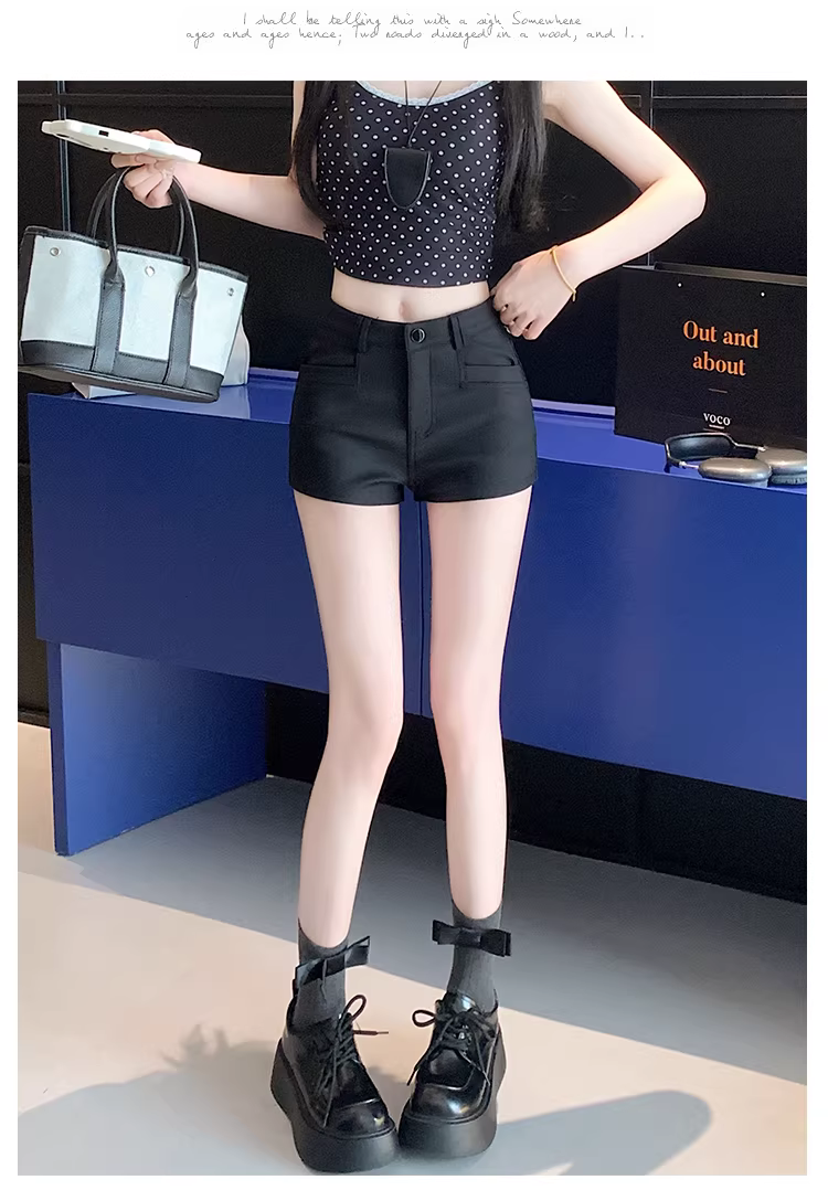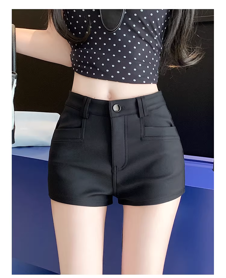 - Quần short siêu ngắn lưng thấp cho nữ, quần đen mùa hè, quần nữ sành điệu, quần bó sát, quần ôm hông gợi cảm