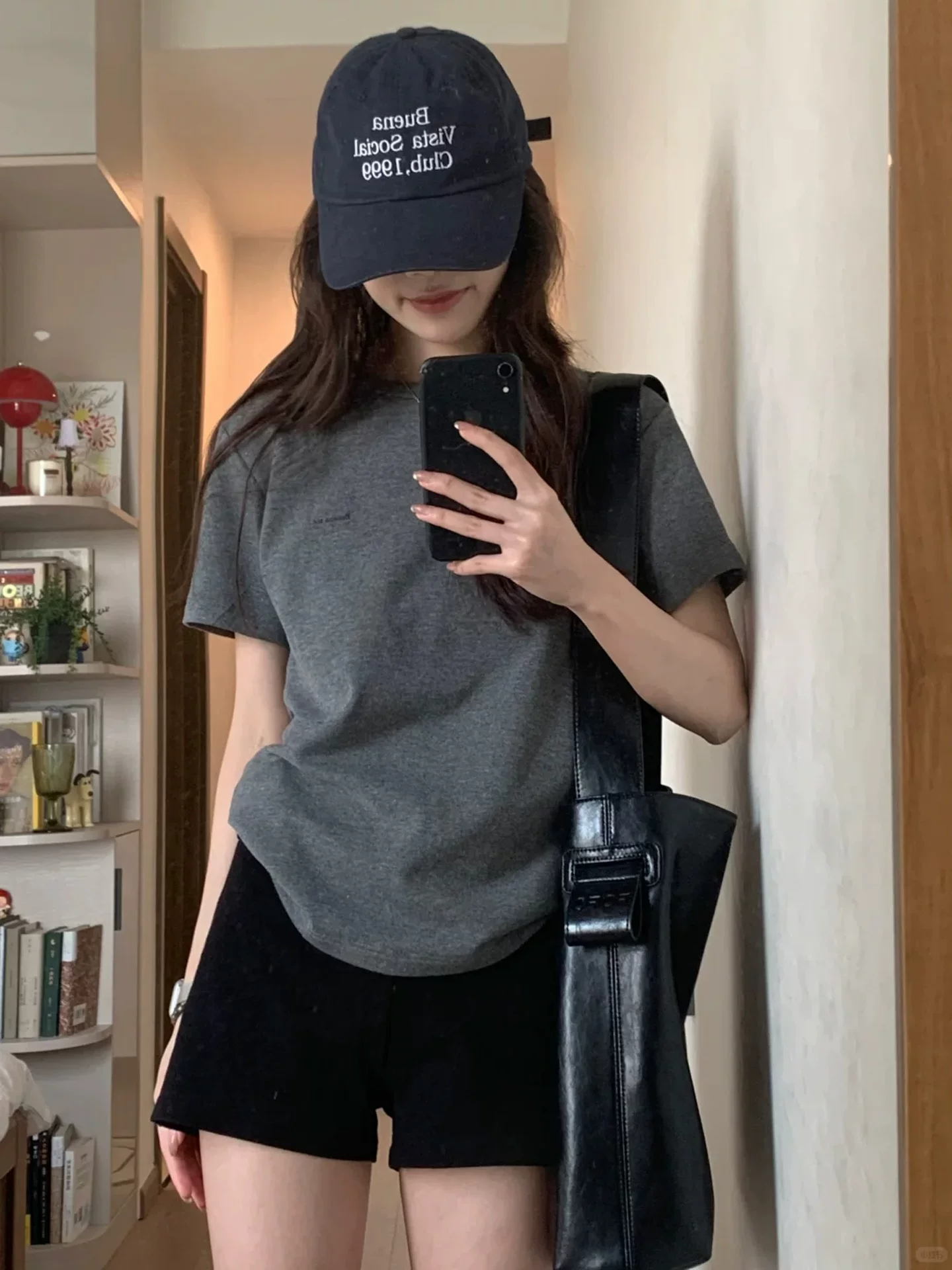 Quần short thể thao màu đen dành cho nữ, cỡ lớn mùa hè, lưng cao, co giãn, che hông, quần chữ A giảm béo.