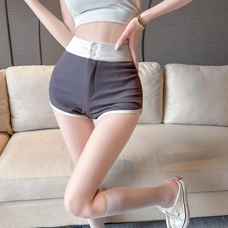 Quần short thể thao màu trắng dành cho nữ, quần yoga bó sát lưng cao mới mùa hè 2025, thiếu lớp lót, quần siêu ngắn.