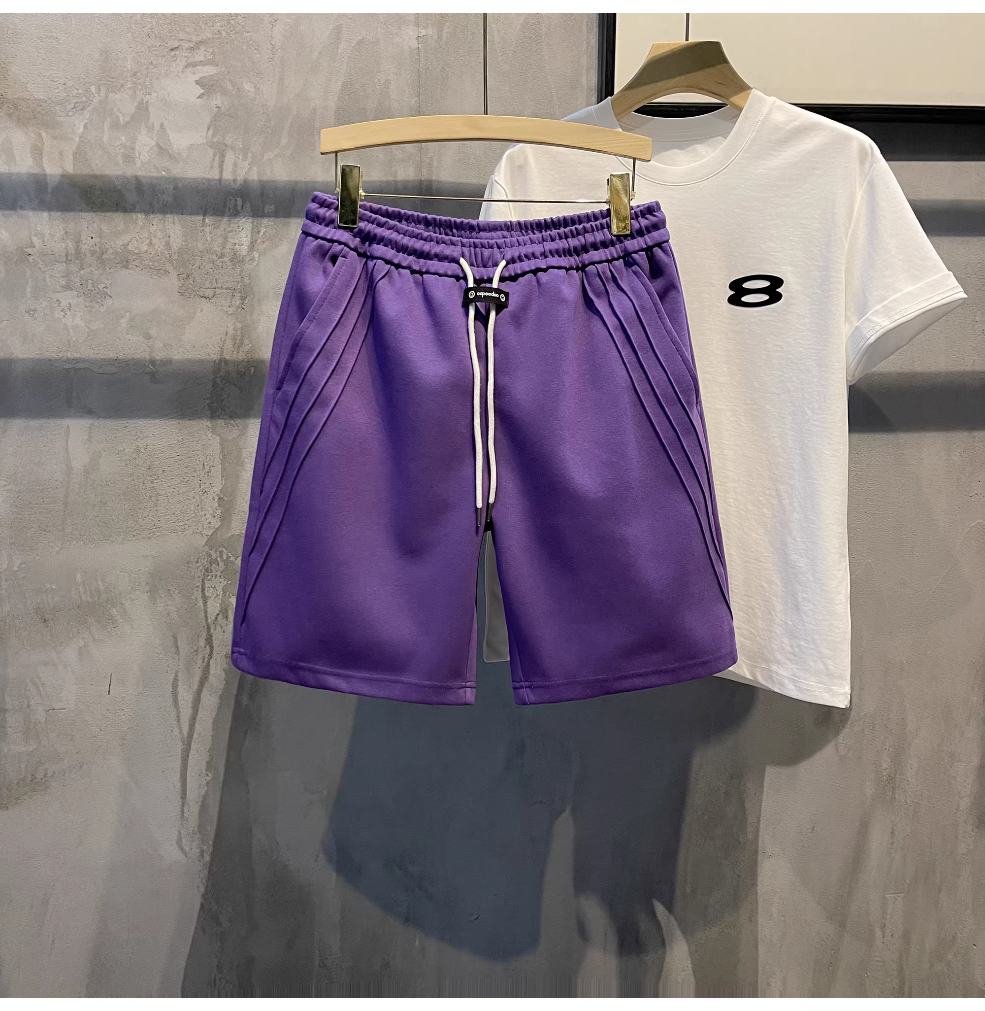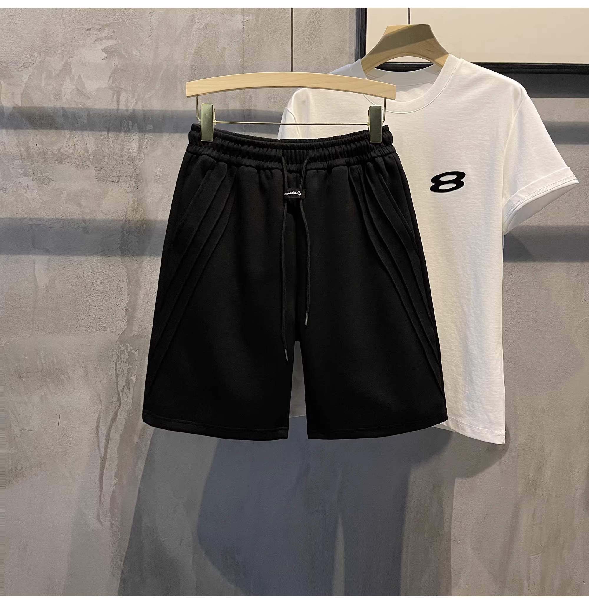 Quần short thường ngày có dây rút hợp thời trang LUUD dành cho nam, quần ống rộng kiểu cổ điển kiểu Mỹ với thiết kế đường xẻ, quần short mùa hè dài vừa phải