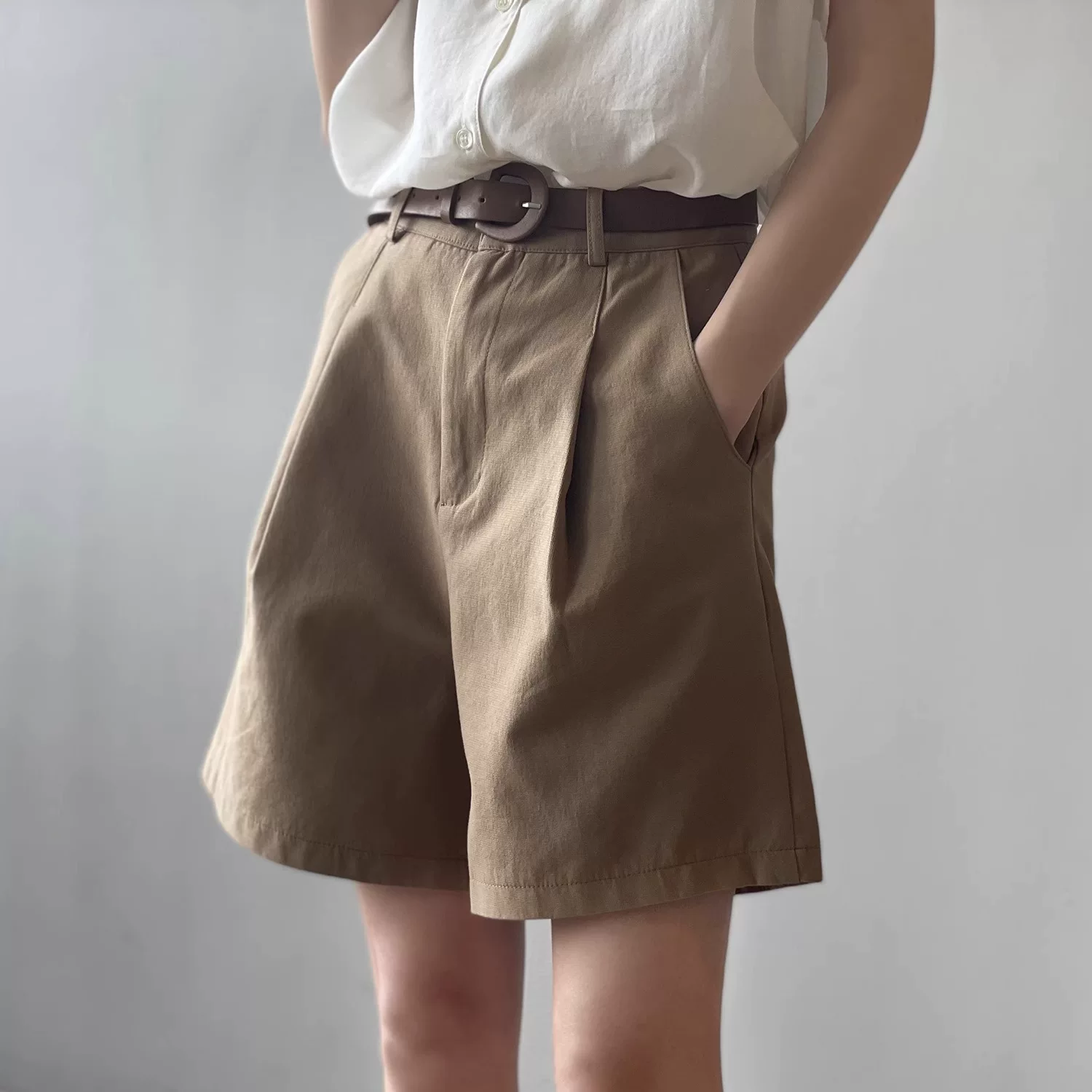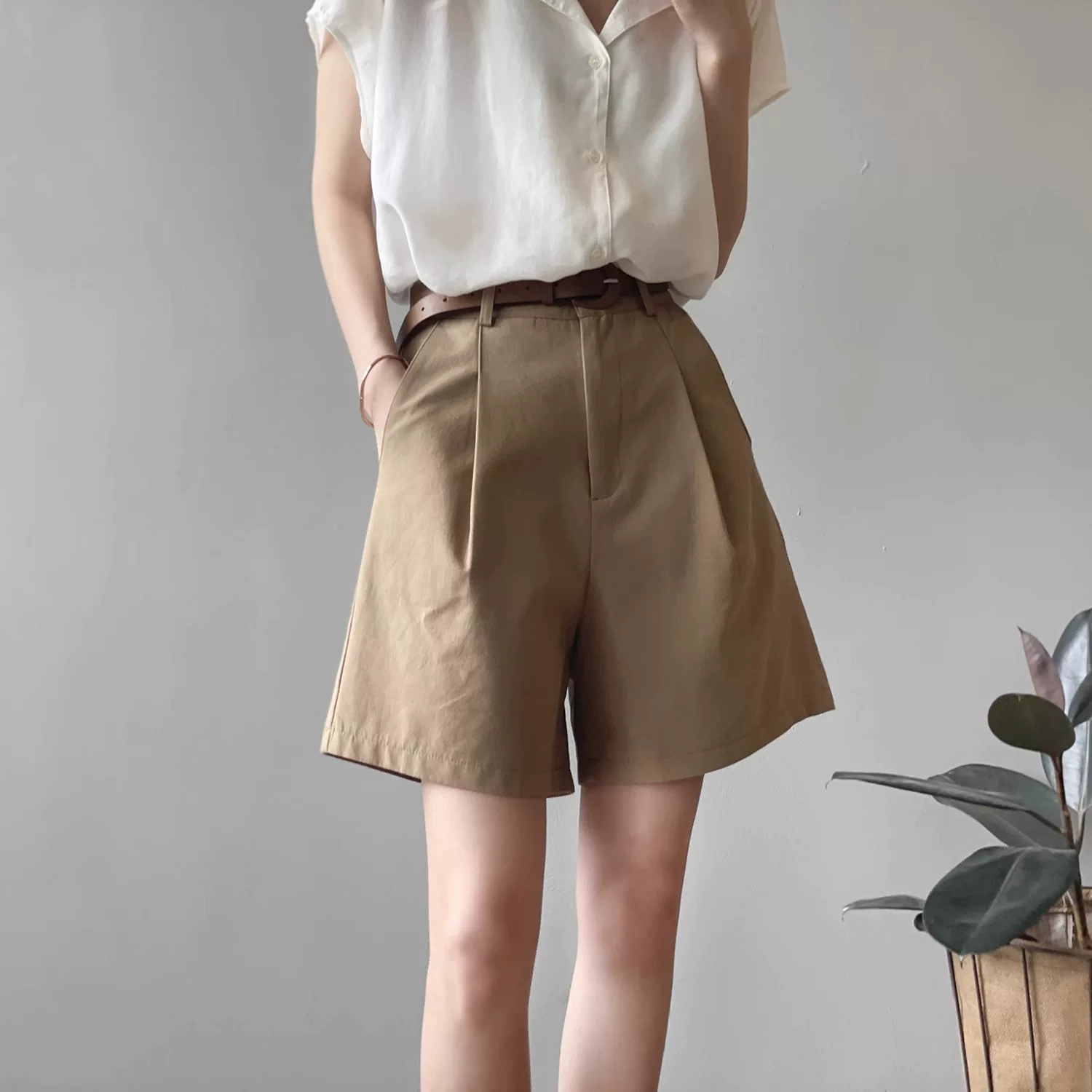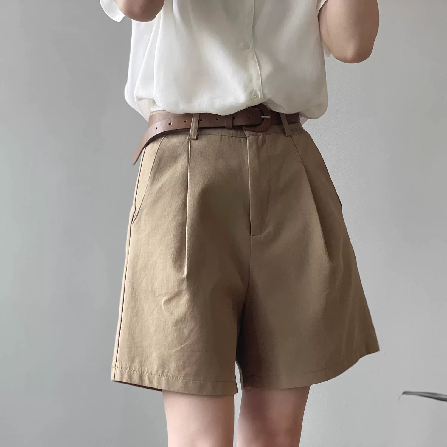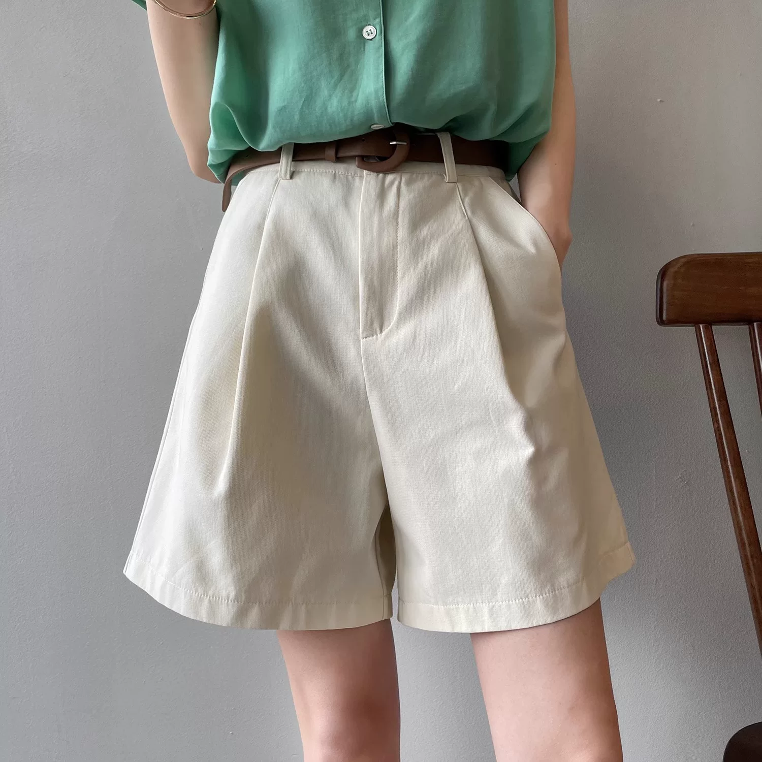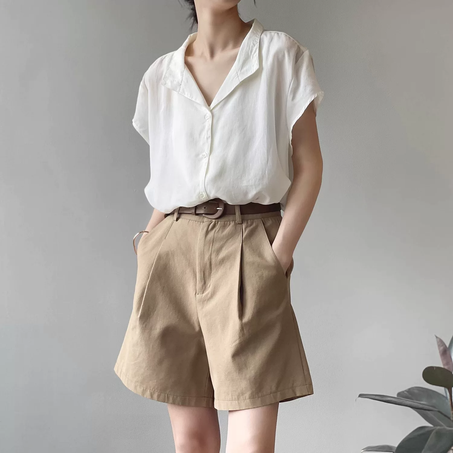 Quần short trắng thường ngày dành cho nữ, cỡ lớn mùa hè, cạp cao, tôn dáng, quần năm điểm, dáng quả lê, quần dài vừa phải dáng chữ A ống rộng.