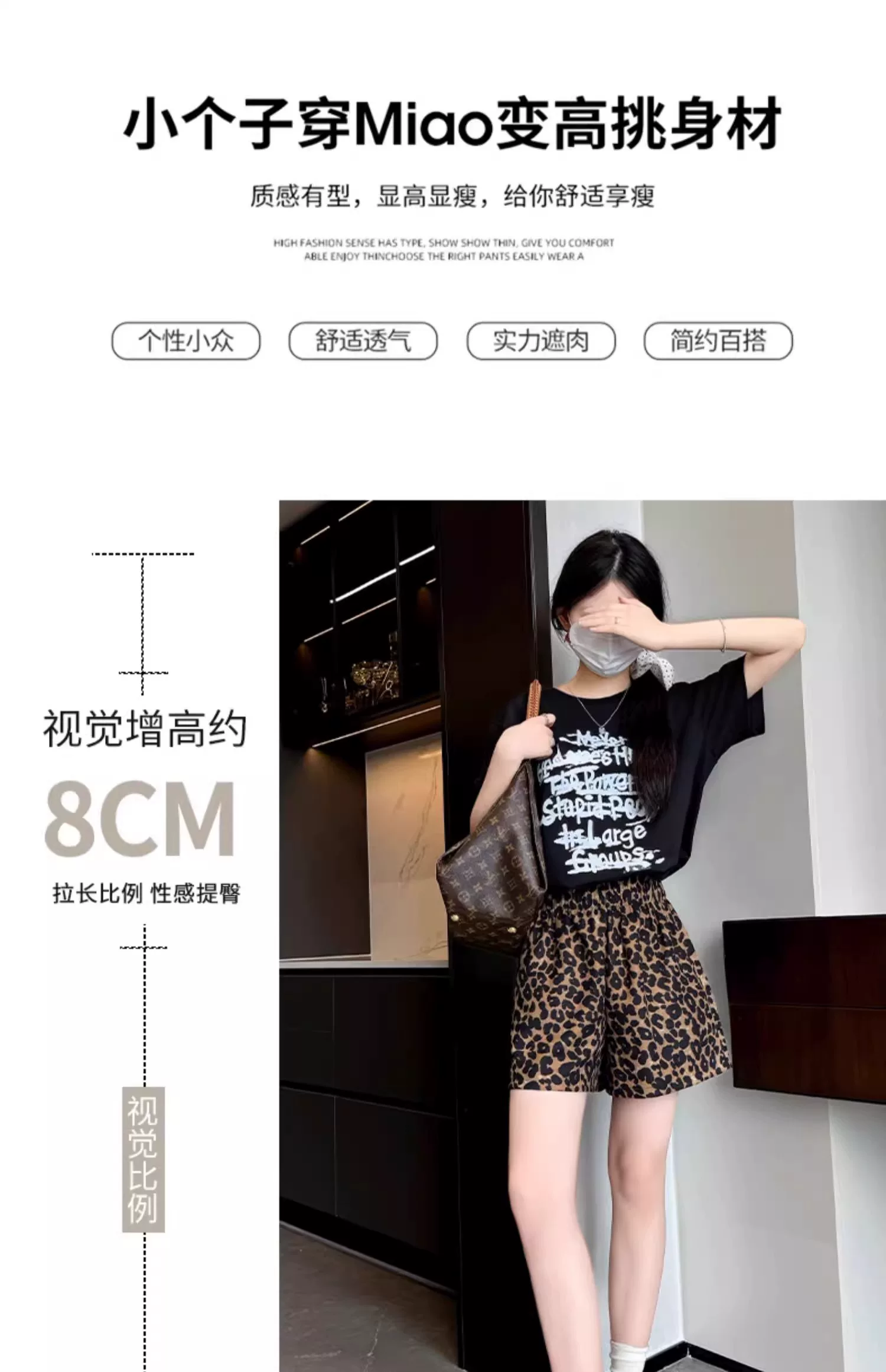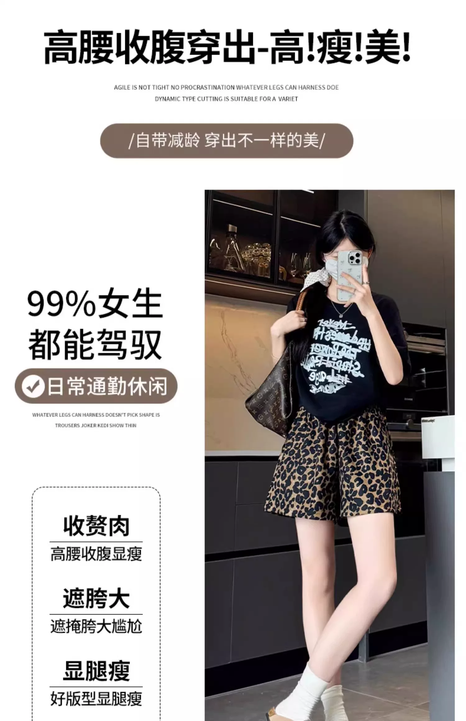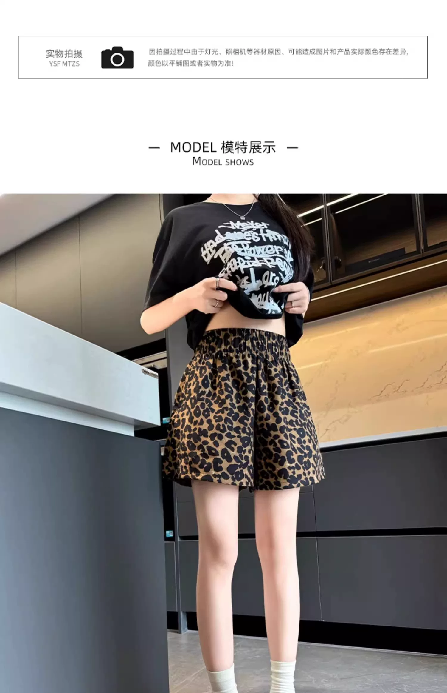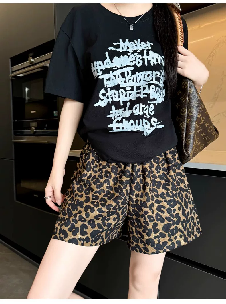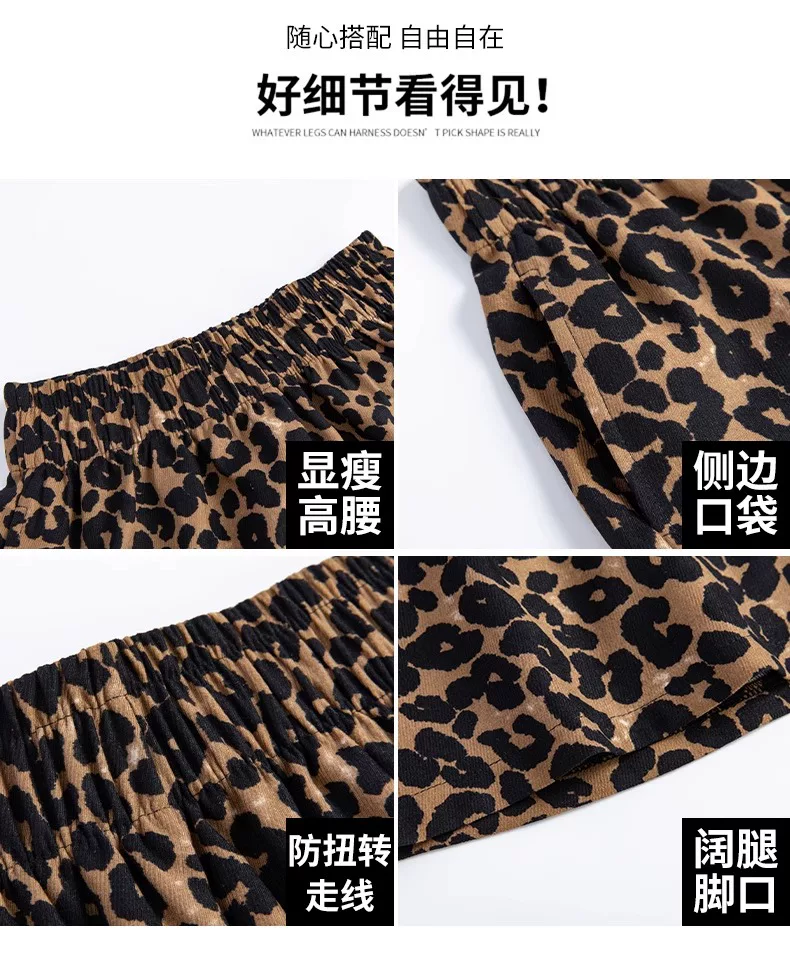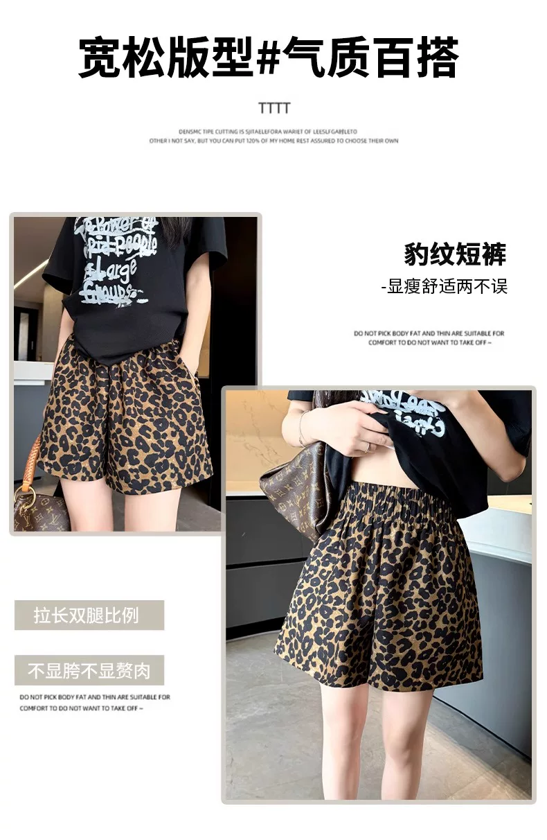 - Quần short vải lụa in họa tiết da báo dành cho nữ, kiểu dáng mỏng mùa hè, cỡ lớn, lưng cao, dáng rộng, quần thể thao dáng chữ A dáng rộng, quần ống rộng.