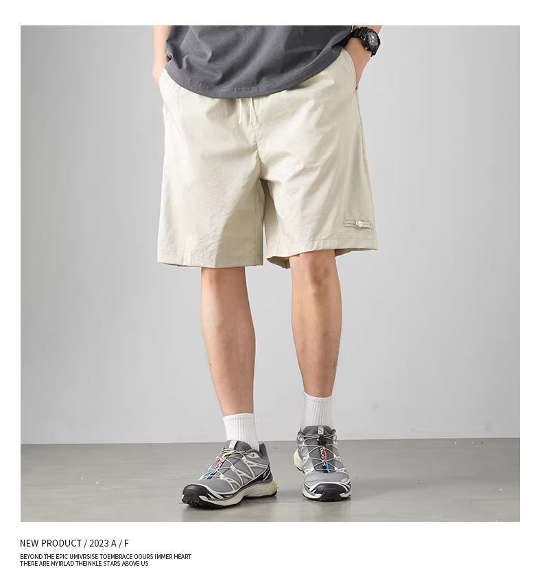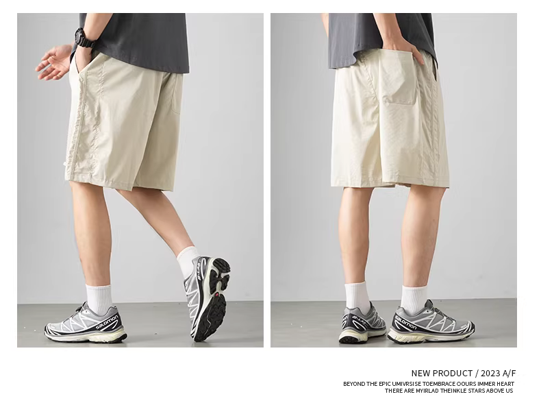 - Quần short vải lụa kiểu Trung Quốc mới dành cho nam, quần thể thao dài vừa phải, mỏng, nhanh khô, mùa hè, dáng thẳng, rộng rãi, cao cấp, kiểu năm điểm.