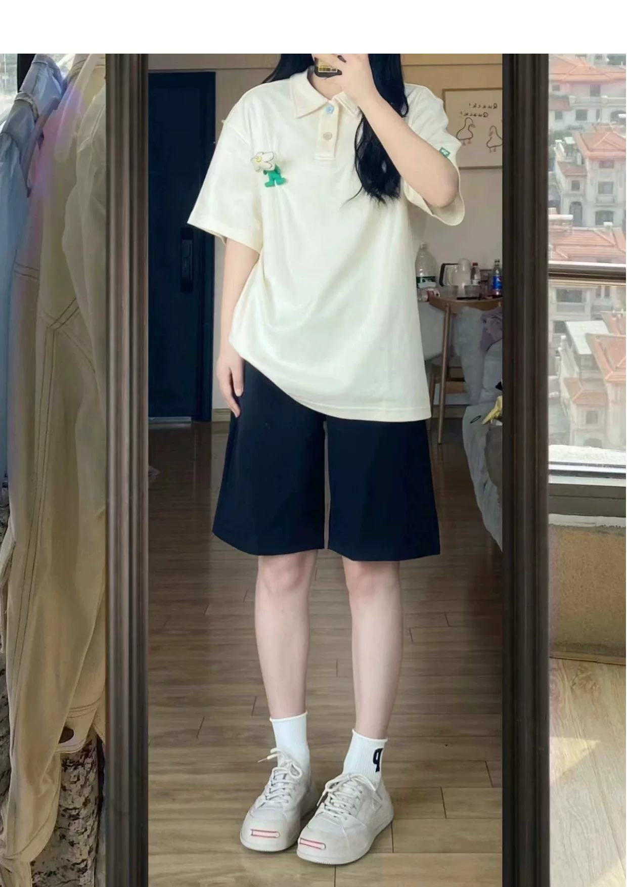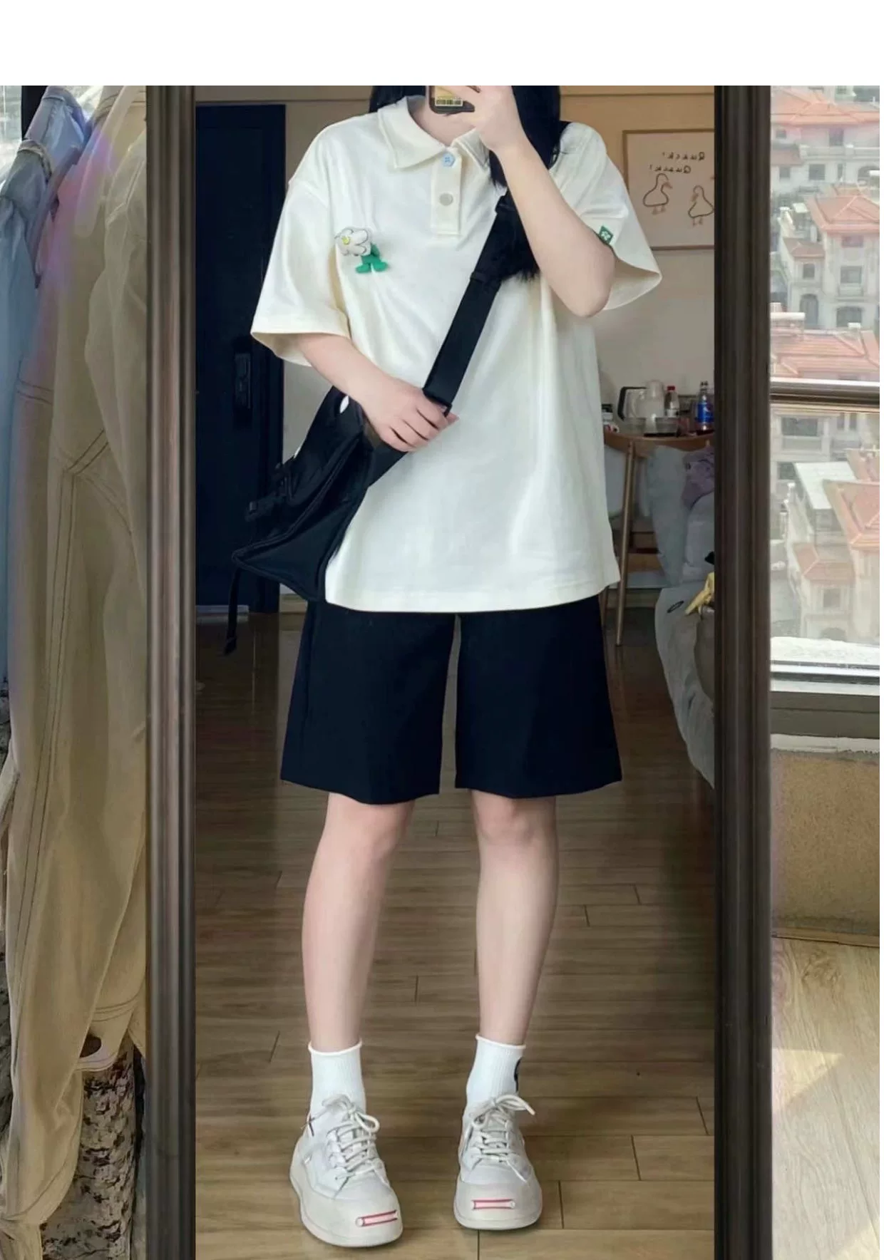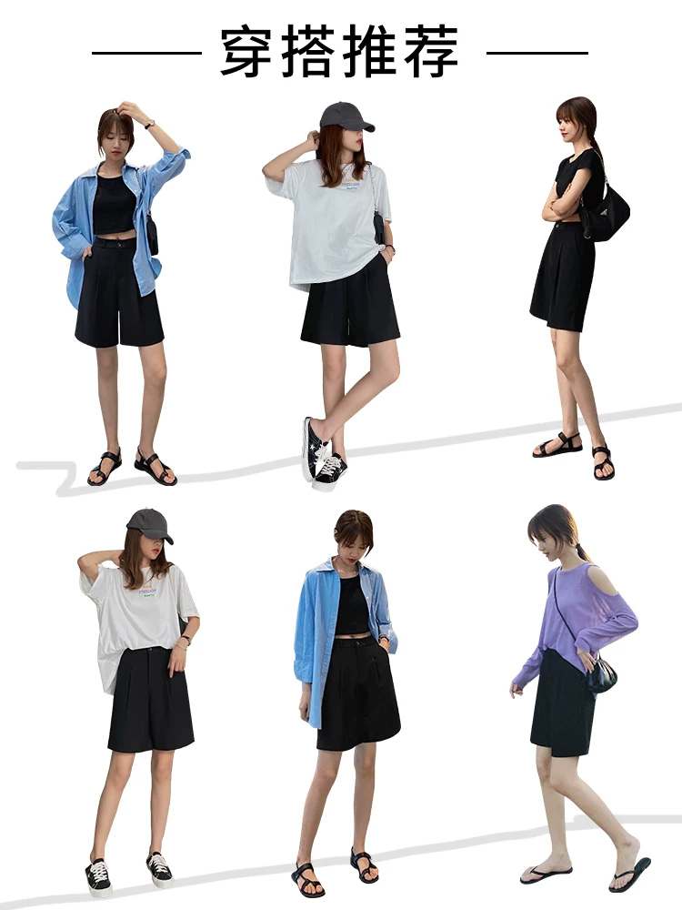 - Quần short vest đen dáng quả lê, cạp cao dành cho nữ, kiểu dáng mỏng mùa hè, size lớn, che hông, tôn dáng, quần short ống rộng