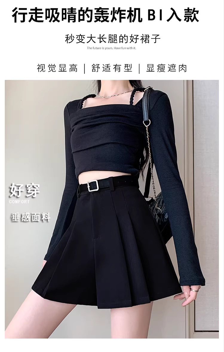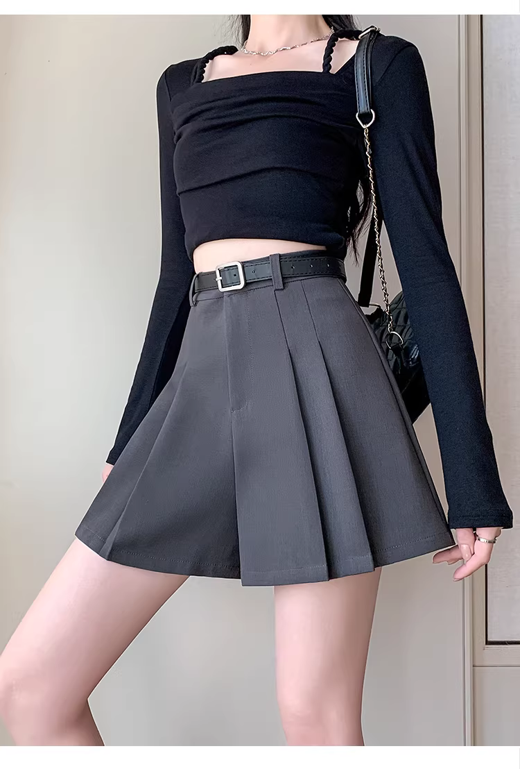 - Quần short vest màu xám dành cho nữ, phổ biến trong năm nay vào mùa xuân, mùa thu và mùa hè, quần váy xếp ly hai trong một, quần short bốt hot girl.