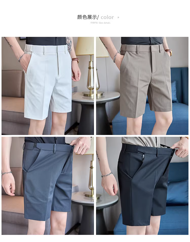 Quần short vest nam co giãn, kiểu dáng mỏng nhẹ mùa hè, thời trang và đa năng, chống nhăn, chất liệu mềm mại, quần âu năm phần mặc thường ngày
