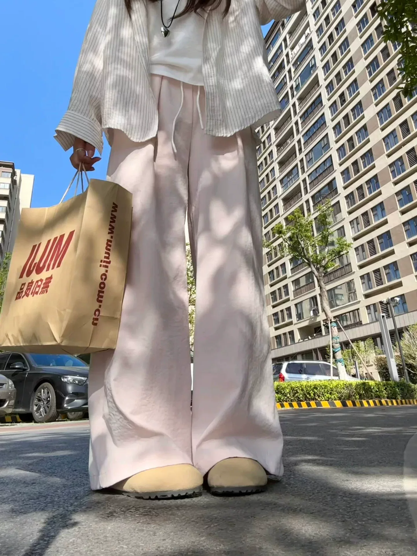 - Quần suông màu hồng nữ mùa hè 2025 chất liệu mỏng, size lớn, cạp cao, dáng rộng, tôn dáng, chất liệu mát mẻ