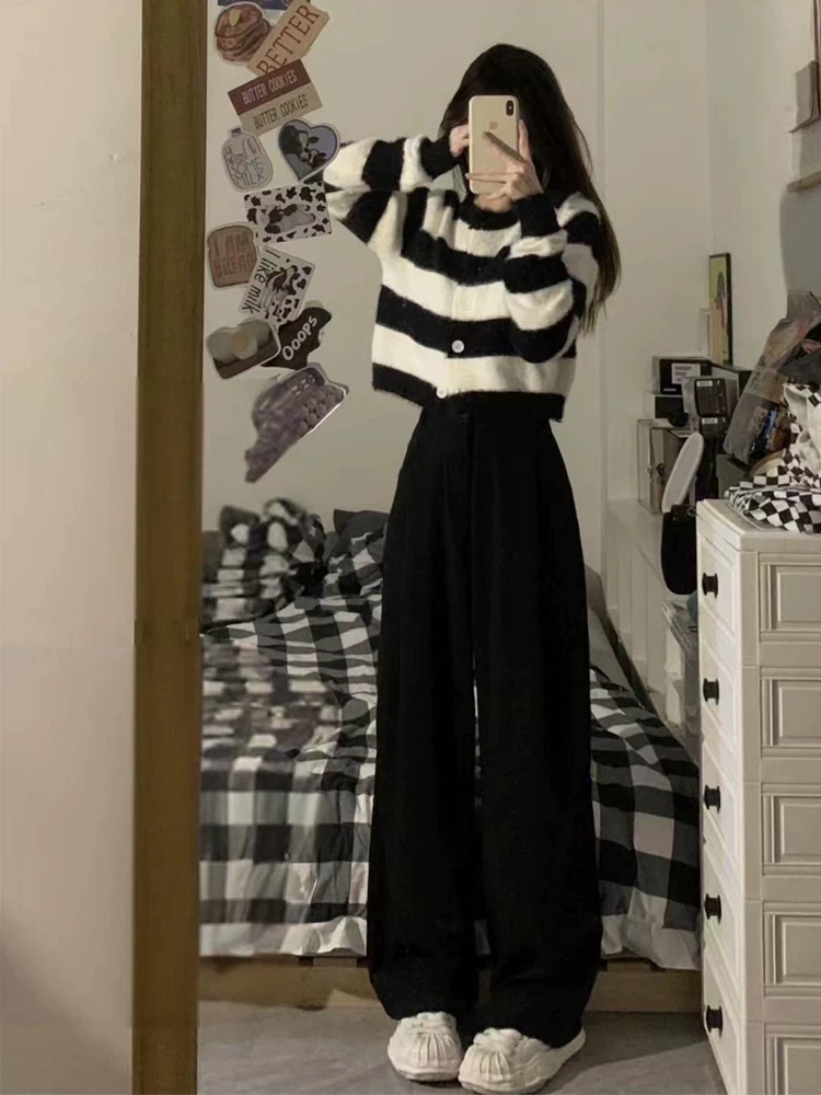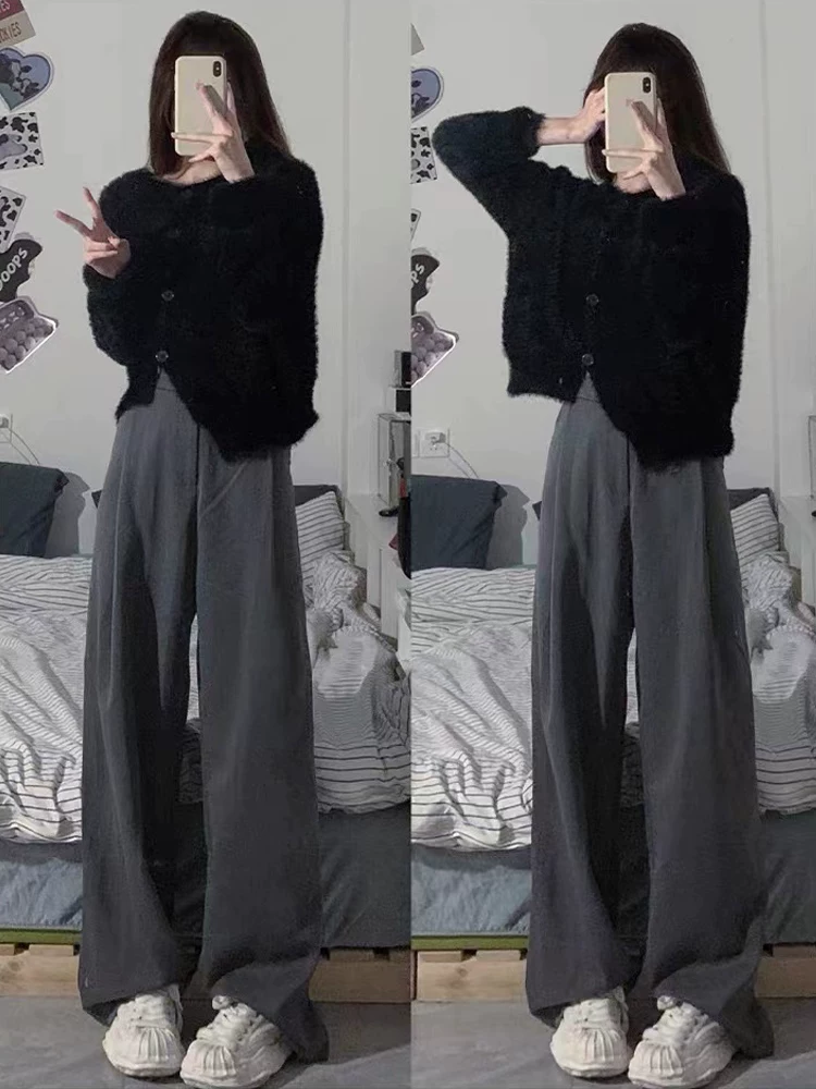 - Quần tây đen nữ, kiểu thu mới, size lớn, cạp cao, dáng suôn, tôn dáng, quần thường ngày, dáng quả lê, quần ống rộng.
