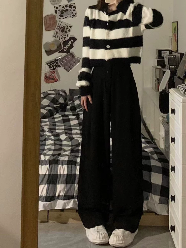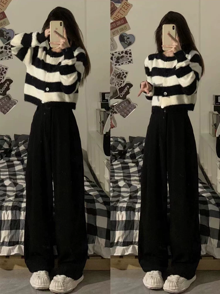 Quần tây đen nữ, kiểu thu mới, size lớn, cạp cao, dáng suôn, tôn dáng, quần thường ngày, dáng quả lê, quần ống rộng.