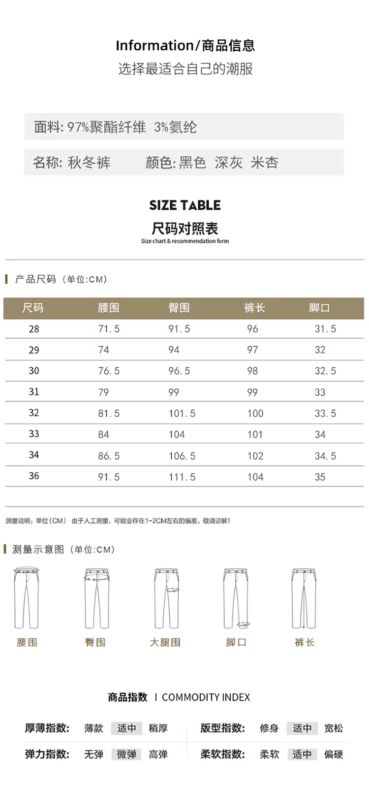 - Quần tây nam cao cấp mùa thu đông, kiểu Hàn Quốc dày dặn, thời trang và đa năng, dáng ôm thẳng lịch lãm.