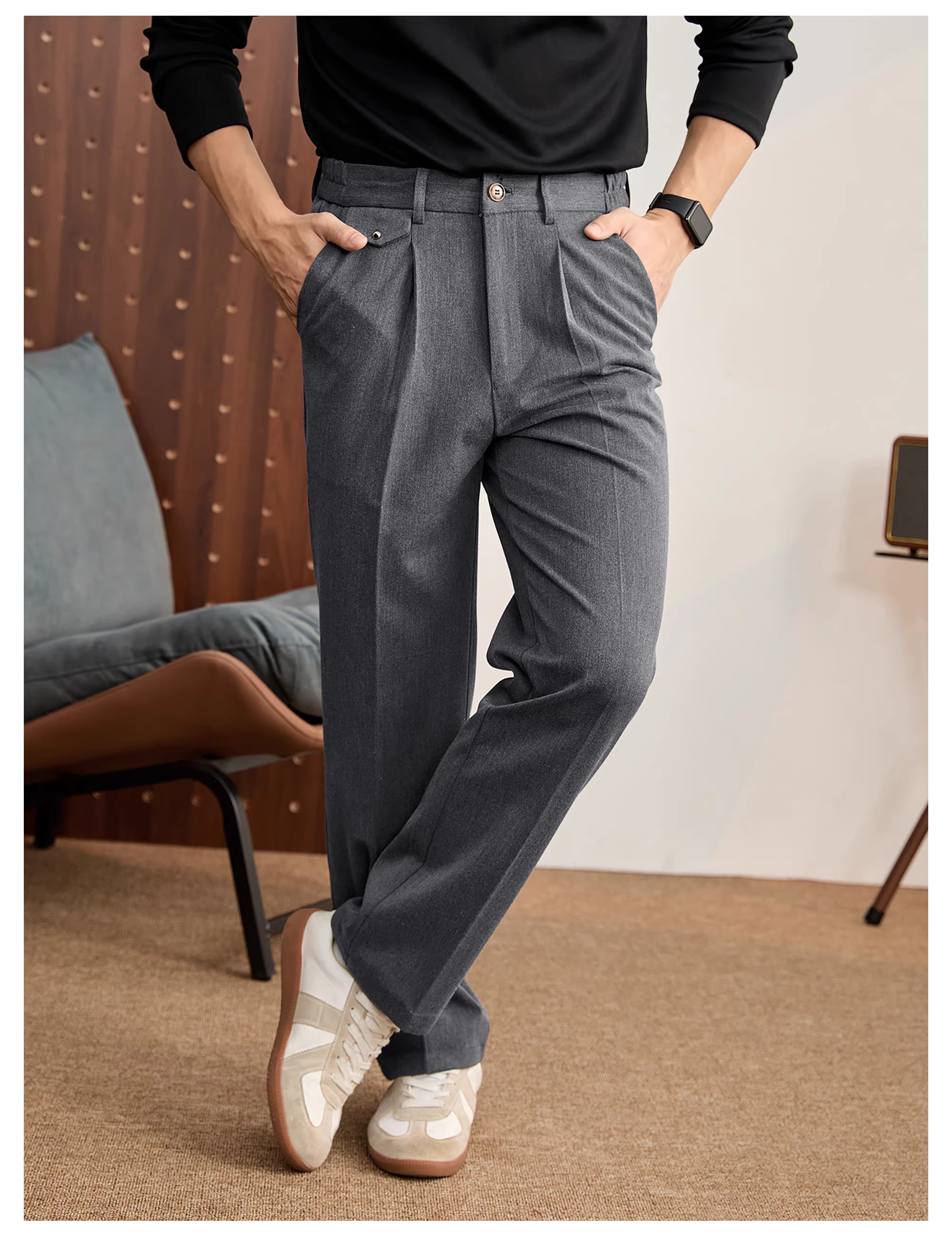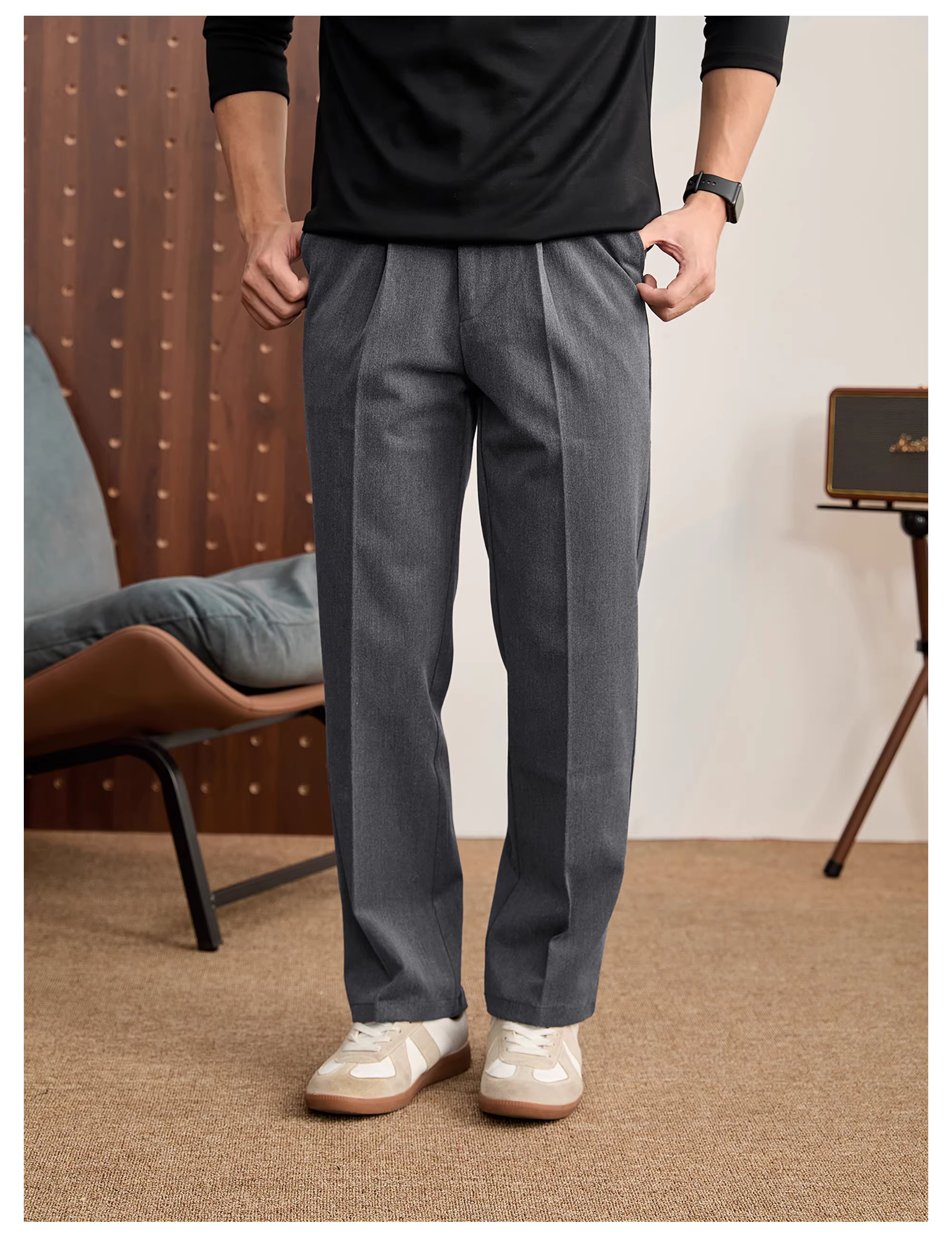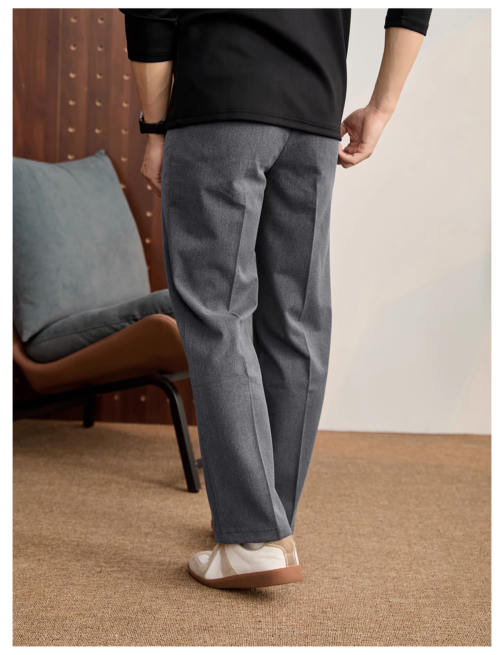 Quần tây nam dáng thẳng chất liệu vải bố may thủ công, kiểu dáng lịch lãm, thích hợp đi làm trong mùa thu đông.
