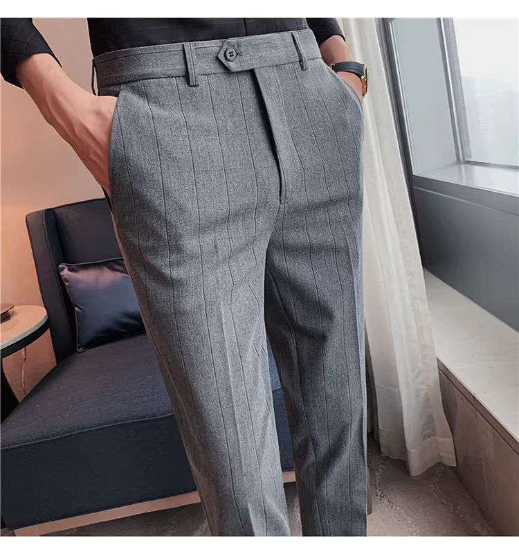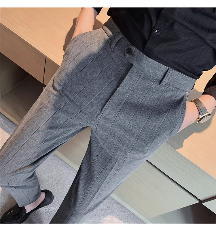 - Quần tây nam kẻ sọc mùa thu đông, kiểu dáng Hàn Quốc dày dặn ôm dáng, kiểu dáng công sở không nhăn, quần dài phong cách Anh quốc