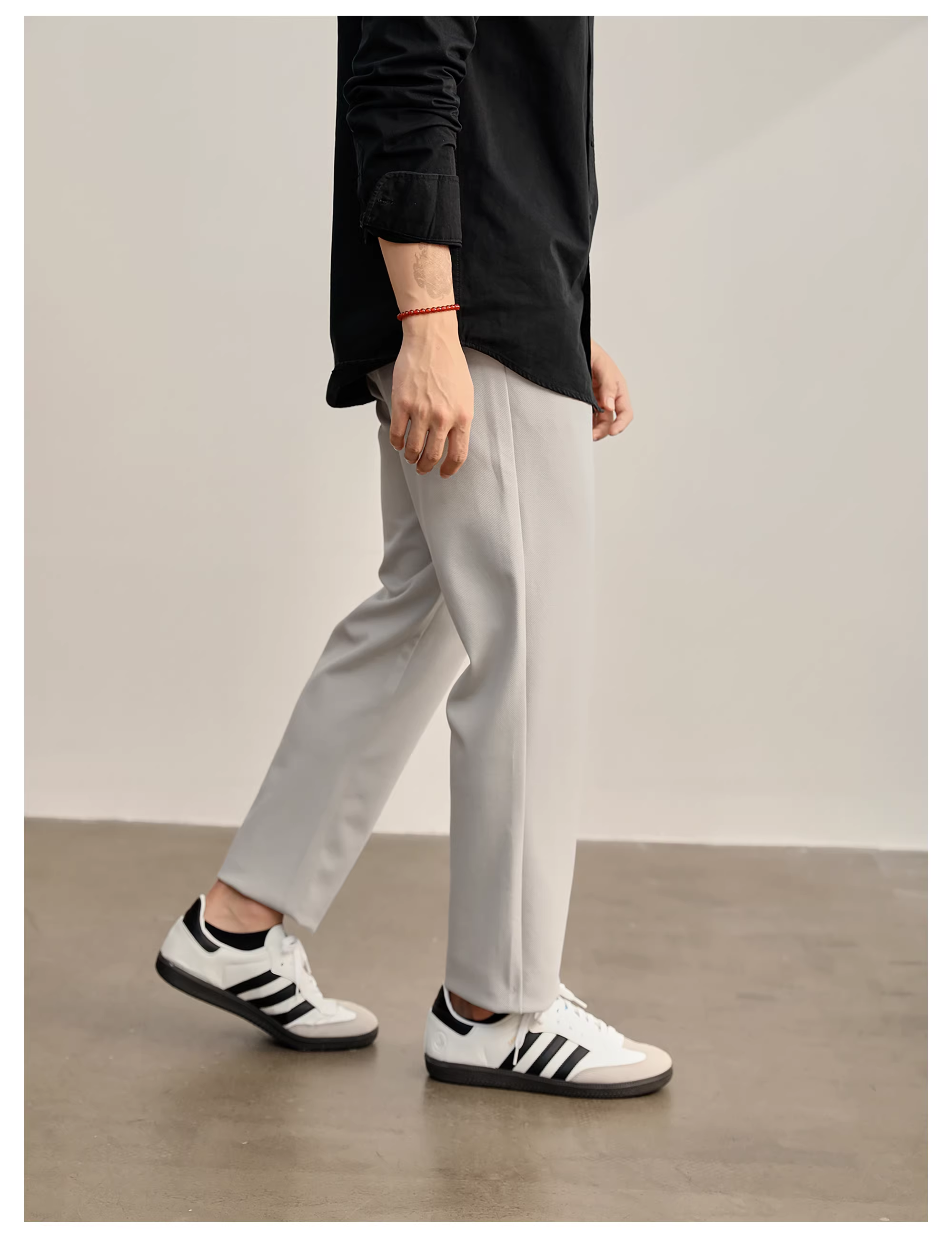 Quần tây nam lưng thun bán co giãn phong cách Hàn Quốc cao cấp LUUD, quần tây ống đứng cotton phối khóa thắt lưng mùa thu