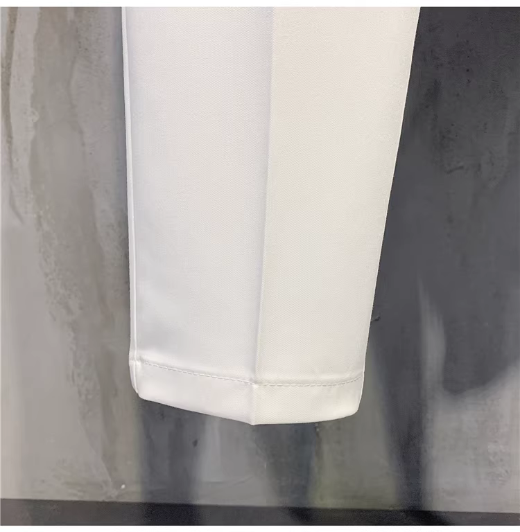 - Quần tây nam LUUD màu trắng, lưng thun nửa phần, kiểu dáng ôm sát, phong cách quý ông Anh, dáng thẳng, ống lửng.