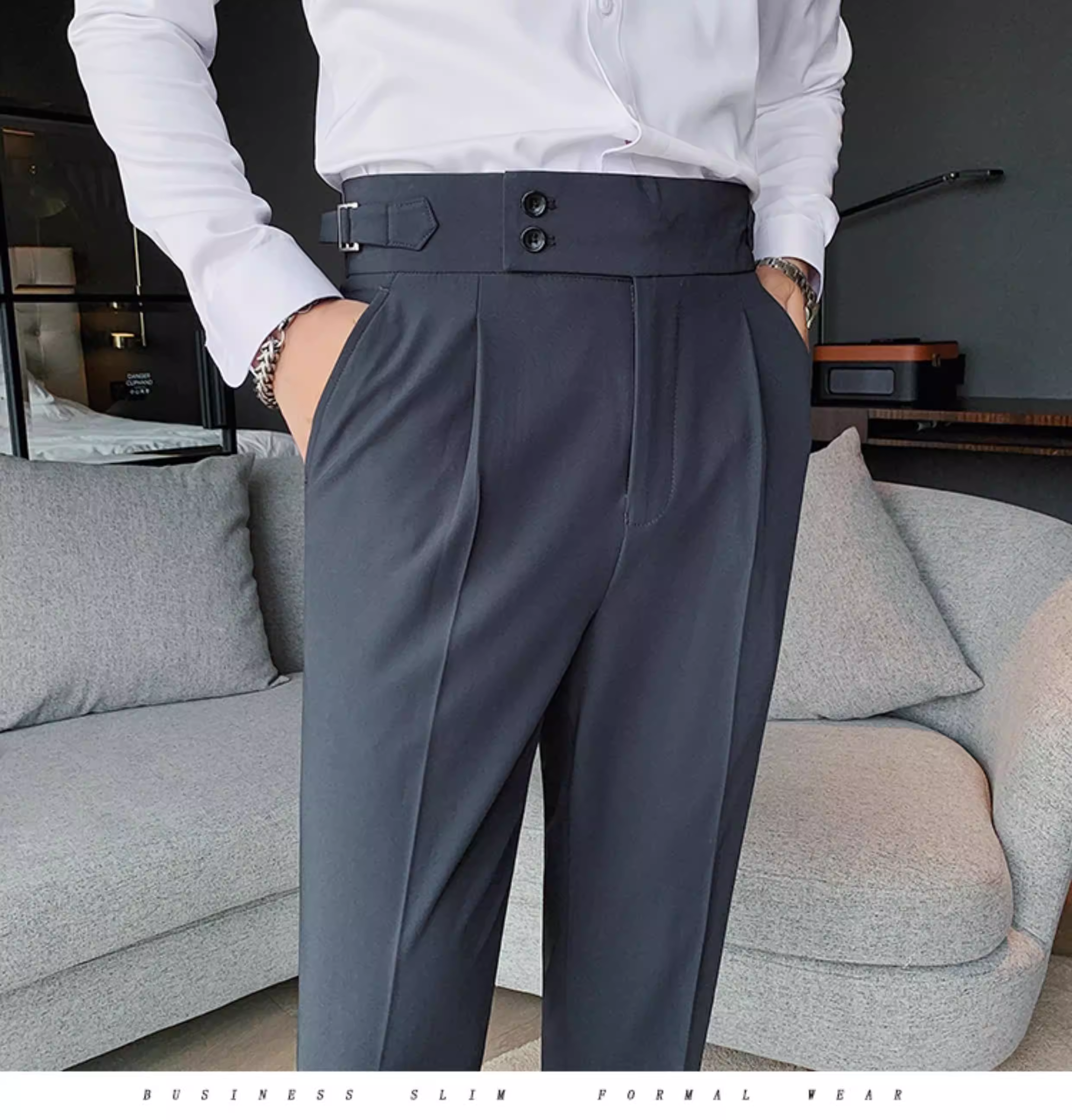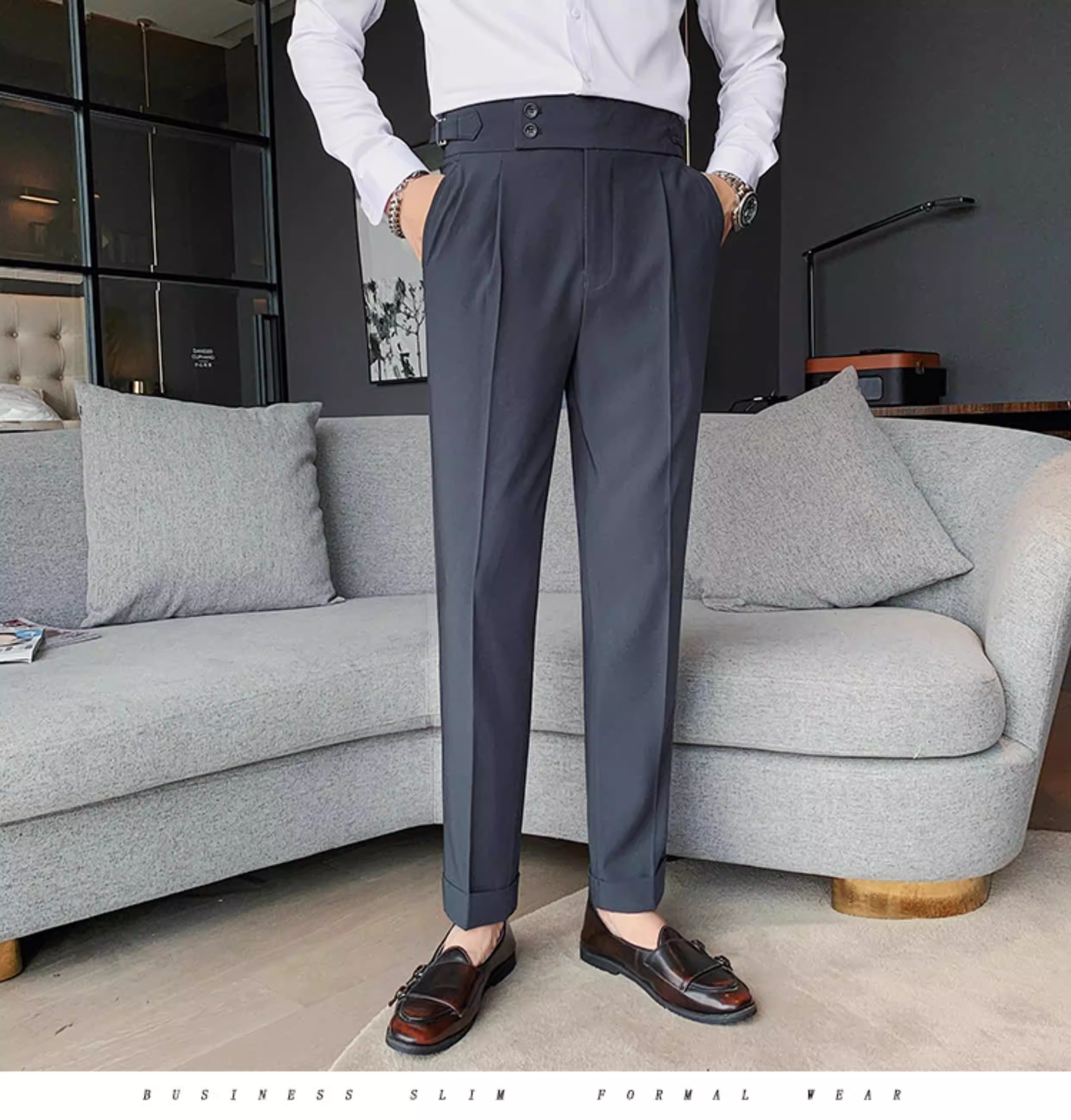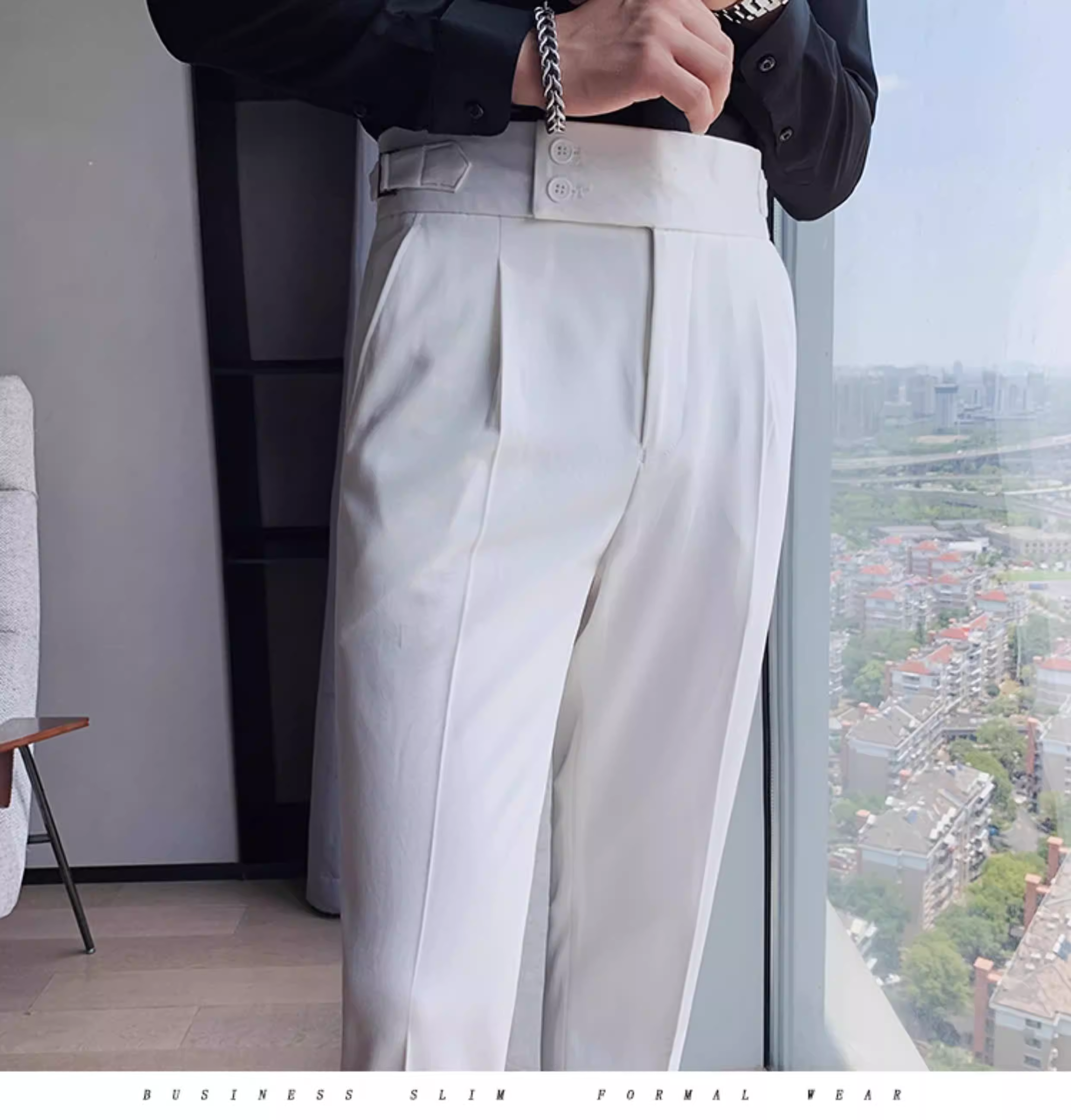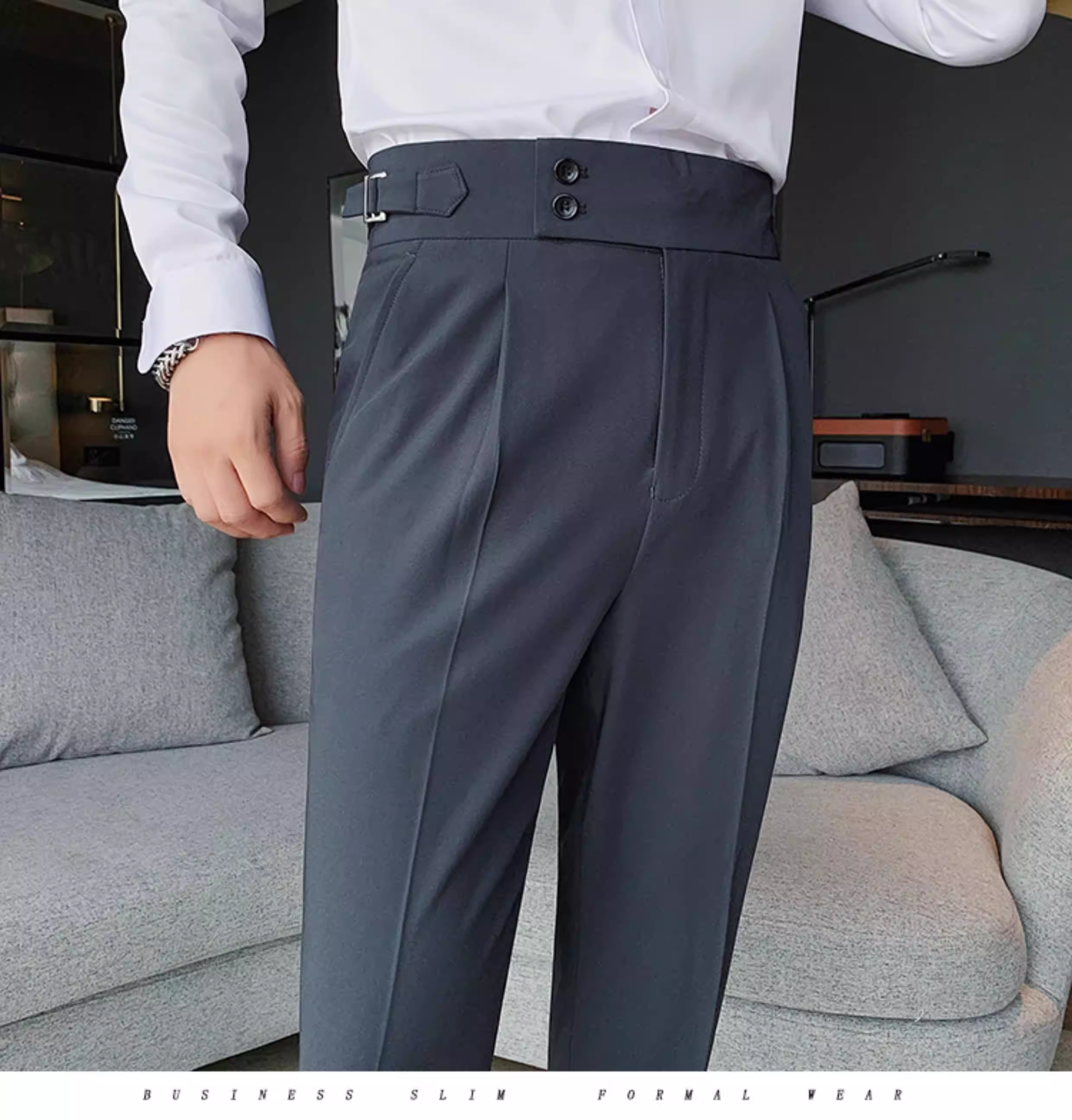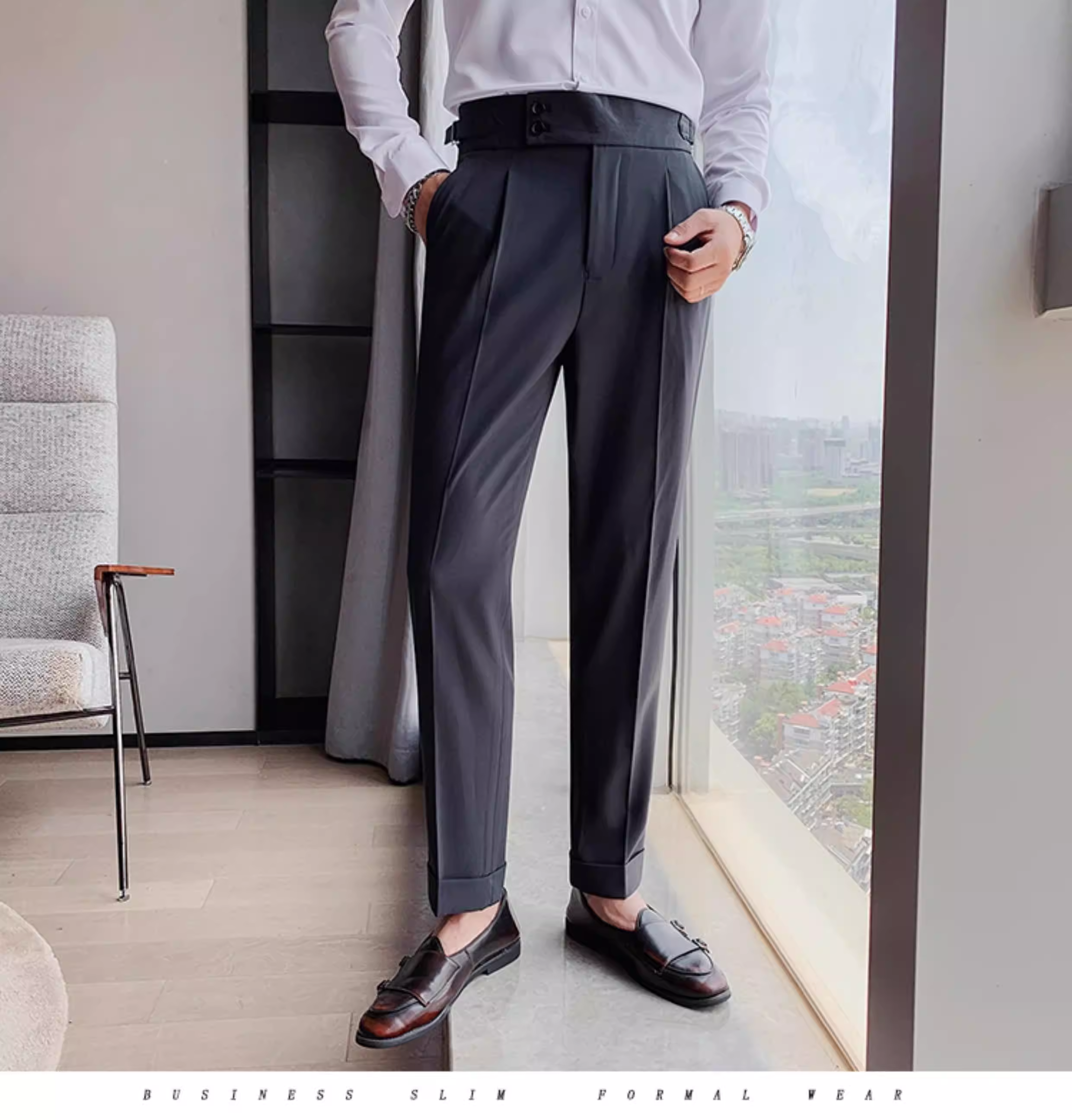 Quần tây nam Naples lưng cao cho mùa xuân thu, quần dài thường ngày, quần âu dáng thẳng kiểu Hàn Quốc, quần công sở không nhăn