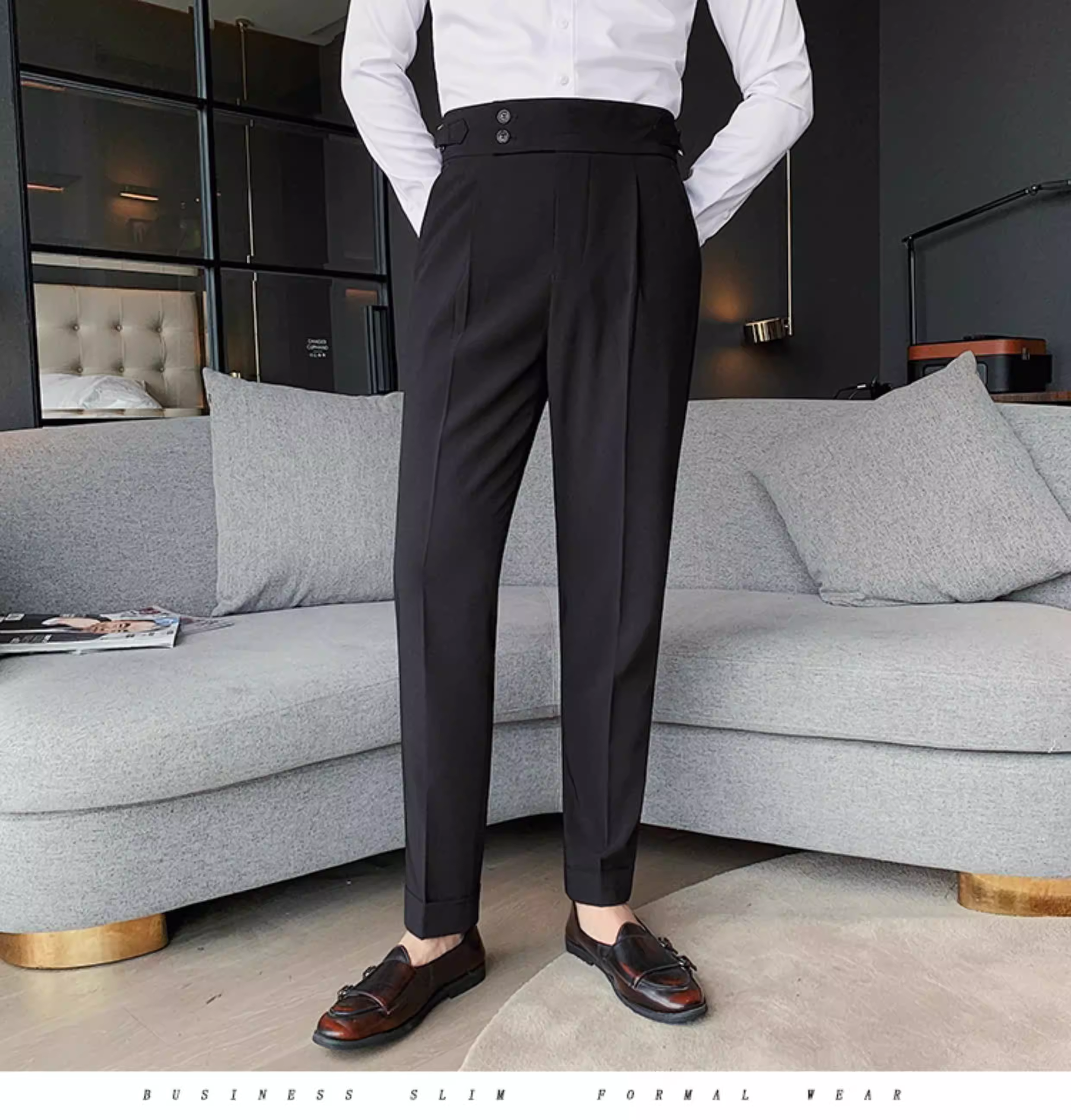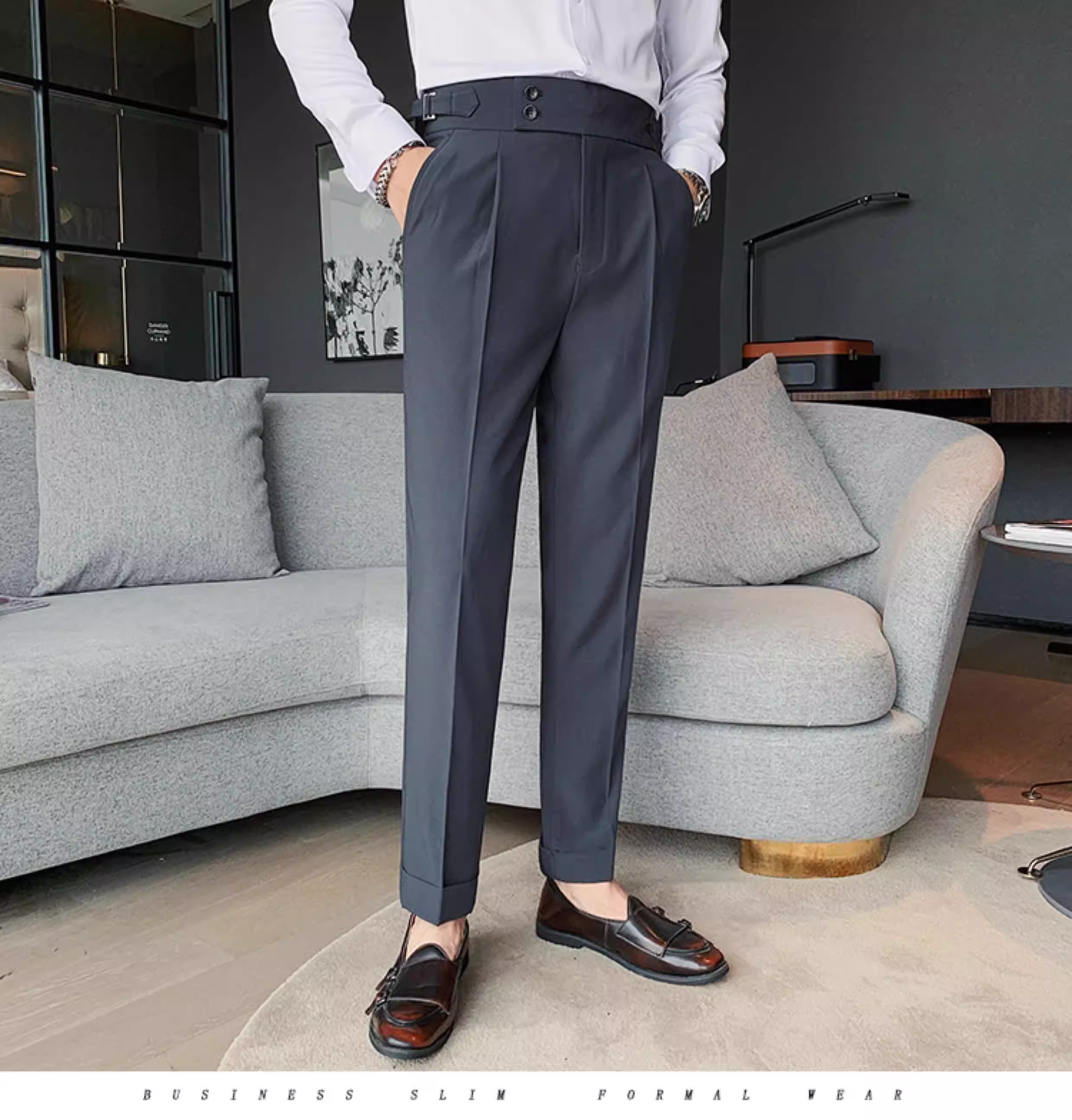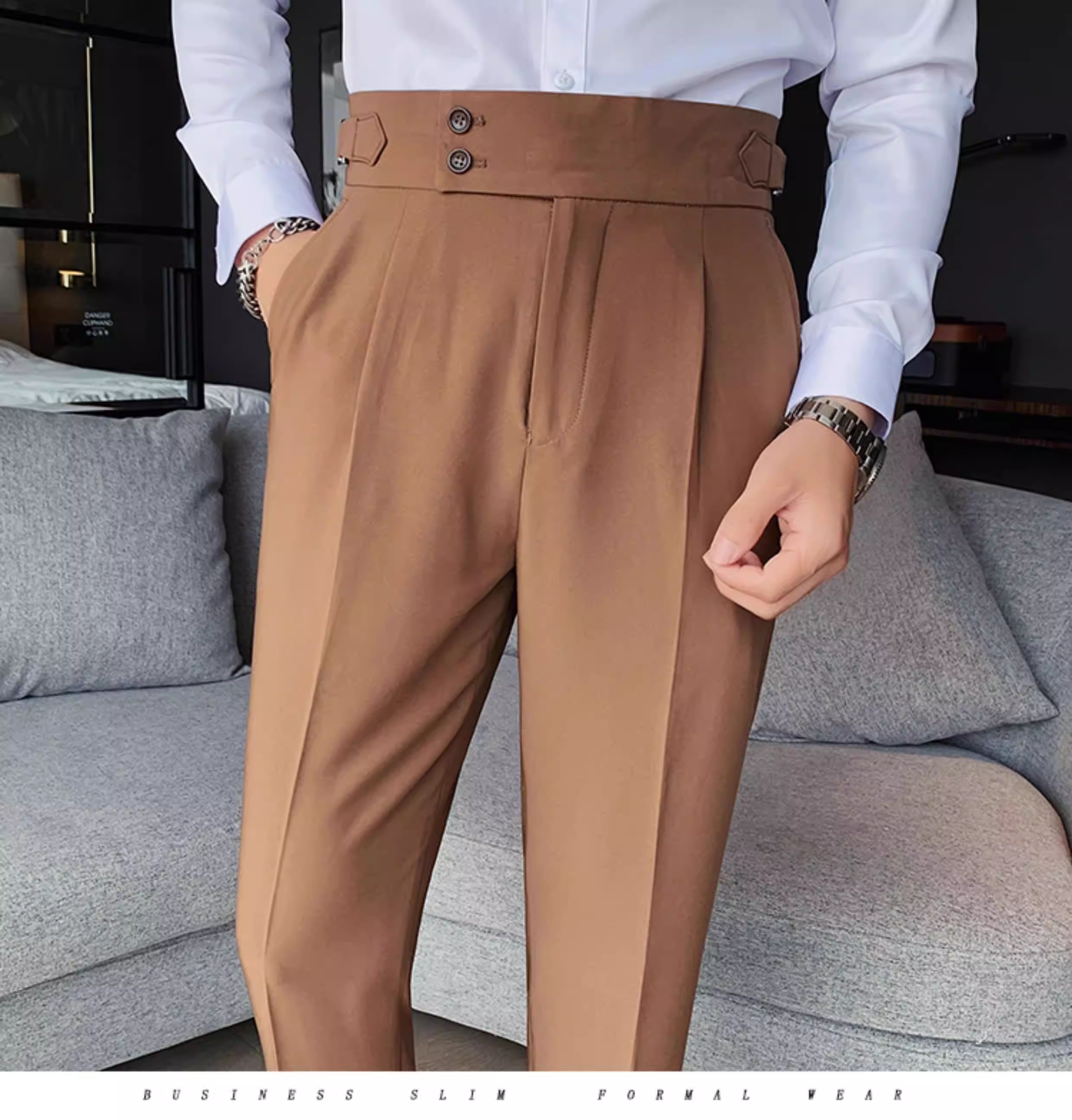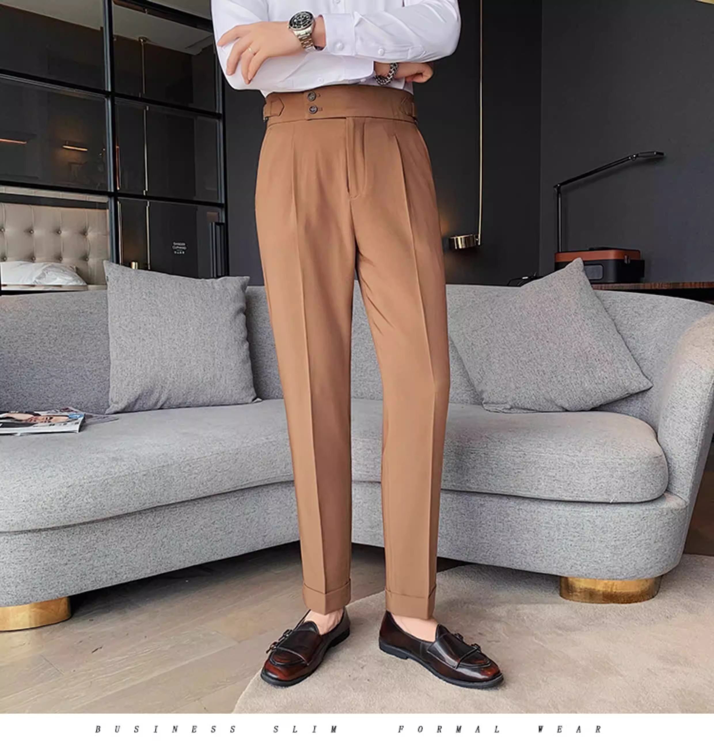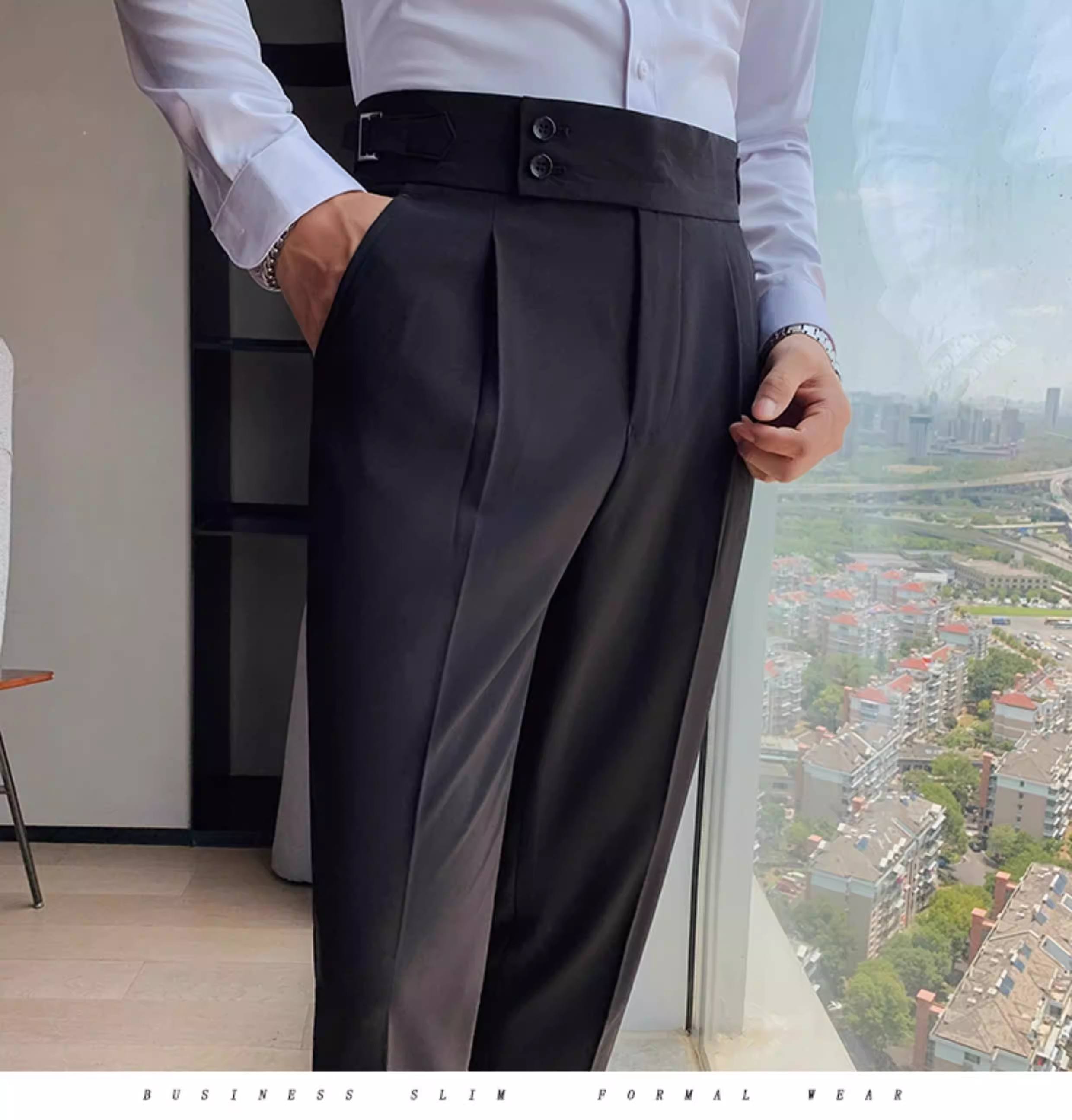 Quần tây nam Naples lưng cao cho mùa xuân thu, quần dài thường ngày, quần âu dáng thẳng kiểu Hàn Quốc, quần công sở không nhăn