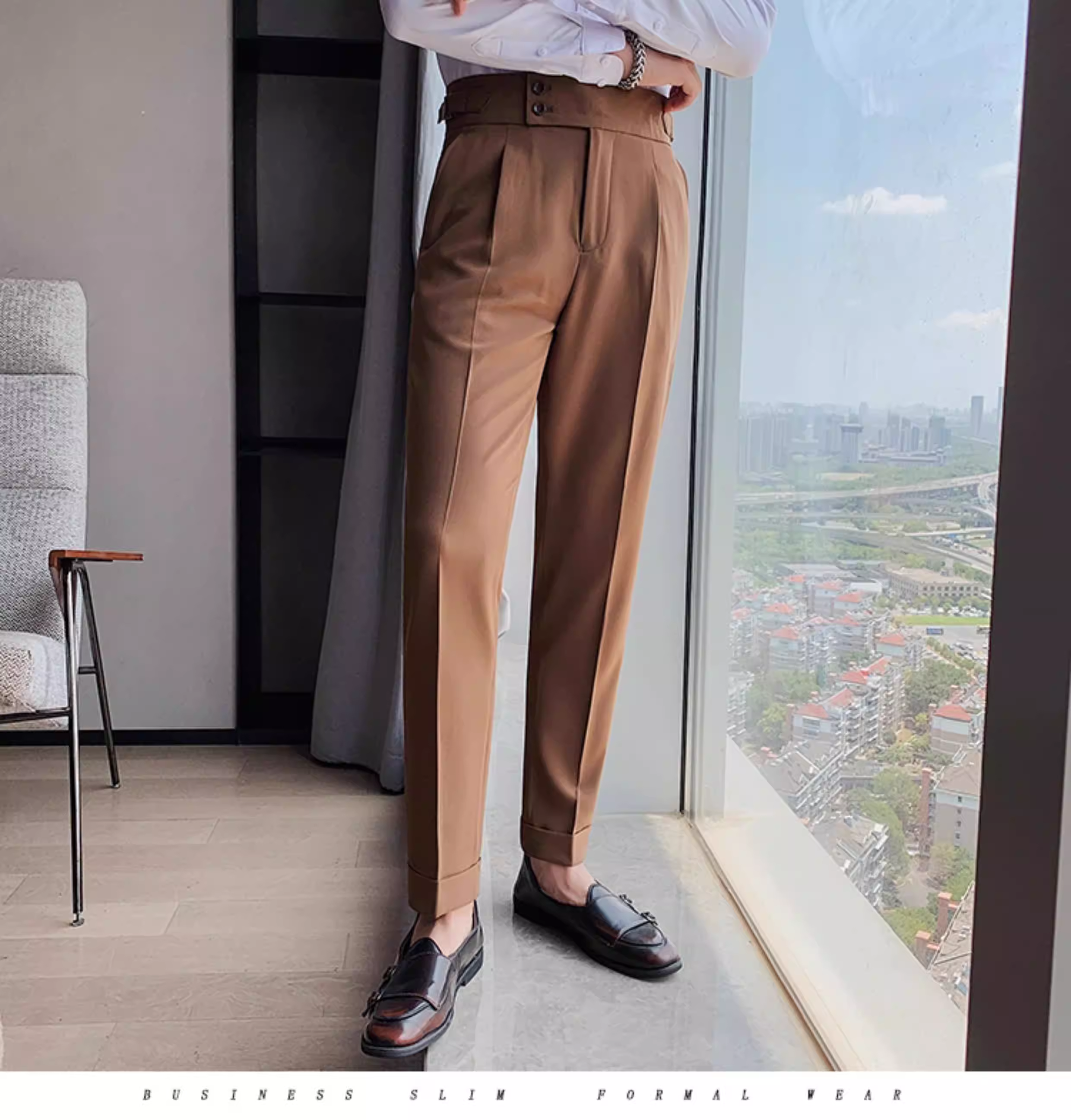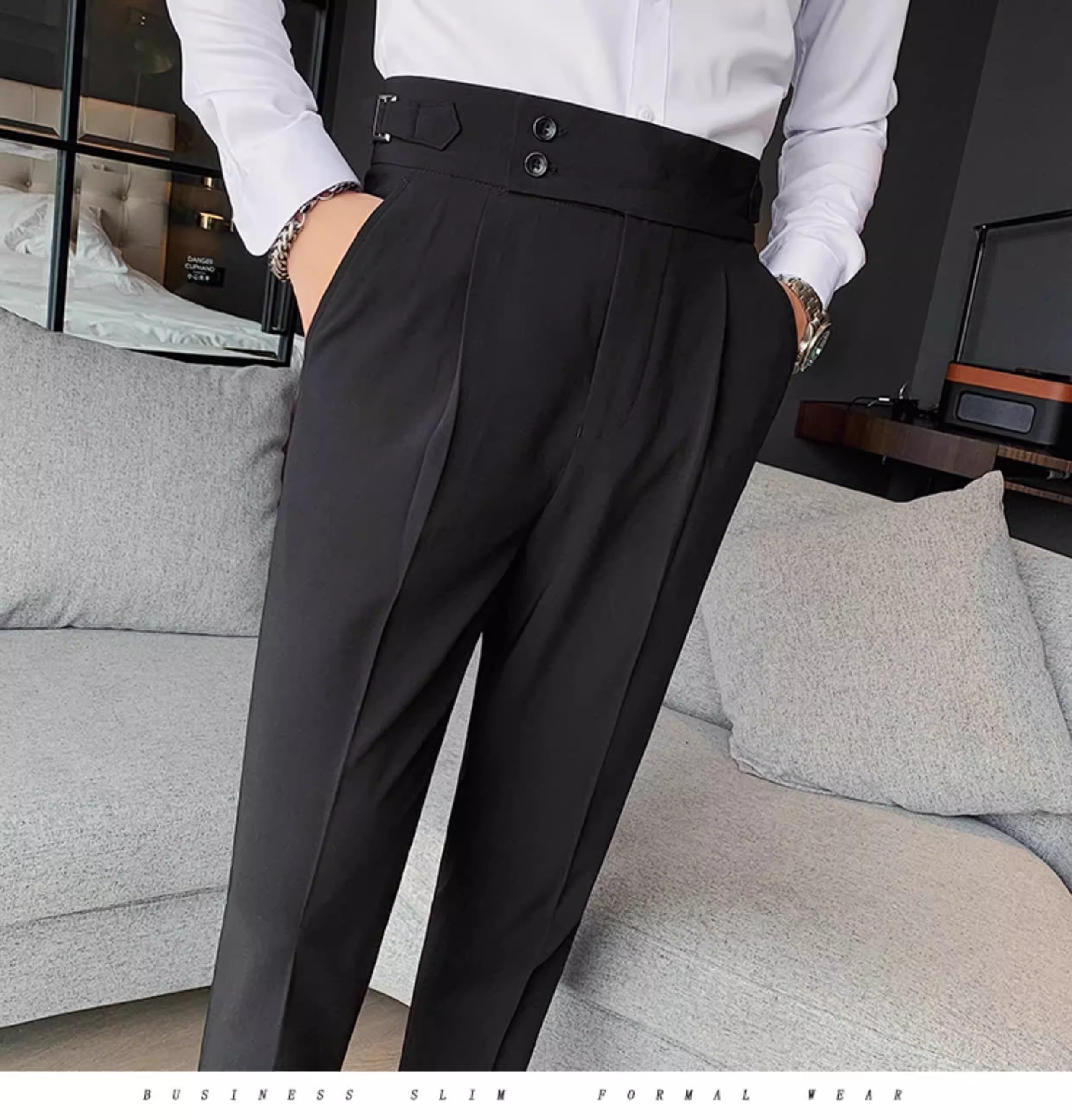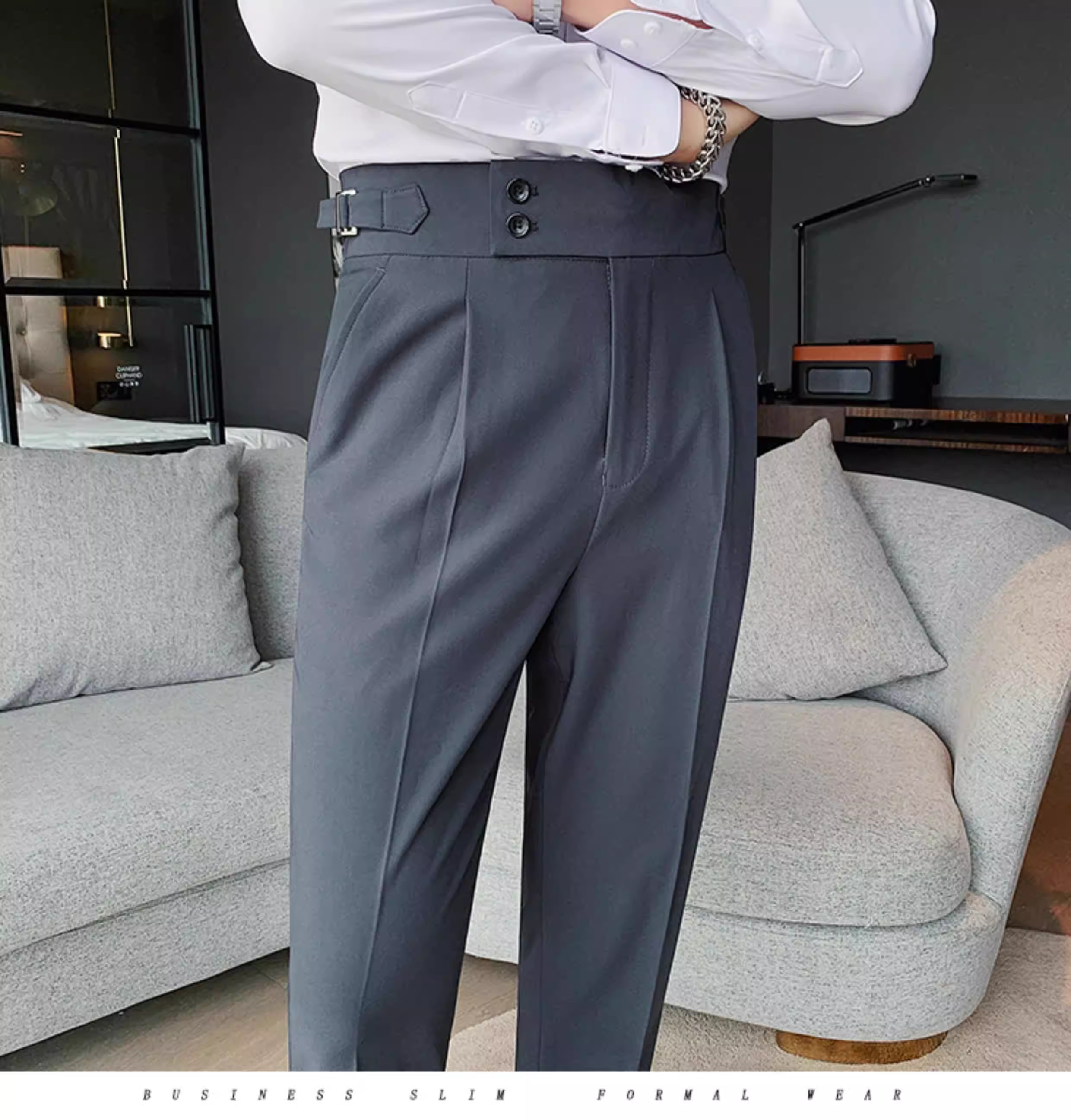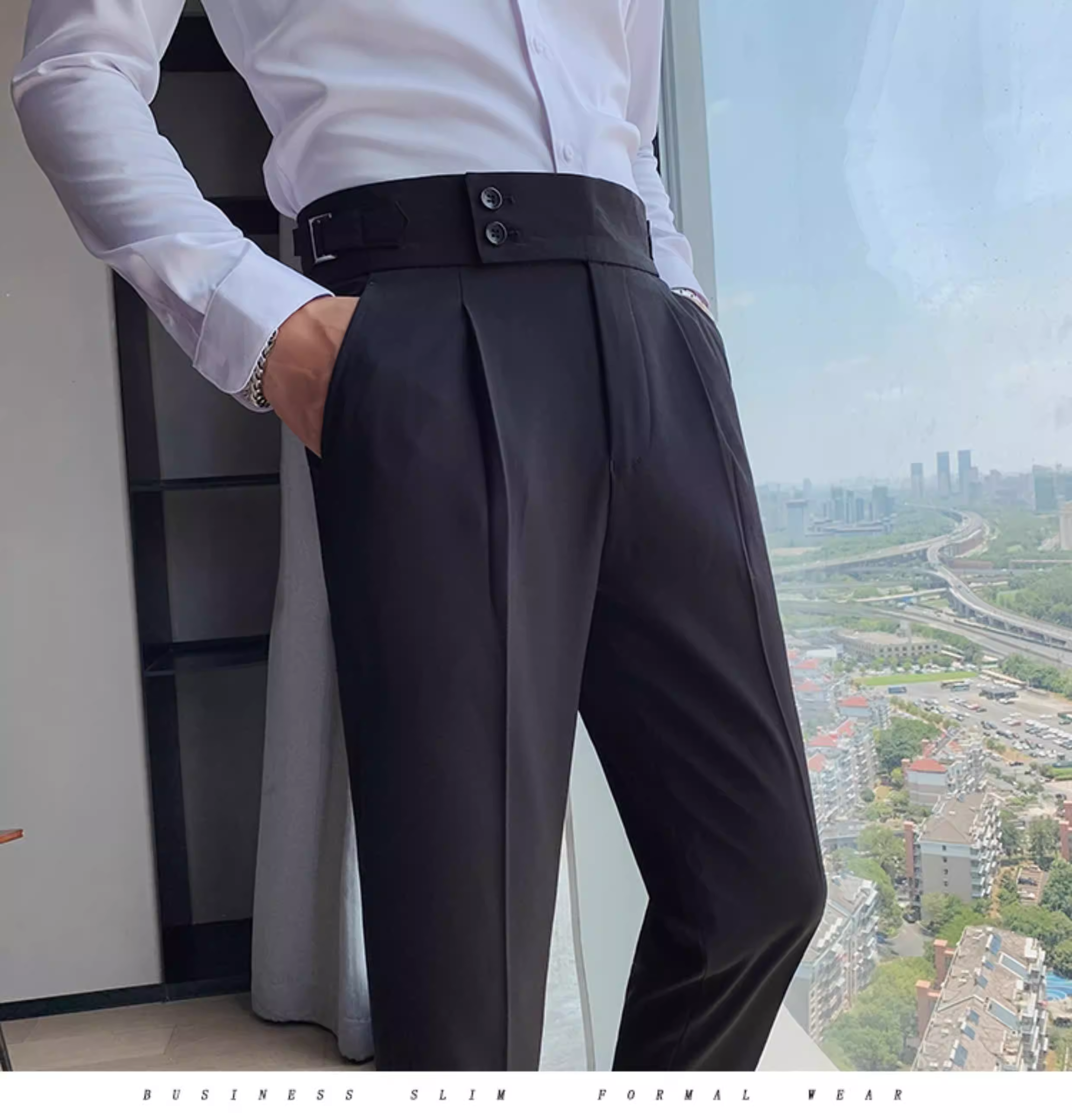 Quần tây nam Naples lưng cao cho mùa xuân thu, quần dài thường ngày, quần âu dáng thẳng kiểu Hàn Quốc, quần công sở không nhăn