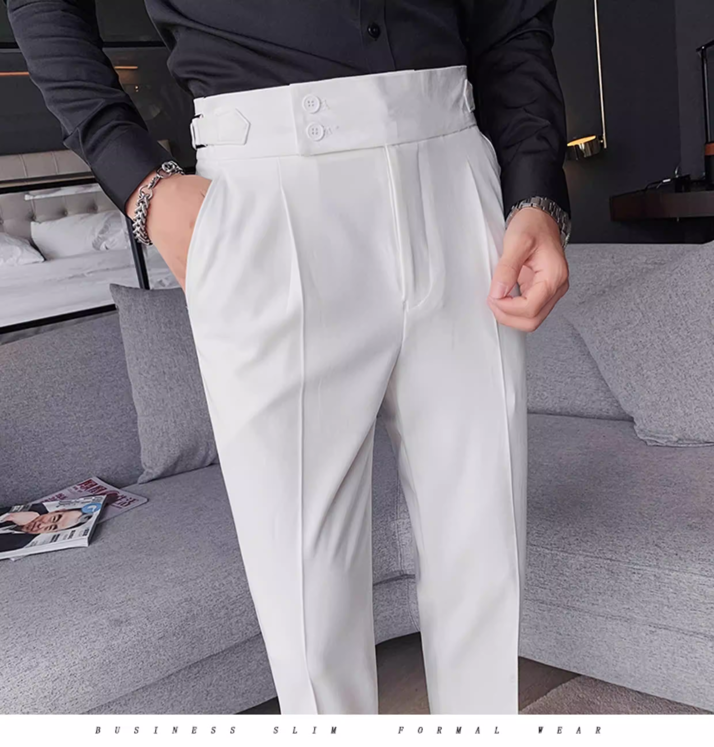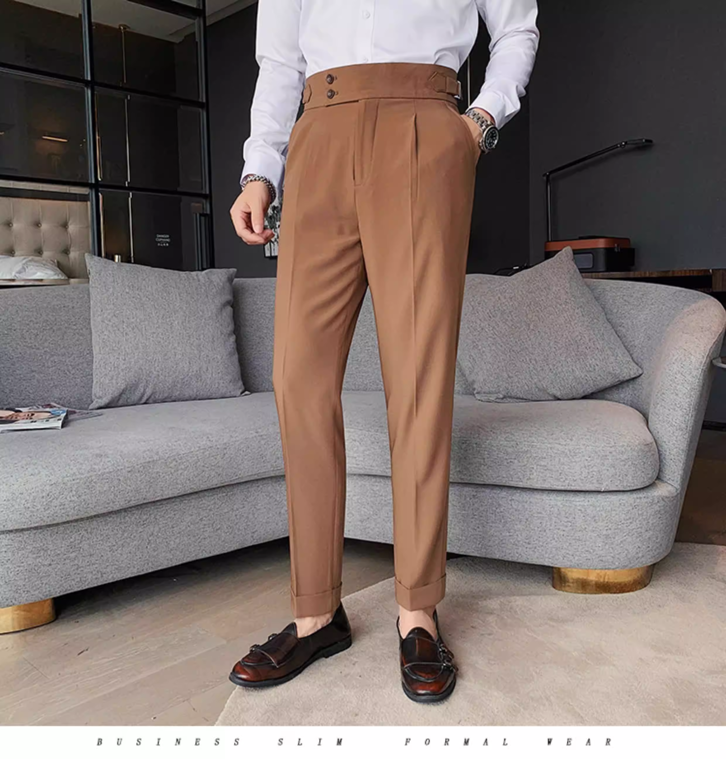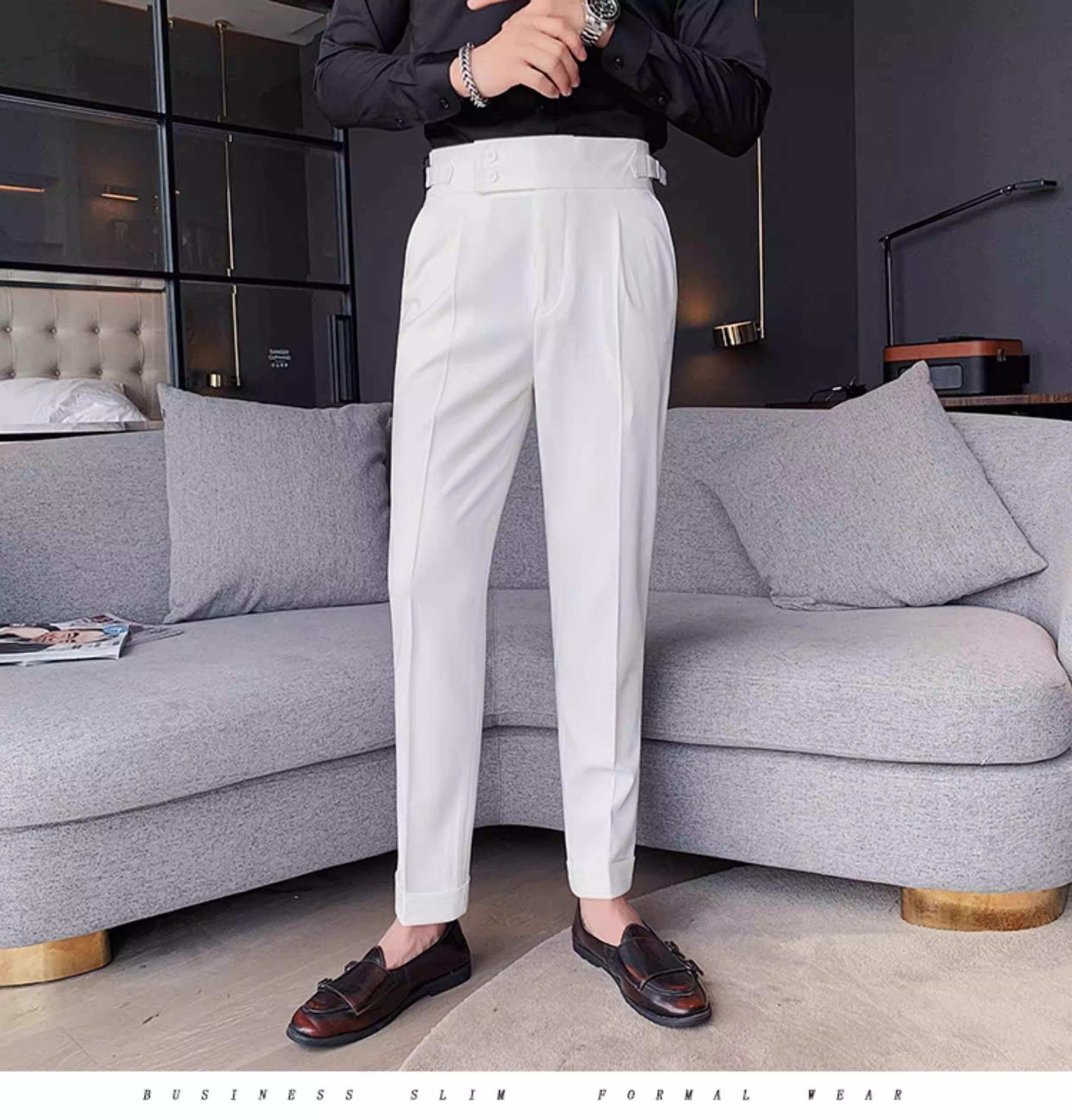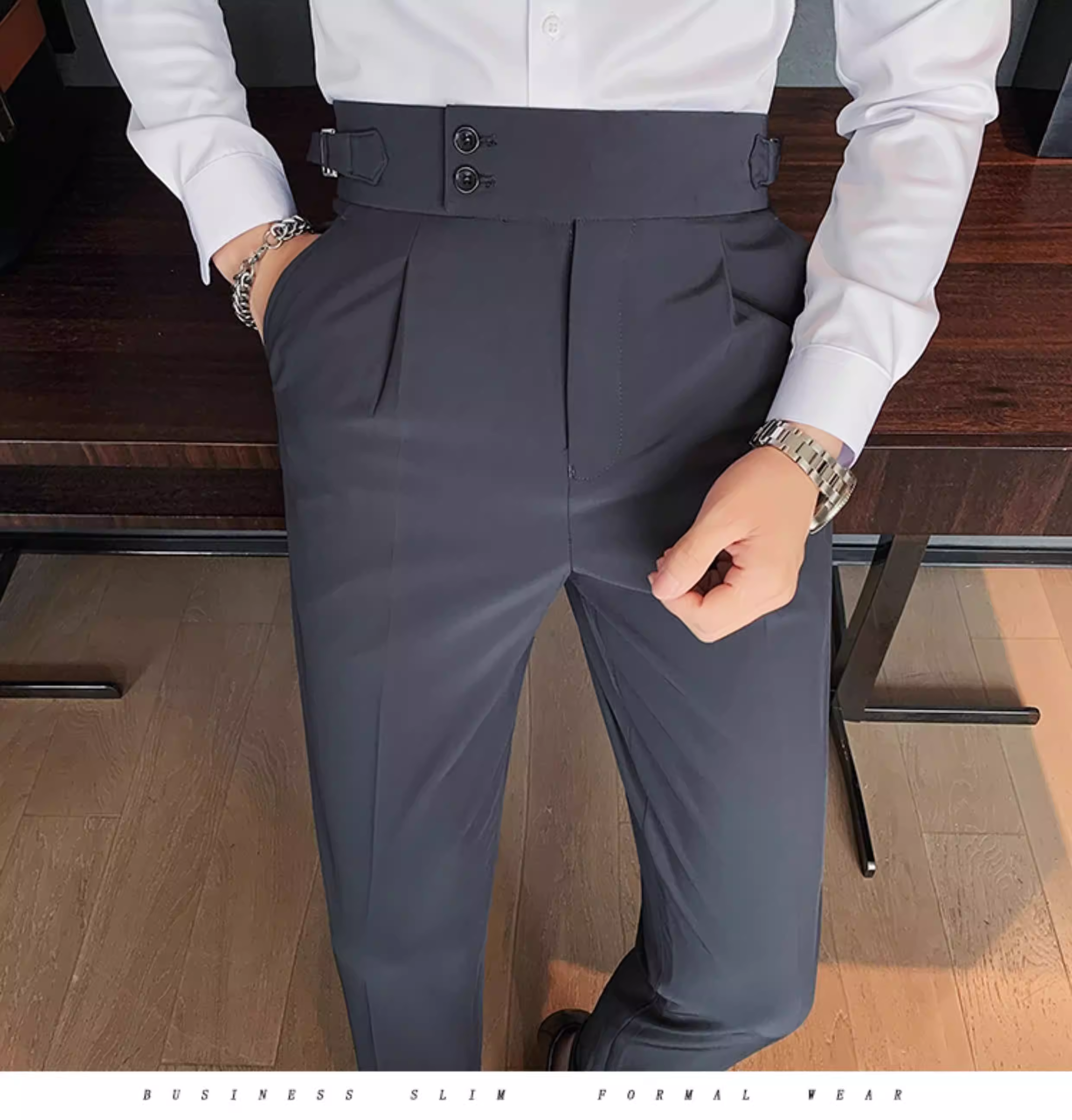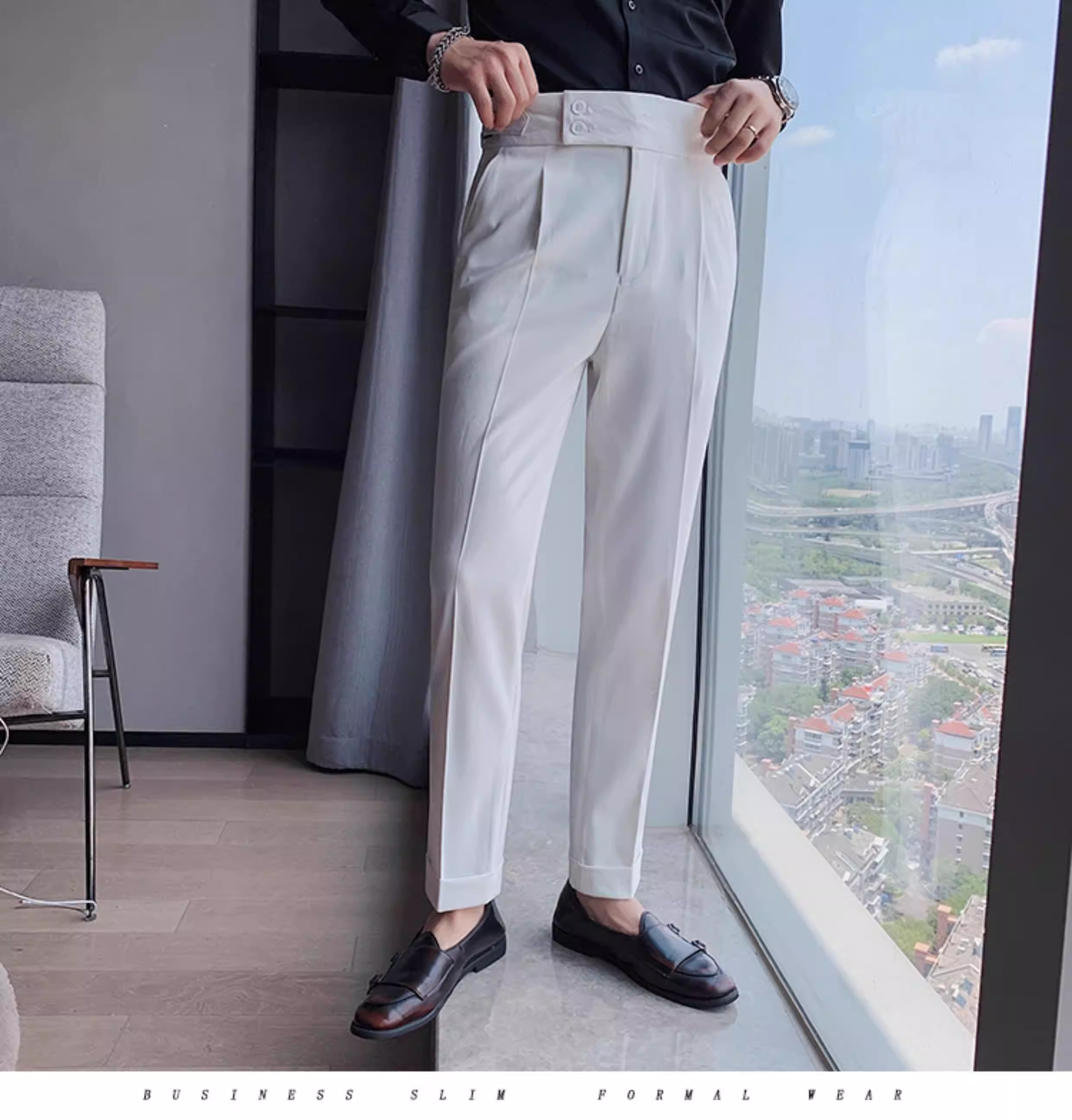 Quần tây nam Naples lưng cao cho mùa xuân thu, quần dài thường ngày, quần âu dáng thẳng kiểu Hàn Quốc, quần công sở không nhăn