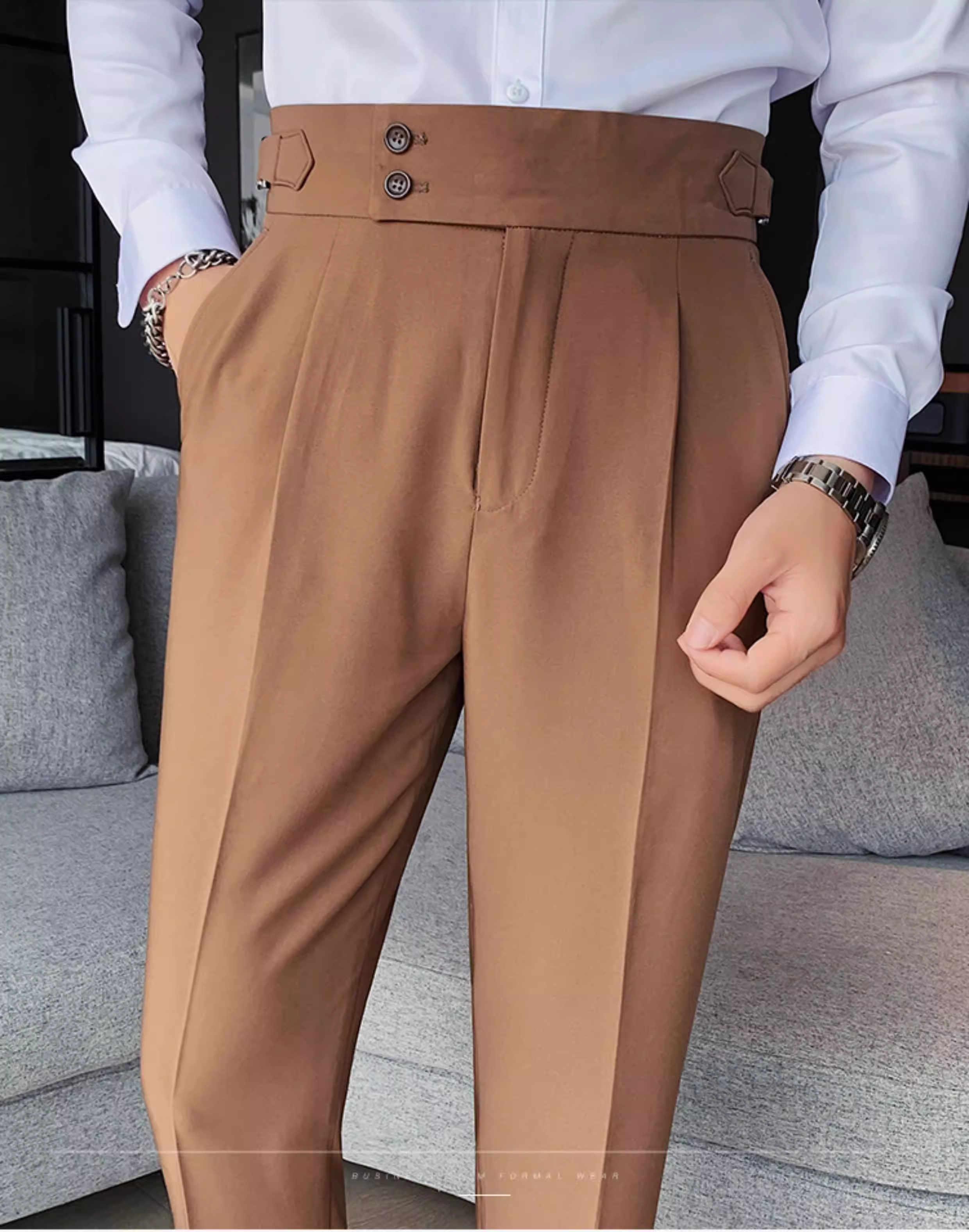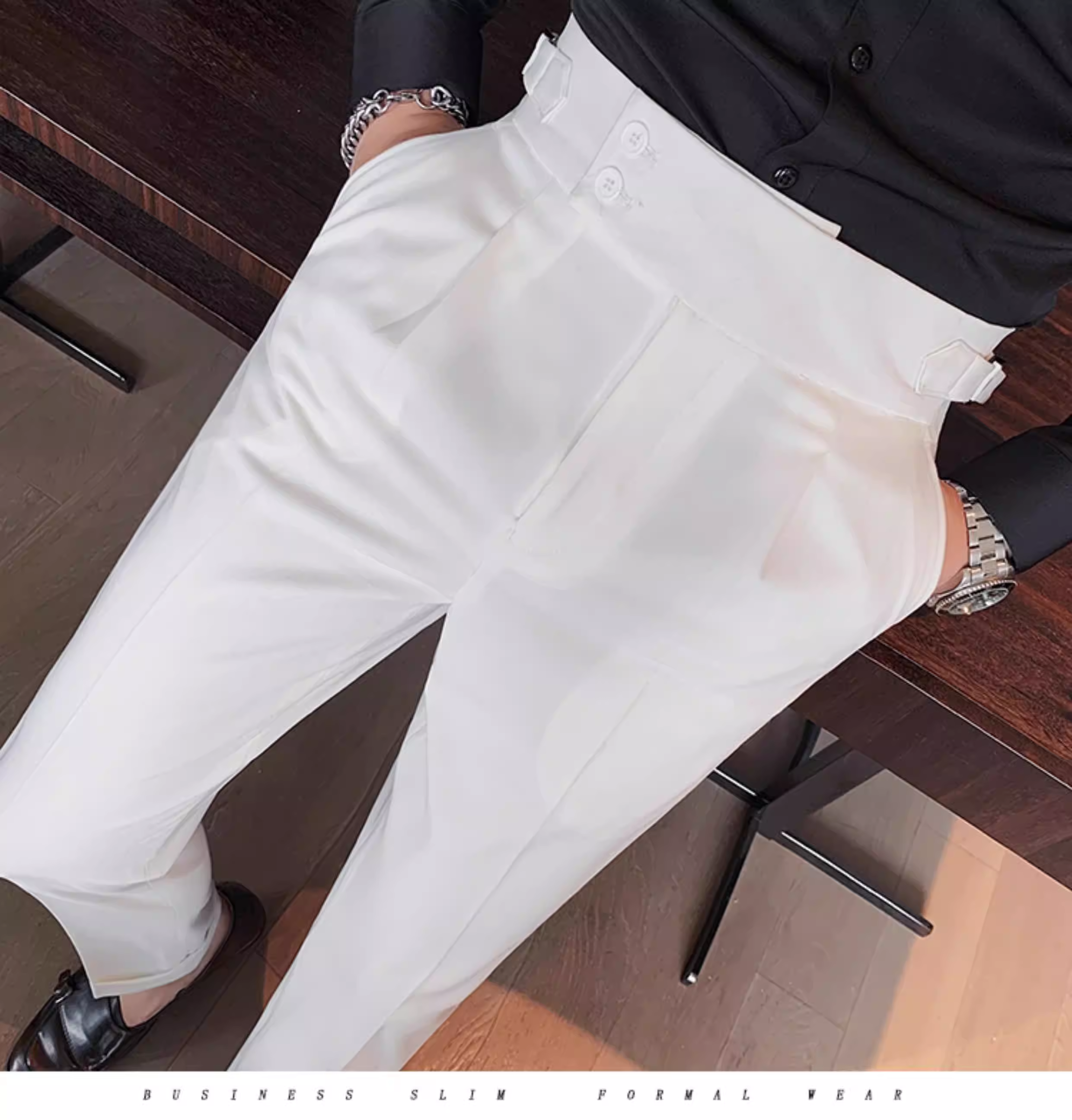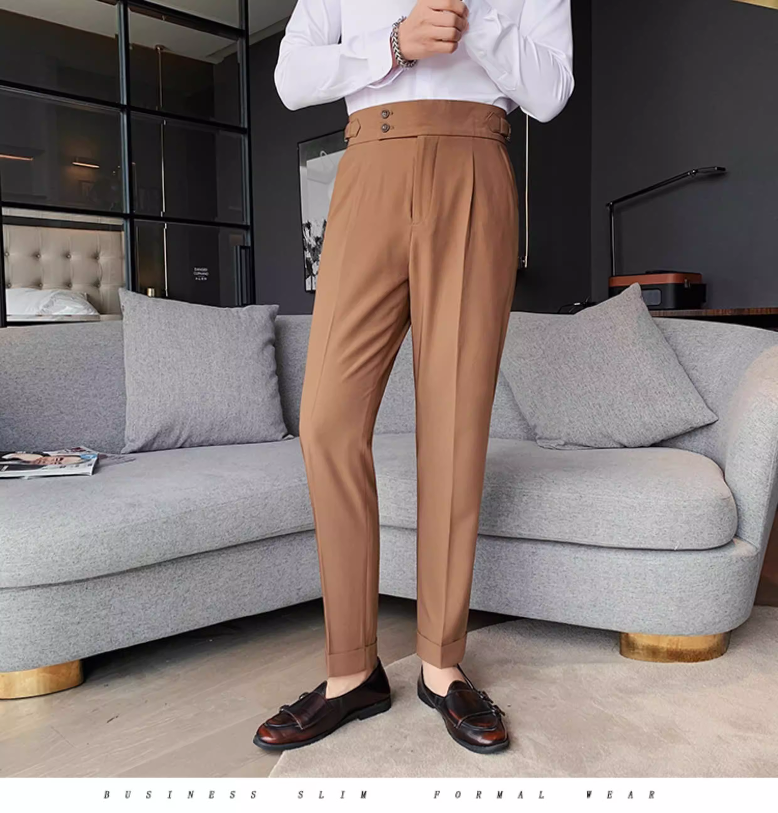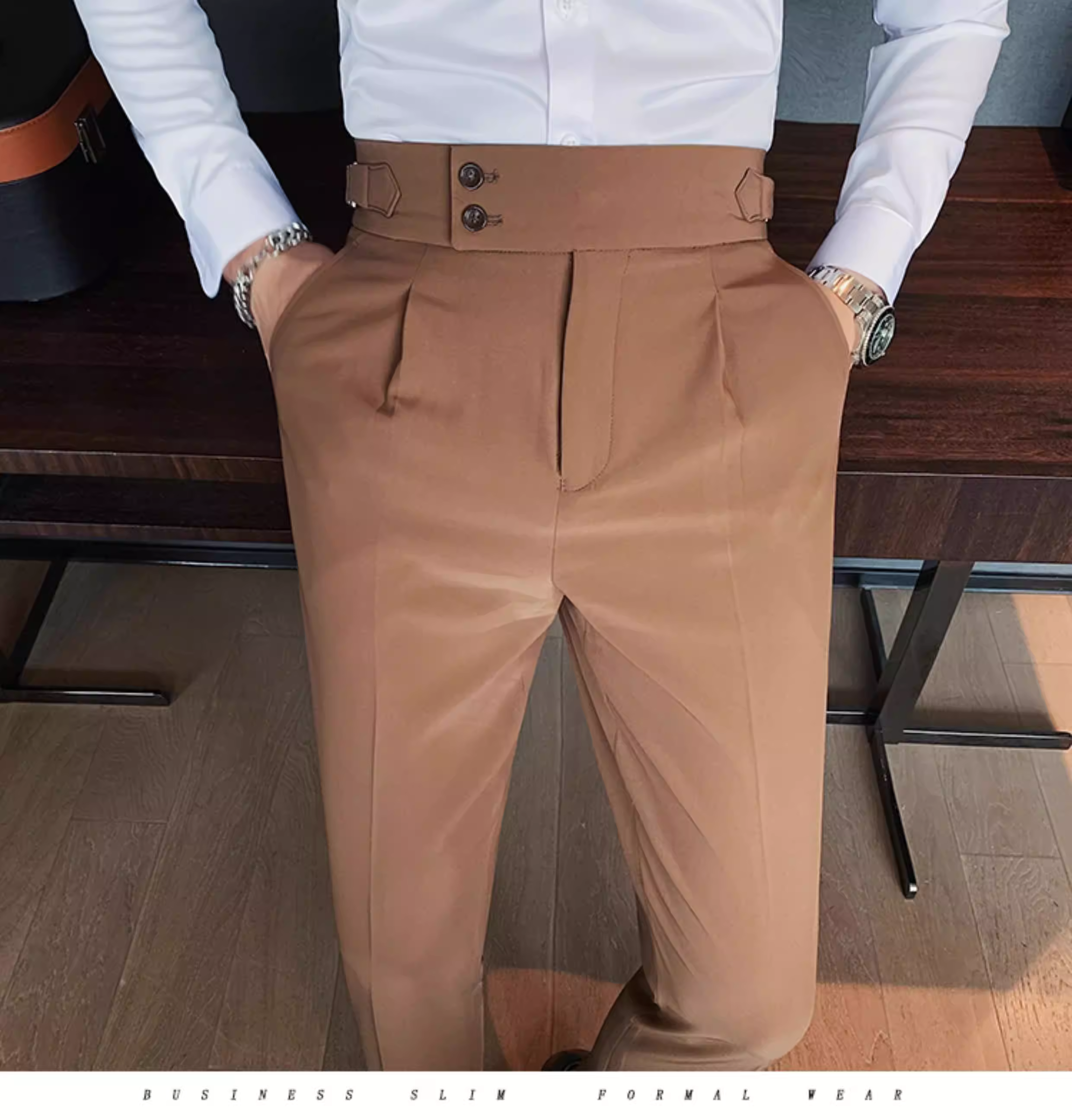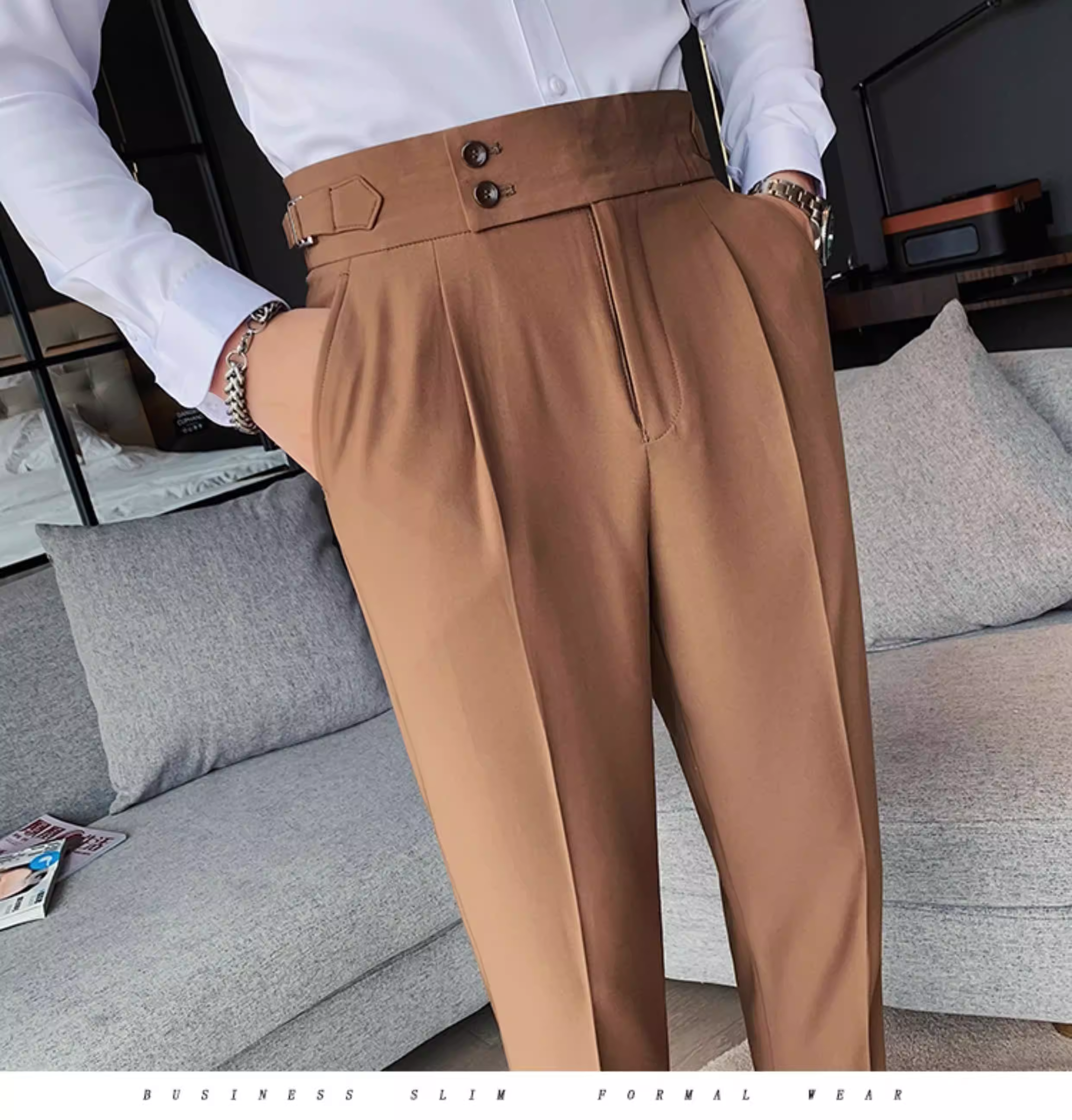 Quần tây nam Naples lưng cao cho mùa xuân thu, quần dài thường ngày, quần âu dáng thẳng kiểu Hàn Quốc, quần công sở không nhăn