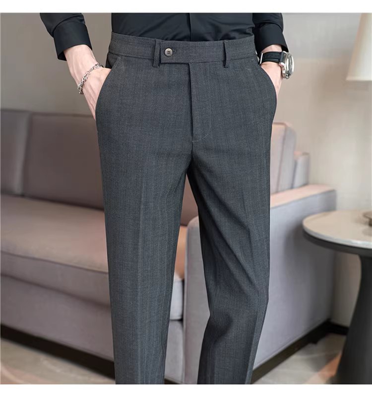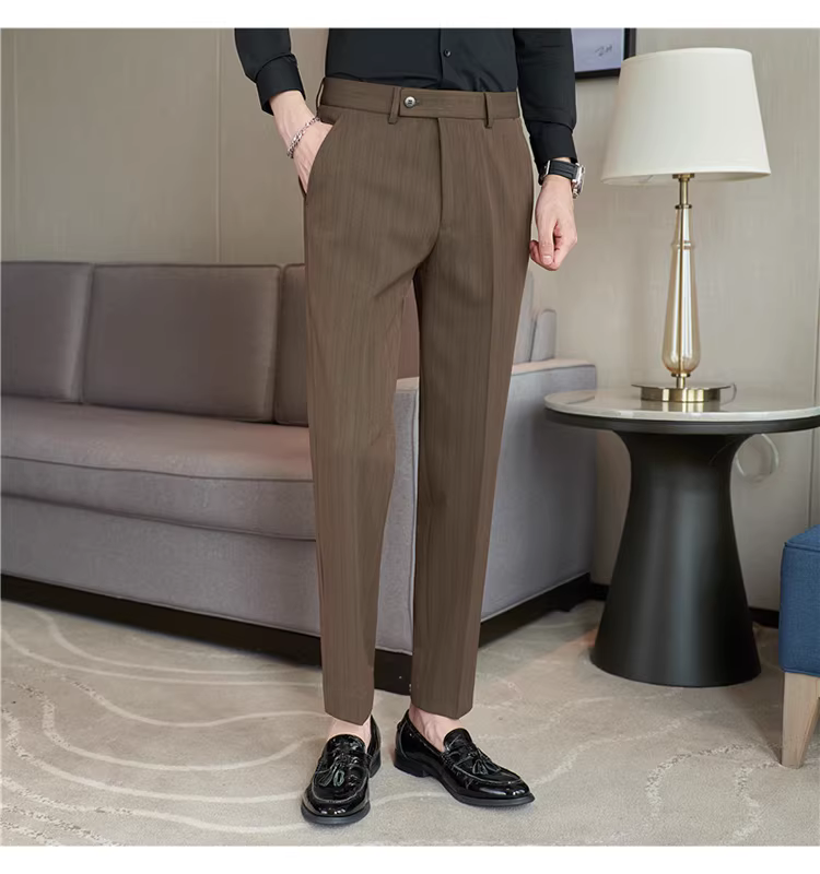 Quần tây nam sọc vân, kiểu xuân thu mới, phong cách công sở lịch lãm cao cấp Hàn Quốc, dáng ôm thời trang, kiểu dáng thon gọn.