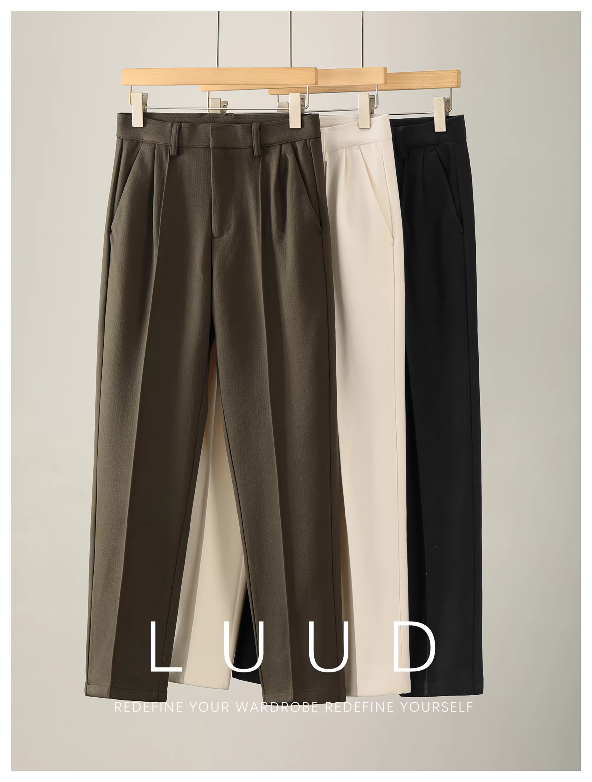 - Quần tây ống đứng bằng len xếp ly thủ công LUUD dành cho nam, Quần ấm dày mùa đông có nếp gấp đôi, Quần tây thường ngày.
