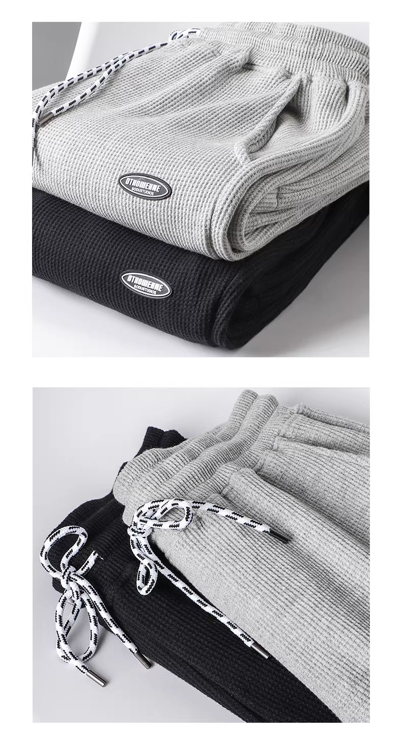 - Quần thể thao dệt kim kiểu waffle hạng nặng cao cấp kiểu Mỹ của OMZM dành cho nam, quần jogger dáng rộng phong cách đường phố, quần thể thao màu xám.