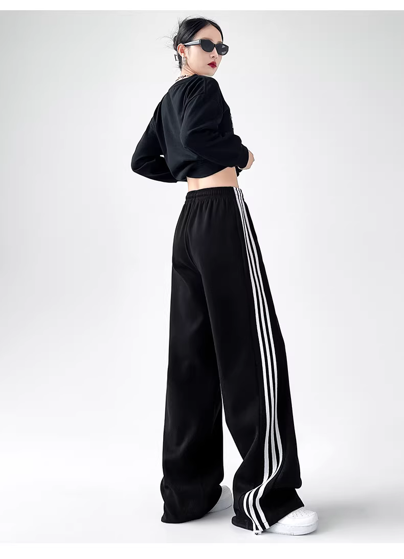 - Quần thể thao màu đỏ dành cho nữ, quần ống rộng mùa thu đông, quần dài dành cho phụ nữ cao, quần nữ lót lông cừu và dày dặn, quần thể thao ba sọc.