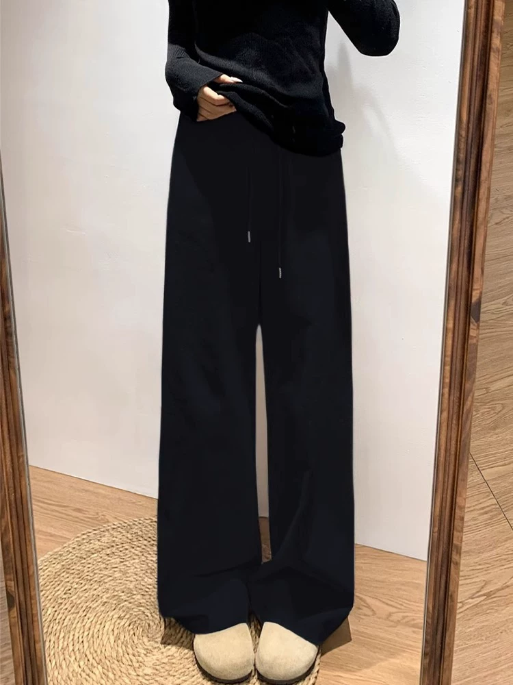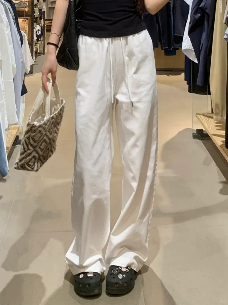 Quần thể thao màu trắng dành cho nữ, kiểu dáng mỏng mùa hè, cỡ lớn, lưng cao, dáng rộng, giảm béo, dáng quả lê, quần dài ống rộng.