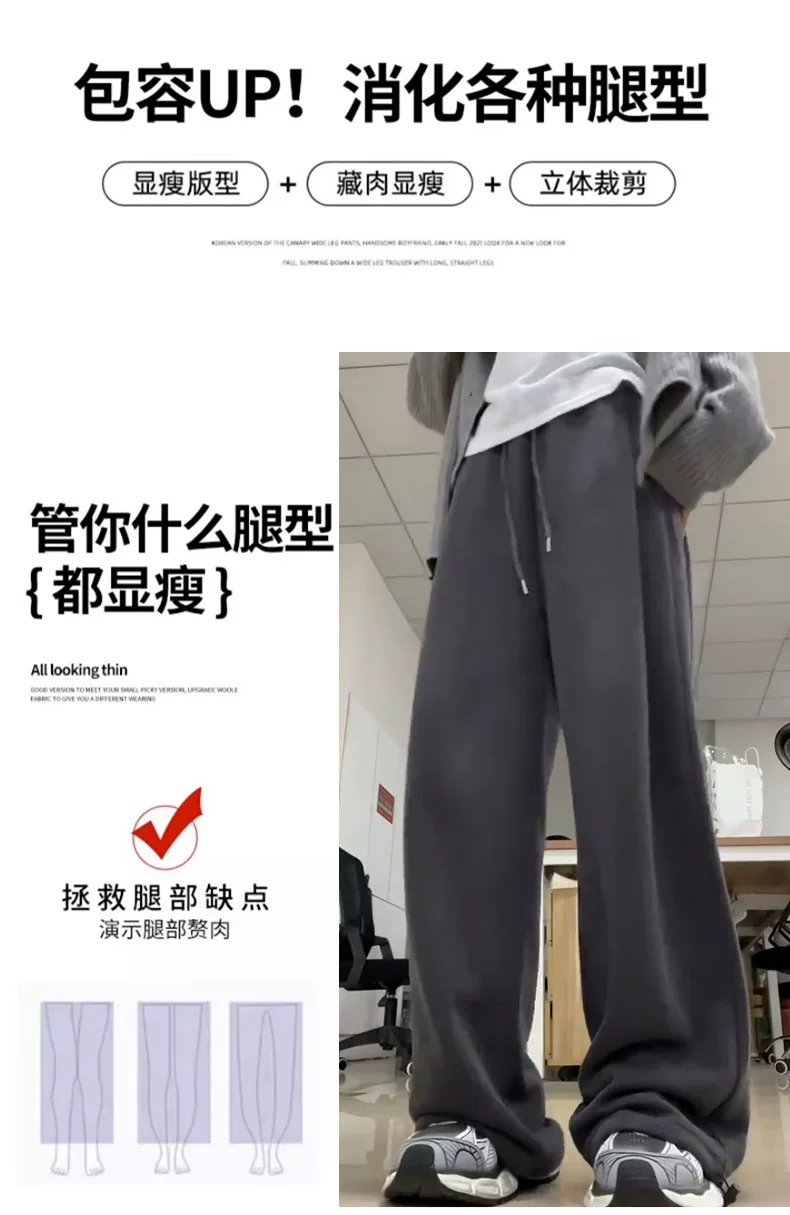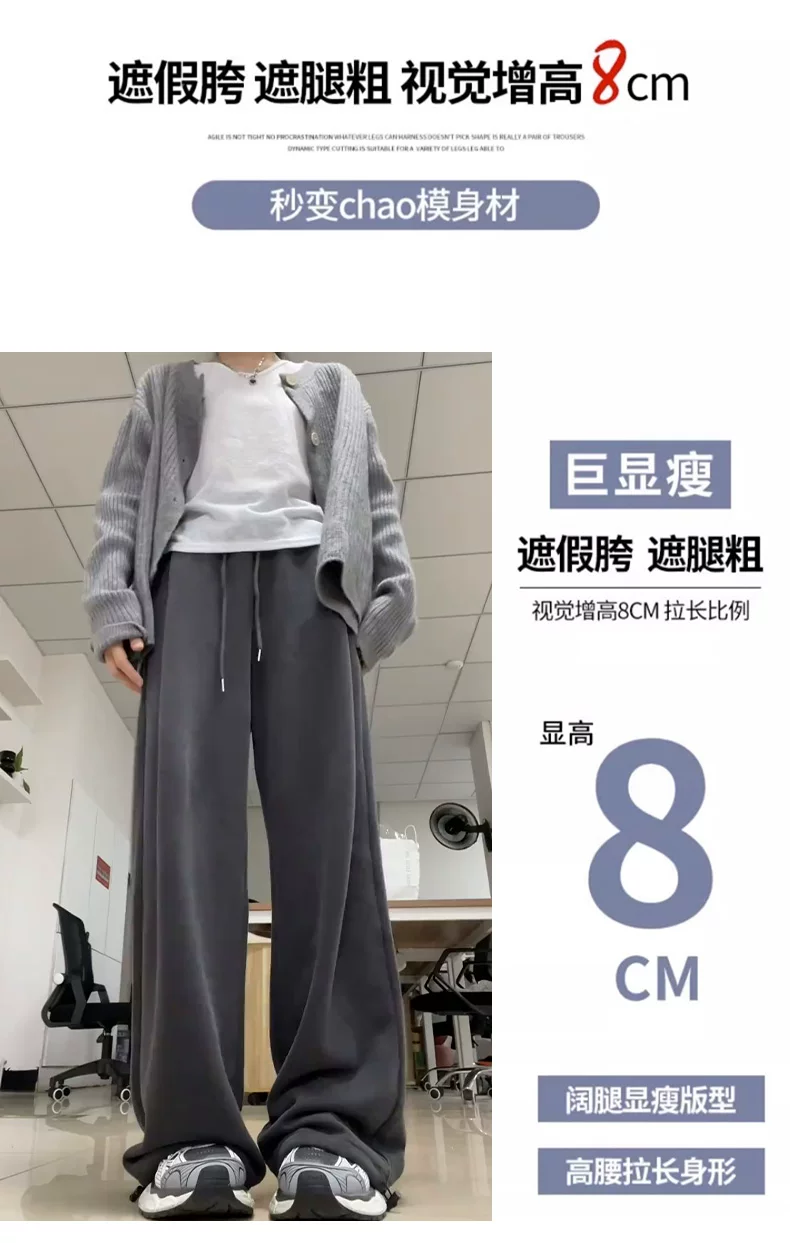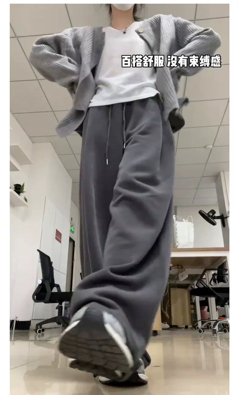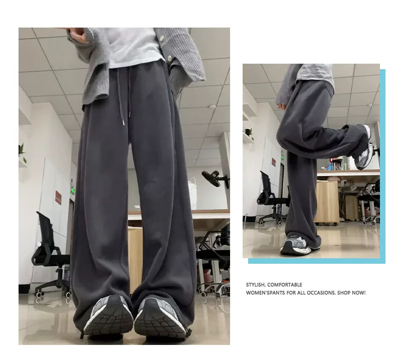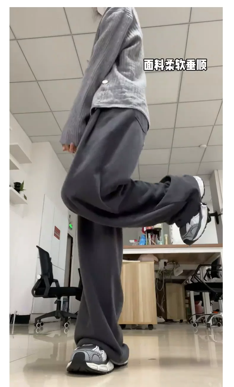 - Quần thể thao màu xám đậm dành cho nữ, mùa thu 2025, cỡ lớn, lưng cao, dáng rộng, tôn dáng, dành cho người có thân hình quả lê, quần thường ngày.