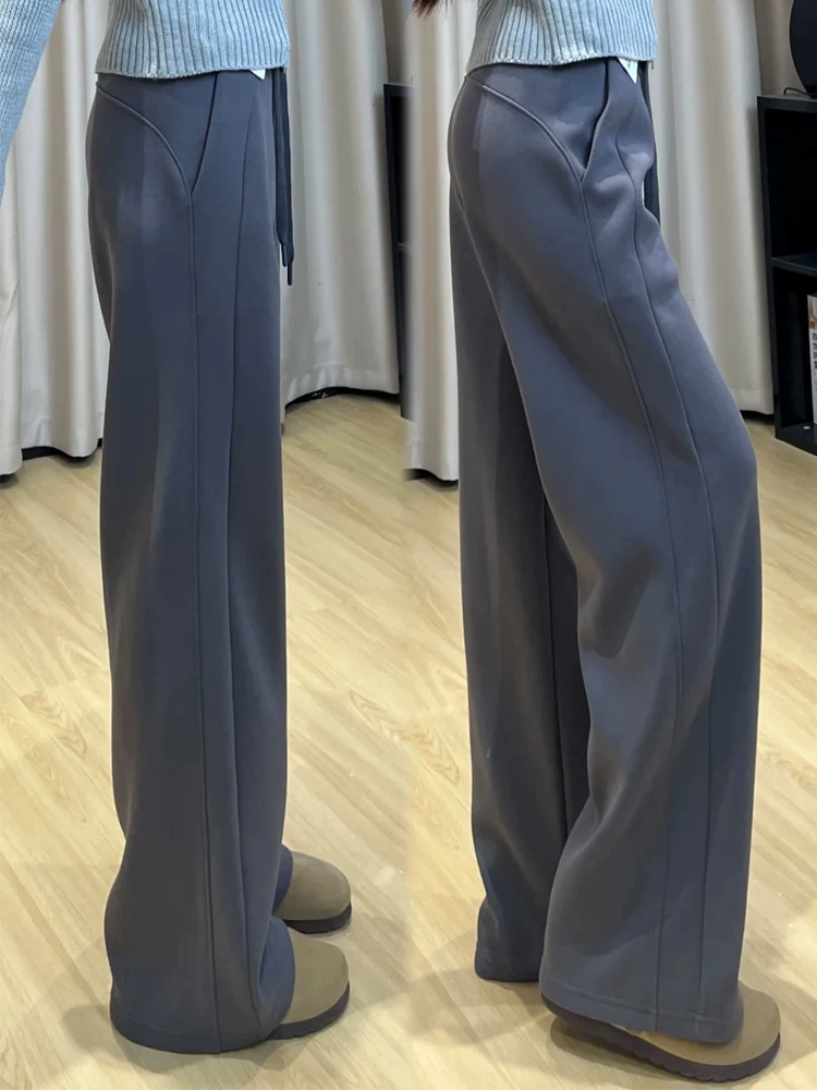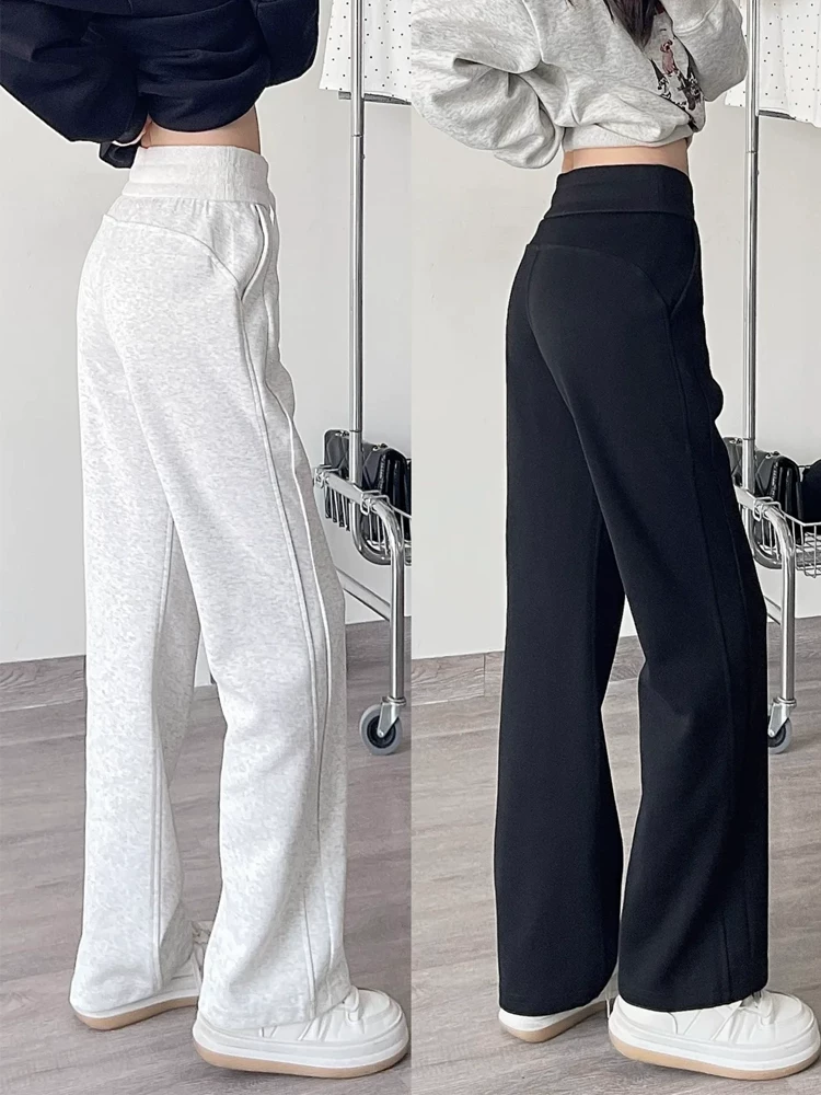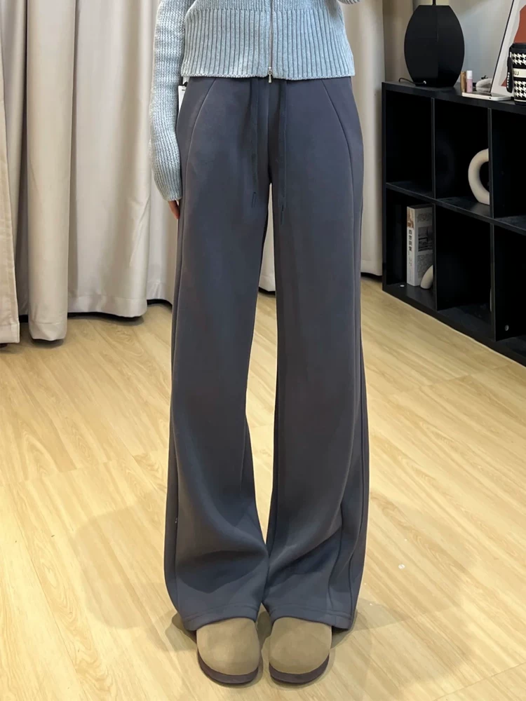 - Quần thể thao màu xám đậm dành cho nữ, mùa xuân, cỡ lớn, cạp cao, che hông, giảm béo, dáng quả lê, quần thể thao ống rộng.