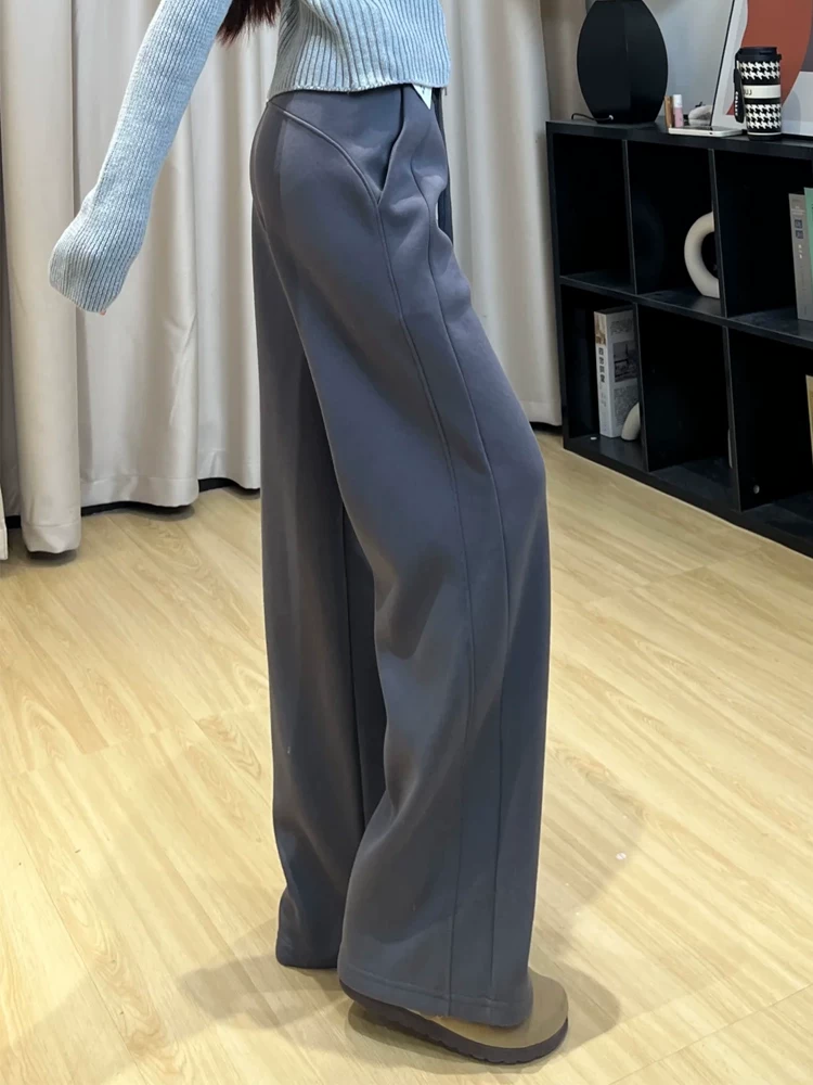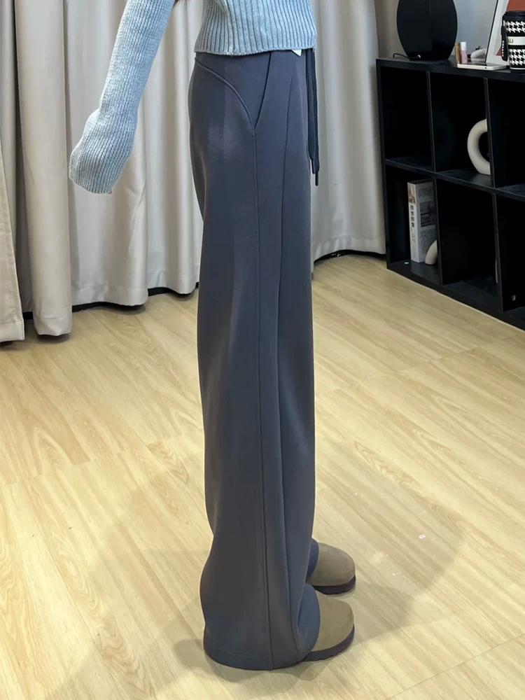 Quần thể thao màu xám đậm dành cho nữ, mùa xuân, cỡ lớn, cạp cao, che hông, giảm béo, dáng quả lê, quần thể thao ống rộng.