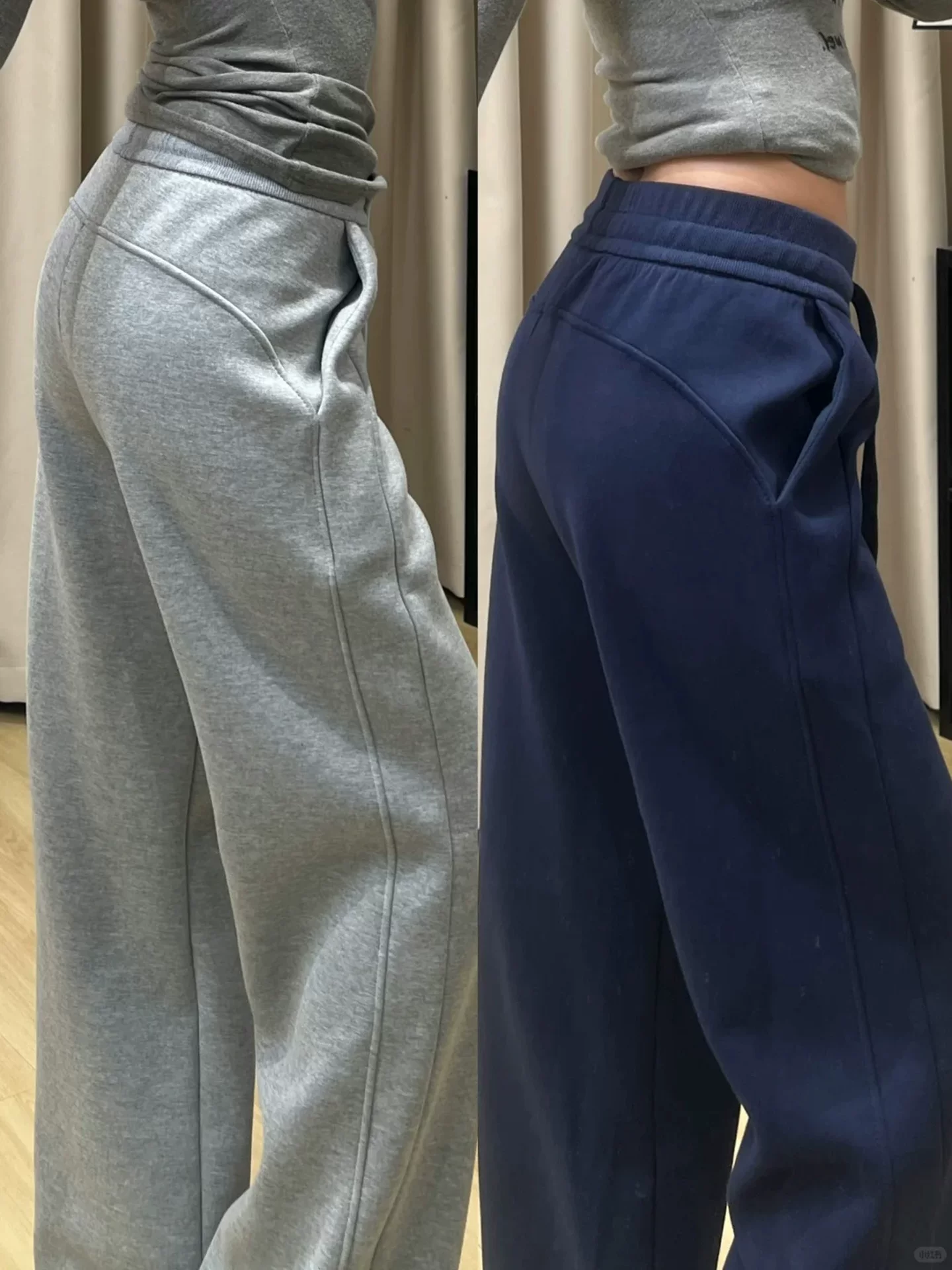 - Quần thể thao màu xám dành cho nữ, mùa thu, cỡ lớn, lưng cao, dáng rộng, che hông, giảm béo, dáng quả lê, quần thể thao ống rộng
