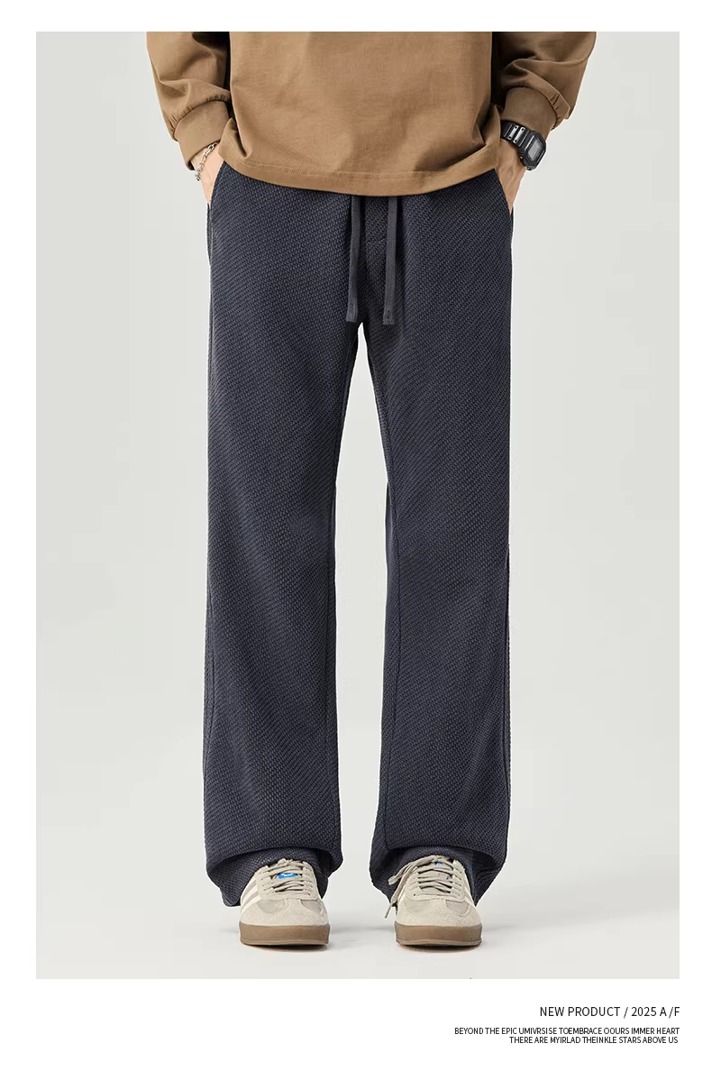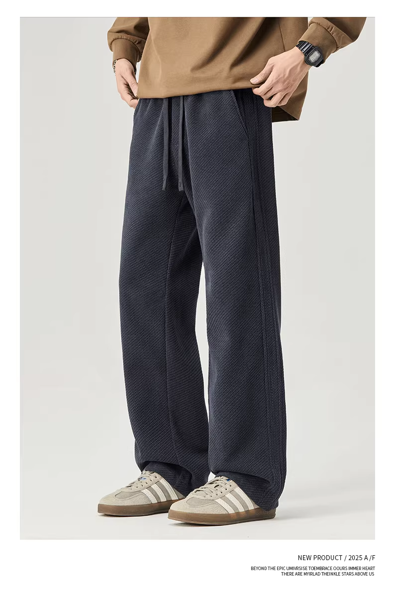 - Quần thể thao nam chất liệu cotton dày dặn, dáng thẳng, kiểu mới thu đông 2025, phong cách Mỹ, dáng rộng, chất liệu dệt kim, quần dài mặc thường ngày.