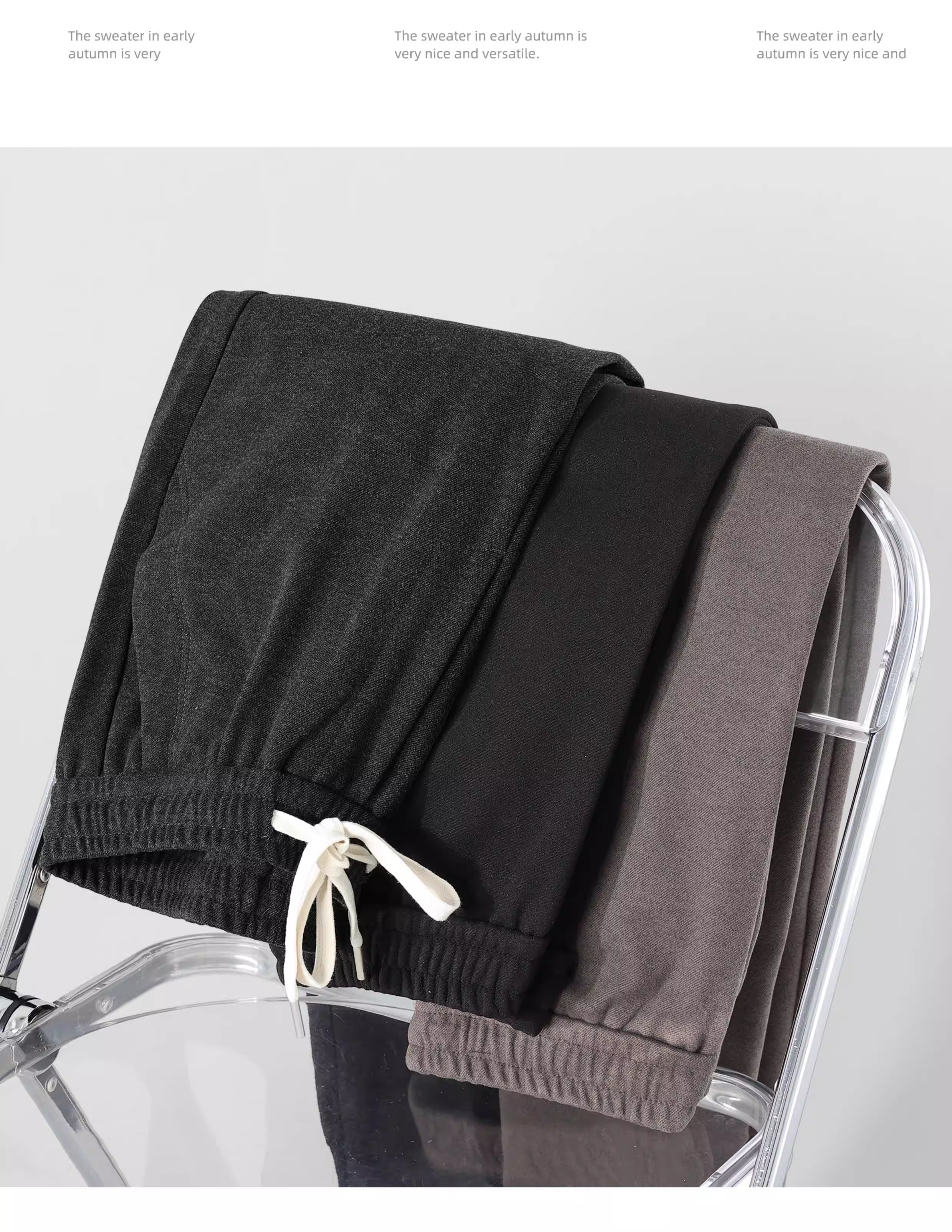 Quần thể thao nam chất liệu len ấm áp, kiểu dáng ôm sát thể thao, có dây thun và dây rút ở eo.