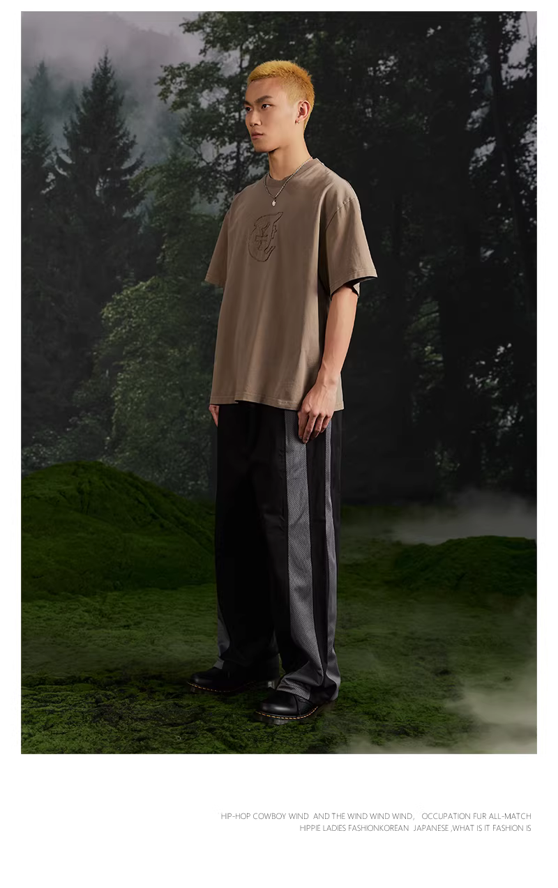 Quần thể thao nam dáng rộng phong cách đường phố mới 2025, kiểu phối màu chắp vá thời thượng Jungle Tiger