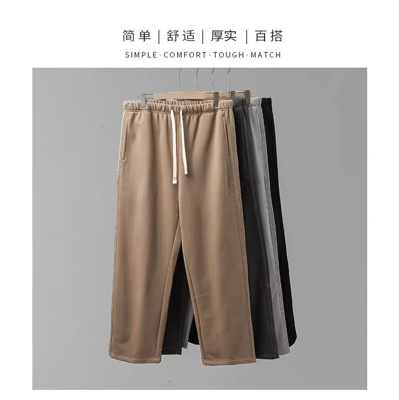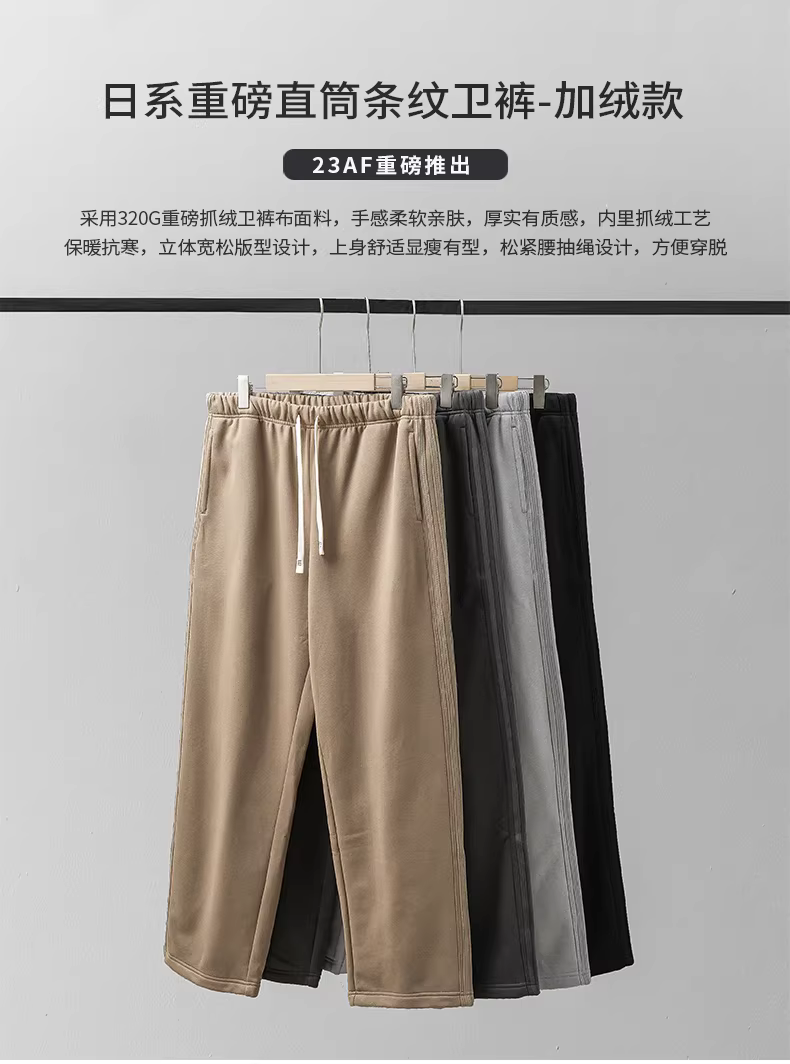 Quần thể thao nam ống đứng lót lông dày giữ ấm mùa đông, quần ống côn kẻ sọc dày, quần thể thao kaki rộng rãi, phong cách thường ngày