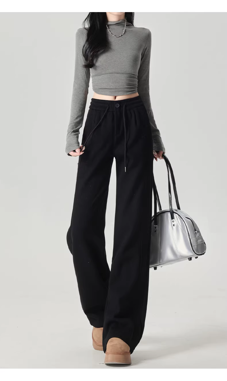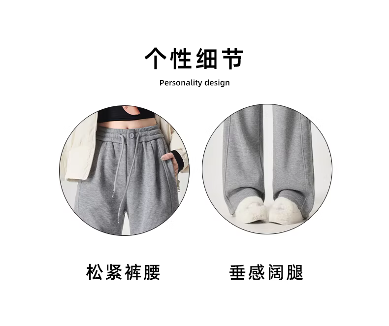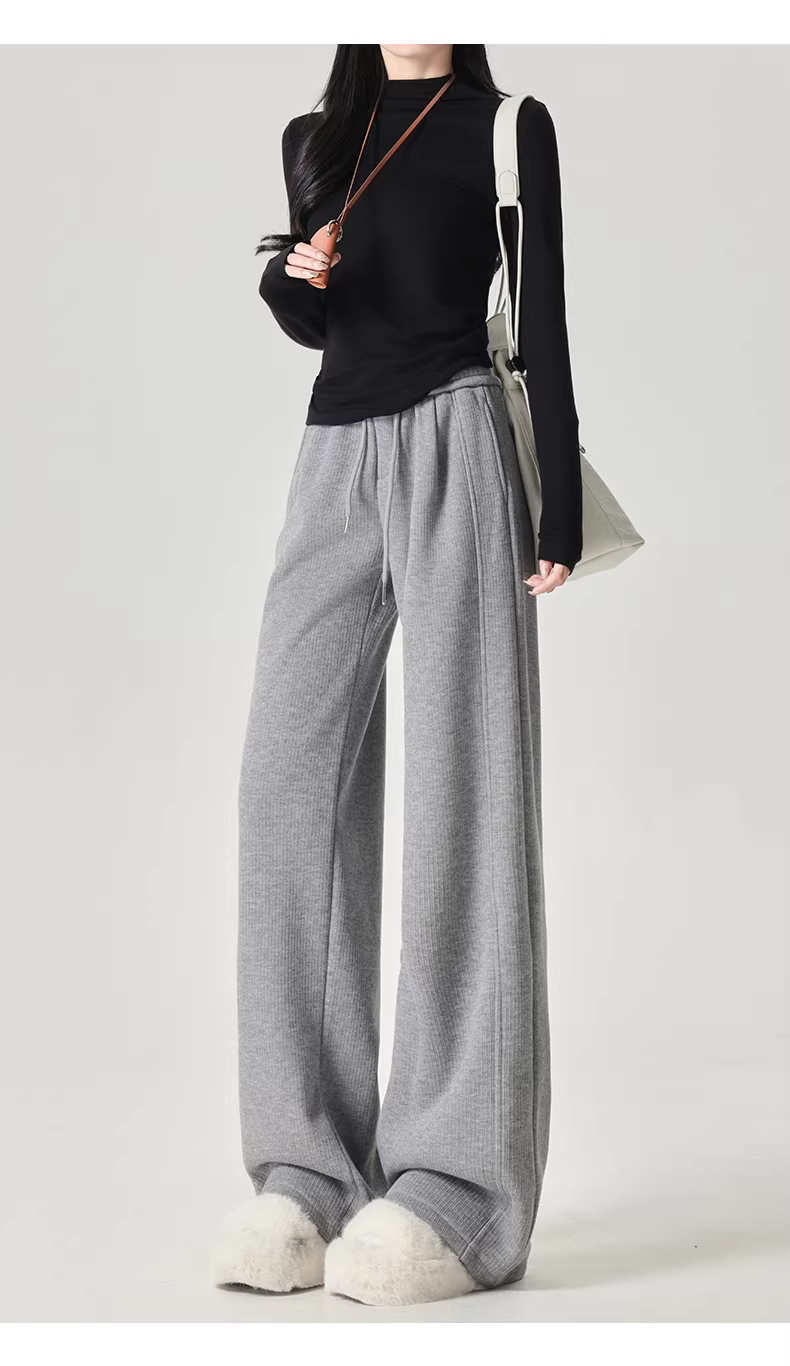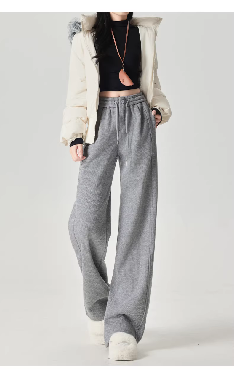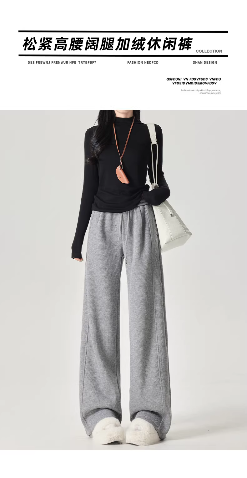 Quần thể thao nữ La Chapelle lót lông cừu dày dặn, kiểu dáng mới thu đông 2025, cạp cao, rộng ống, thoải mái