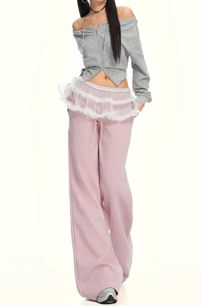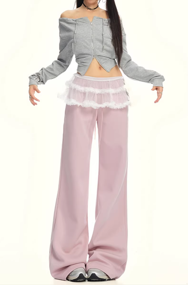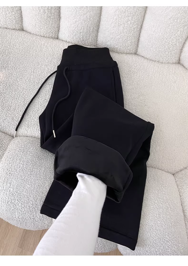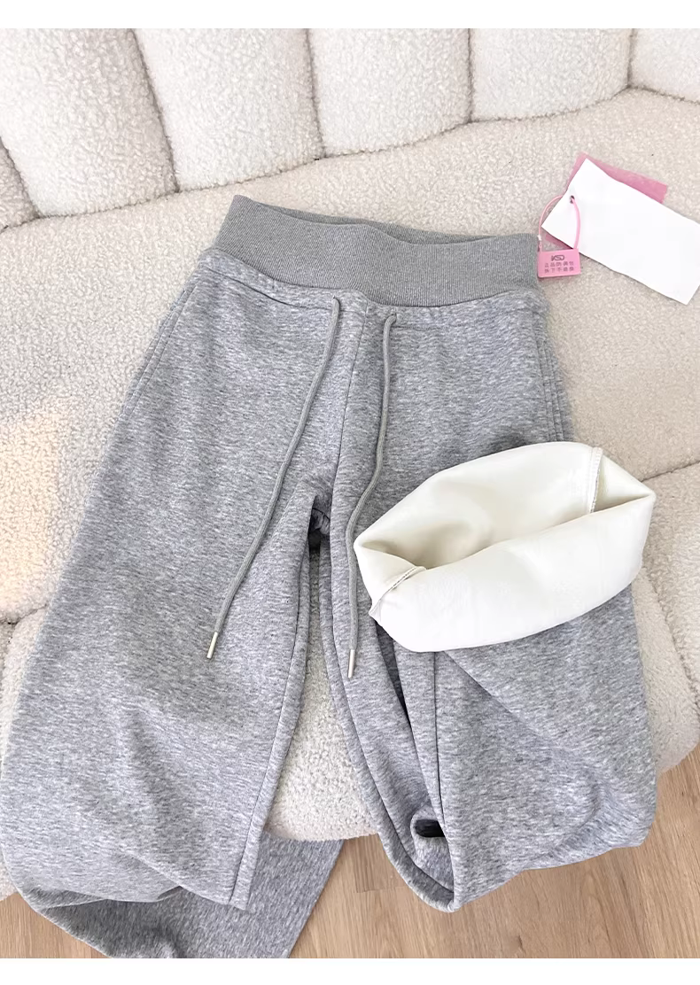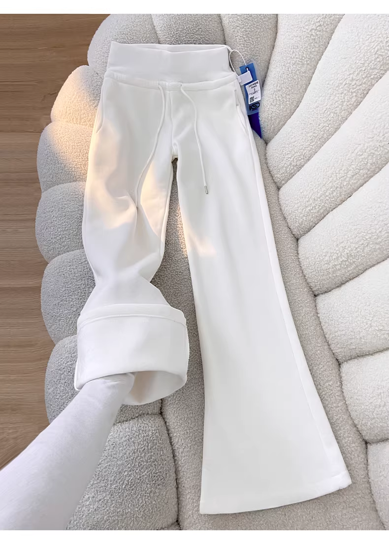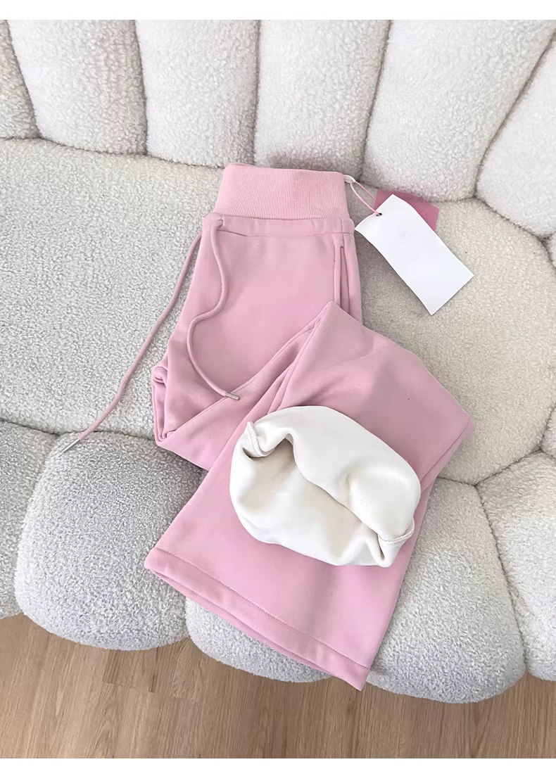 - Quần thể thao nữ La Chapelle màu hồng, lót lông cừu dày, dáng loe, kiểu mới thu đông 2025, cạp cao, ống loe