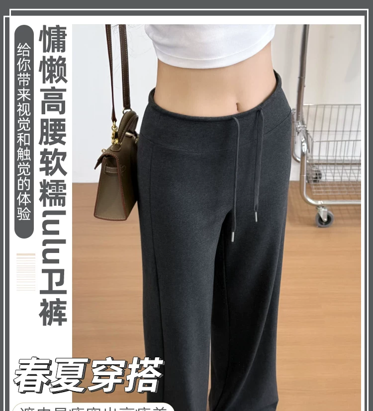 - Quần thể thao ống đứng màu đen dành cho nữ, mùa thu 2005, cỡ lớn, lưng cao, tôn dáng, ôm dáng, kiểu dáng rộng, quần jogger dáng rộng thường ngày