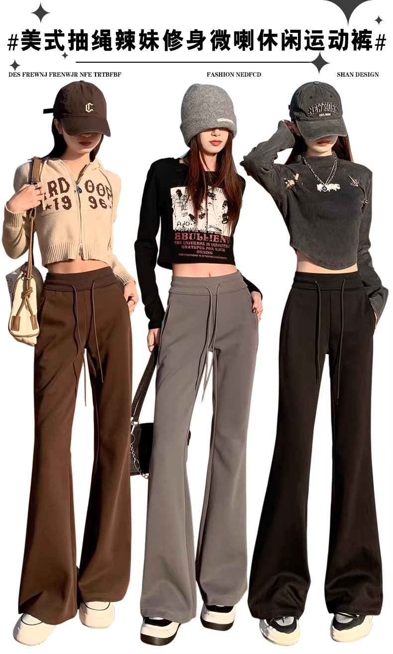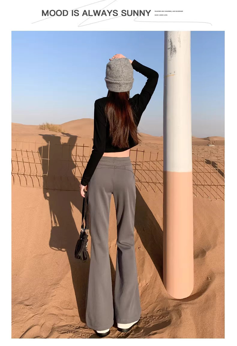 - Quần thể thao ống loe lót lông cừu đen La Chapelle dành cho nữ, quần ống chuông ôm dáng cao cấp mới mùa thu đông 2025.