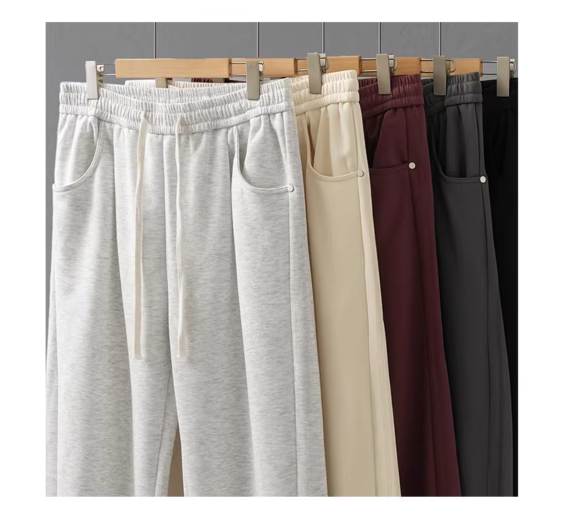 Quần thể thao ống thẳng hạng nặng dành cho nam, quần ống rộng dáng dài màu xám phong cách mùa xuân và mùa thu, quần dài ống thẳng màu xám phong cách giản dị.