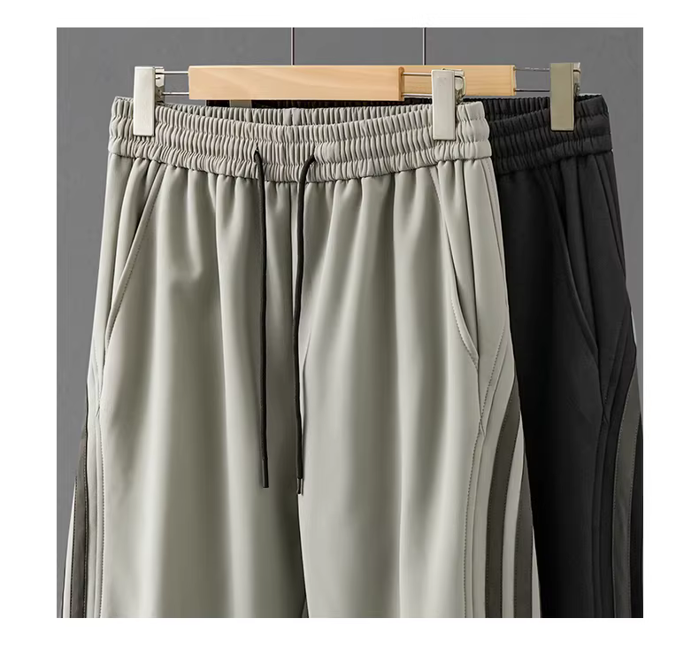 - Quần thể thao sọc lót lông cừu hạng nặng dành cho nam, phong cách đường phố cao cấp của Mỹ không thấm nước mùa thu đông, quần ống rộng dáng rộng, dáng rộng, phong cách đường phố Mỹ
