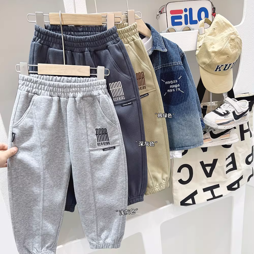 Quần thể thao trẻ em rộng rãi, kiểu dáng thường ngày, mẫu mới xuân thu 2025, quần dài mùa thu cho bé trai lớn, kiểu dáng thời trang