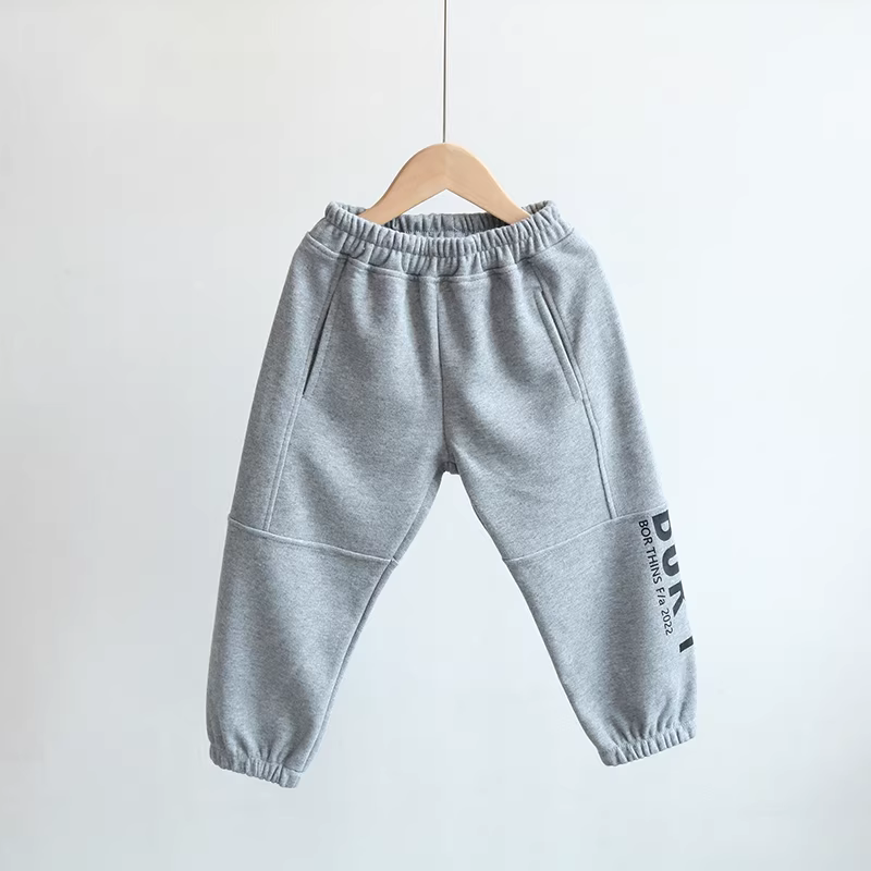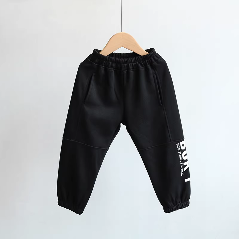 - Quần thể thao trẻ em xuân 2025 kiểu mới, quần lửng in chữ rộng rãi, quần dài thời trang cho bé trai, quần jogger ống rộng hợp xu hướng