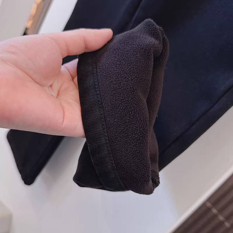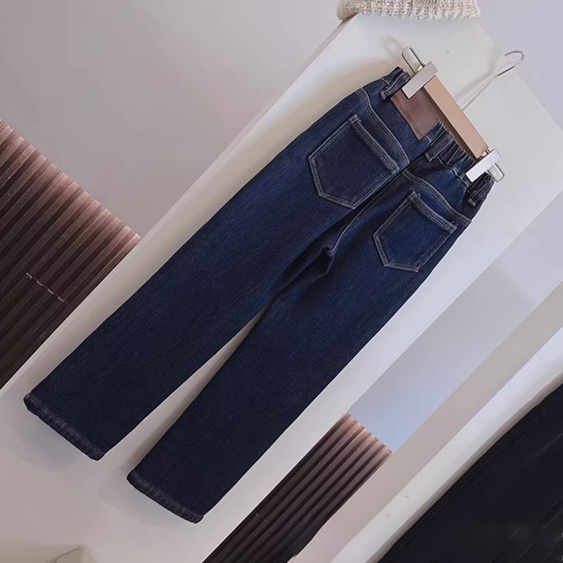 - Quần thu đông cho bé gái, quần thuốc lá đen lót lông cừu đa năng kiểu retro, quần jean ống đứng ôm sát dành cho trẻ lớn.