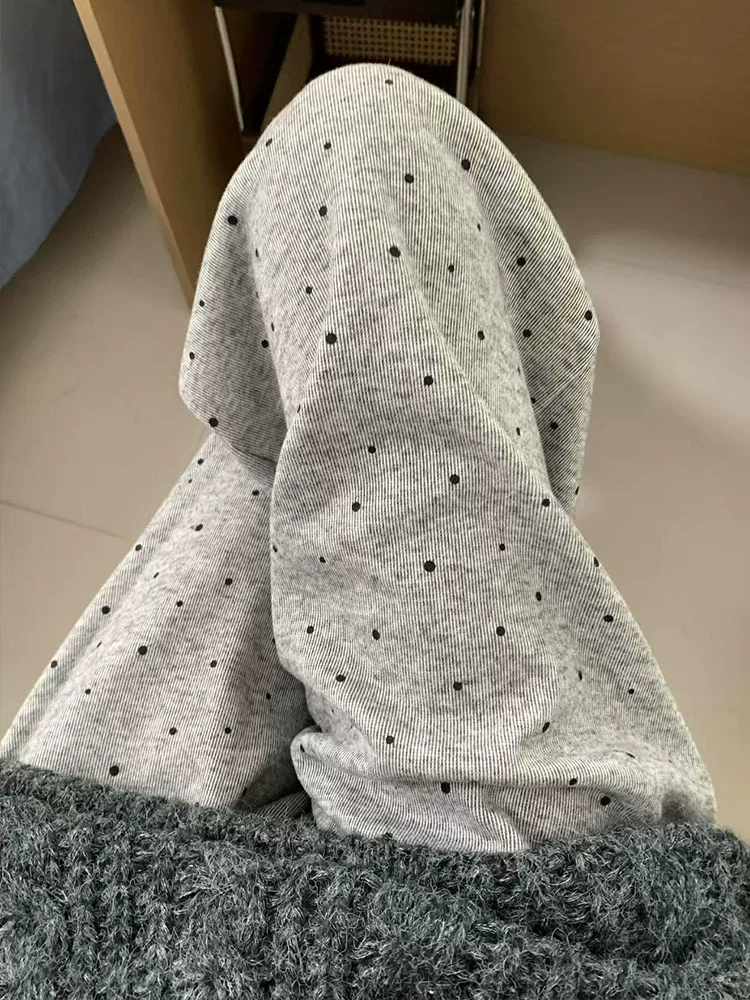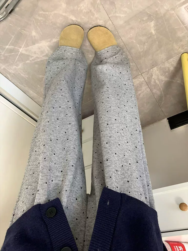 - Quần thường ngày chấm bi màu xám dành cho nữ, phong cách đầu thu, cỡ lớn, lưng cao, dáng suôn, quần ống rộng mềm mại và thoải mái.