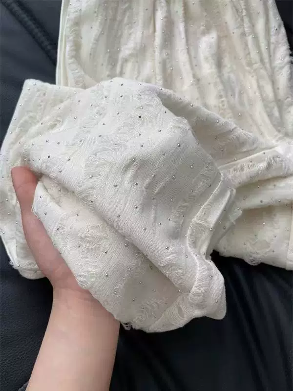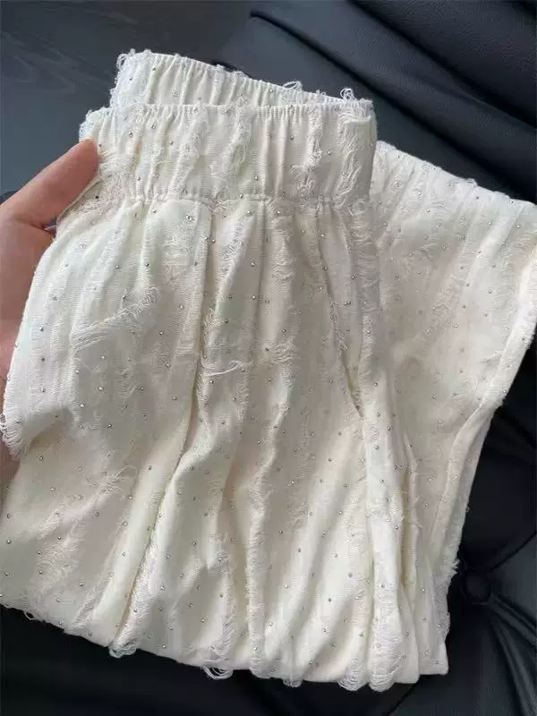 - Quần thường ngày đính đá cho nữ, kiểu dáng mỏng mùa hè, cỡ lớn, lưng cao, dáng suôn, thon gọn, dáng quả lê, quần dài ống rộng thẳng