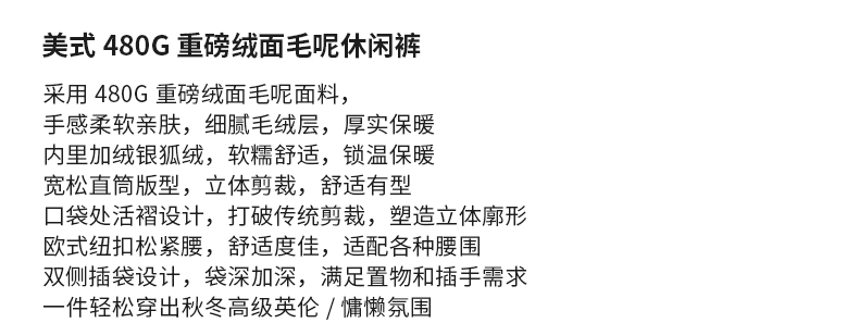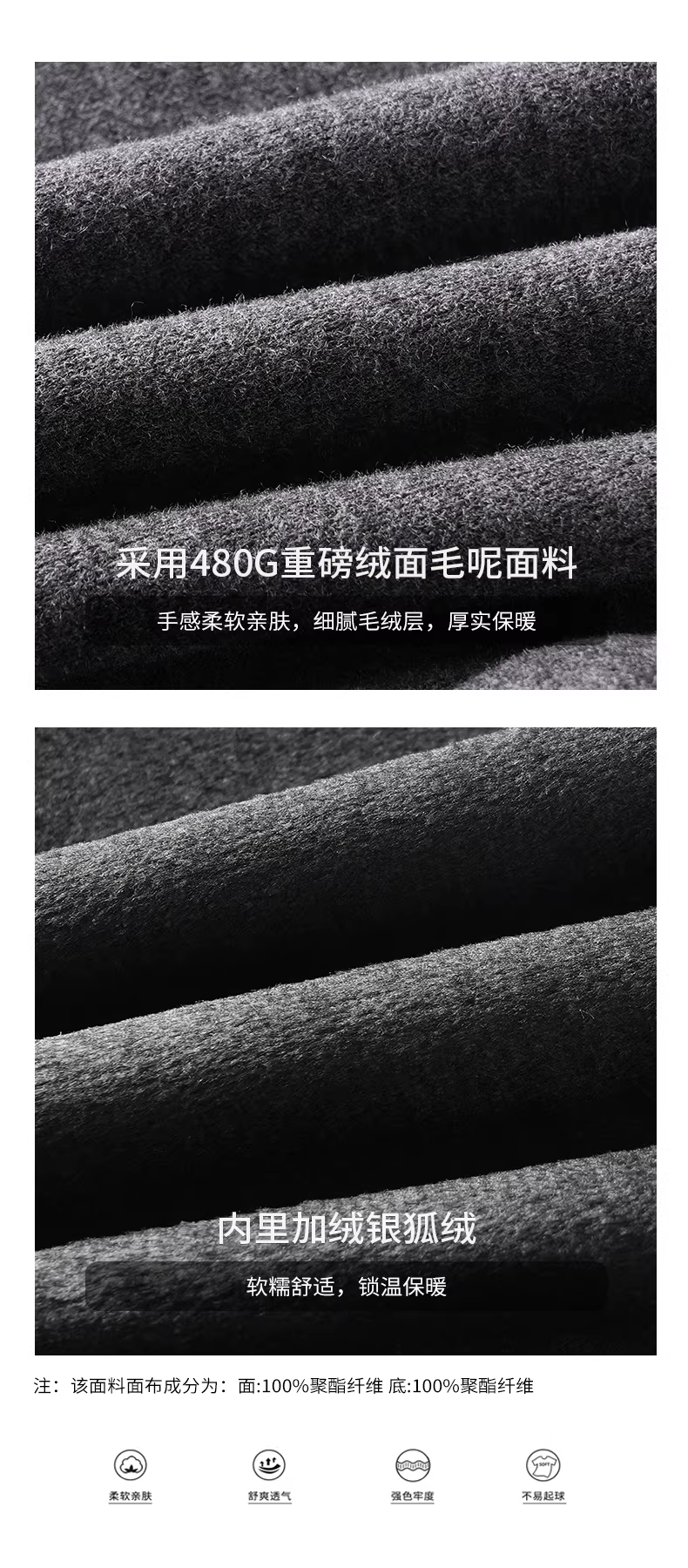 - Quần thường ngày lót lông cừu hạng nặng OMZM480G dành cho nam, quần ống thẳng dày dặn ấm áp mùa đông với thiết kế xếp nếp cao cấp và kiểu dáng ống rộng.