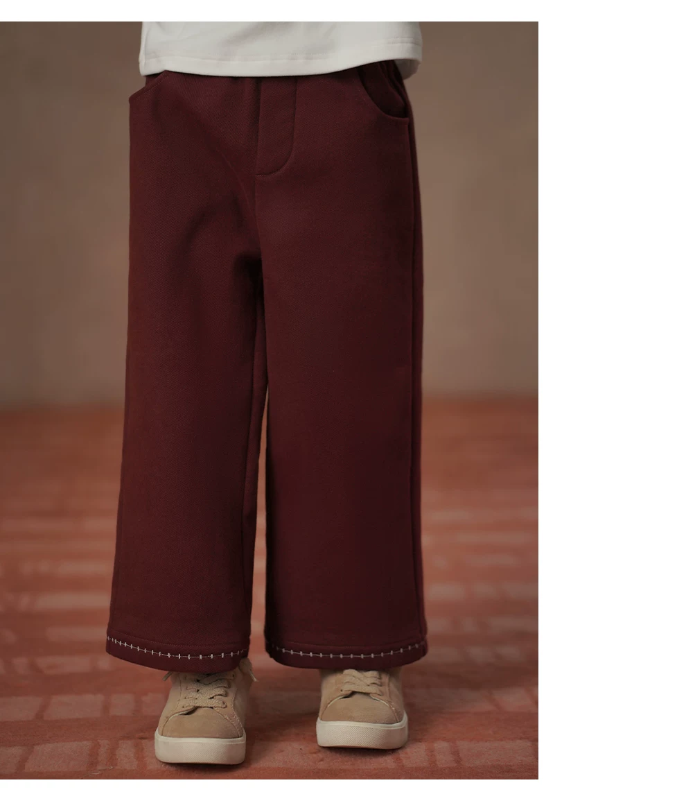 - Quần thường ngày mùa đông cho trẻ em, quần ống rộng lót lông cừu, quần ấm dày màu đỏ năm mới cho bé gái
